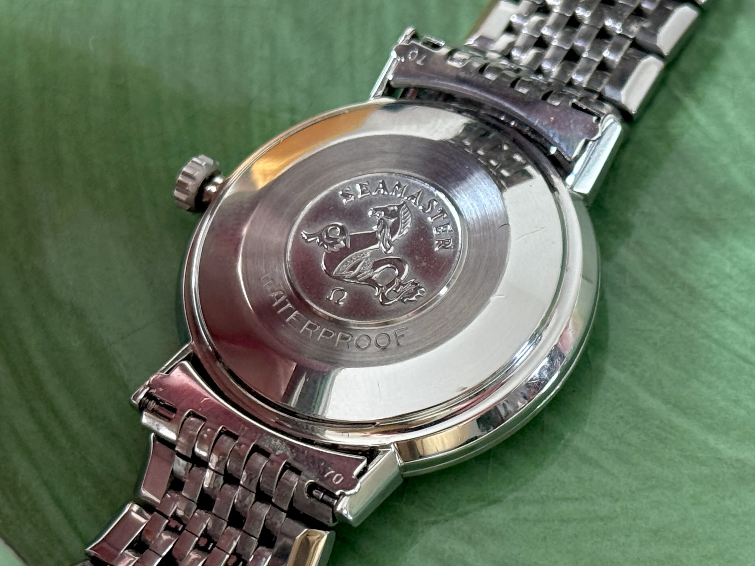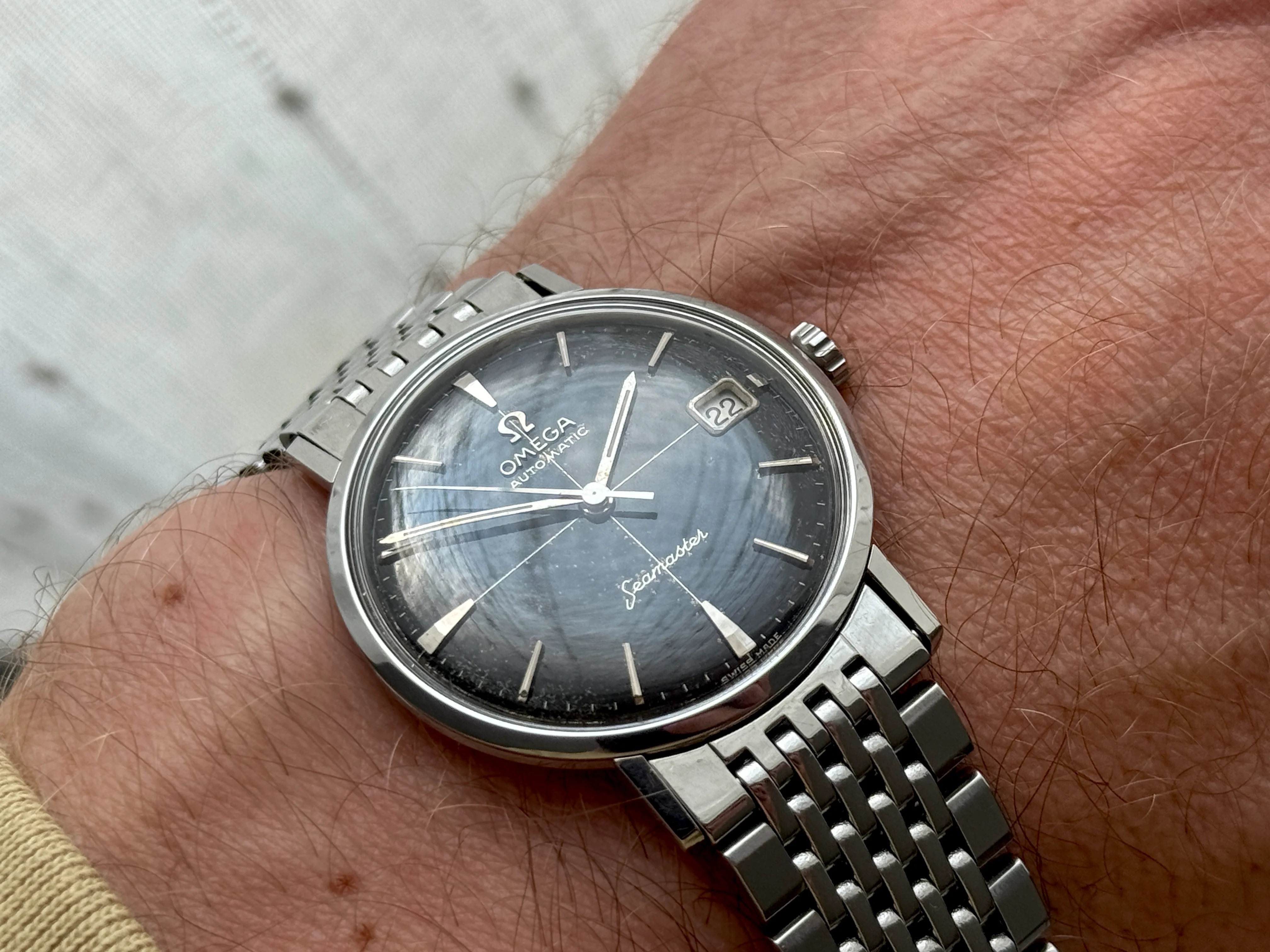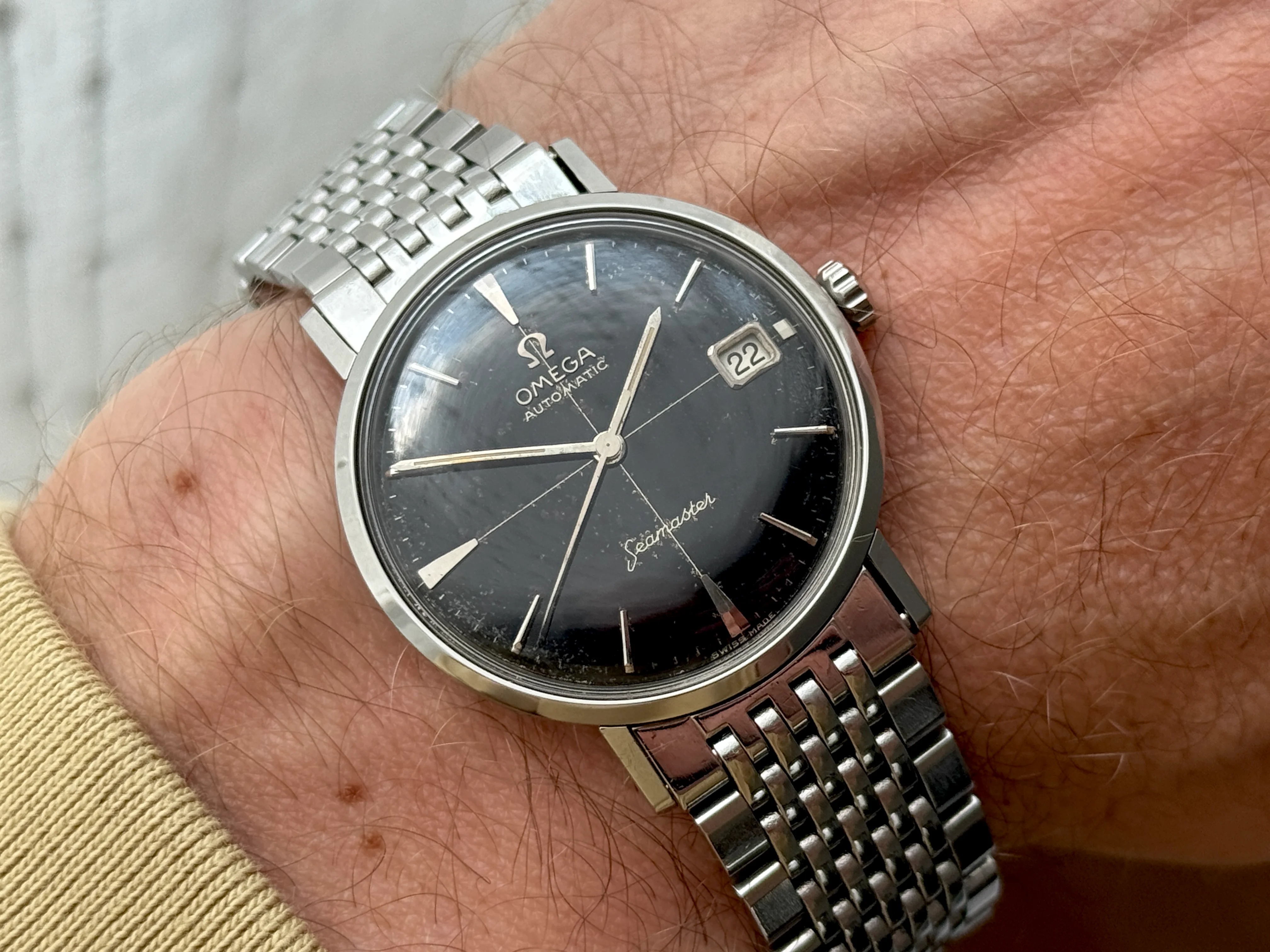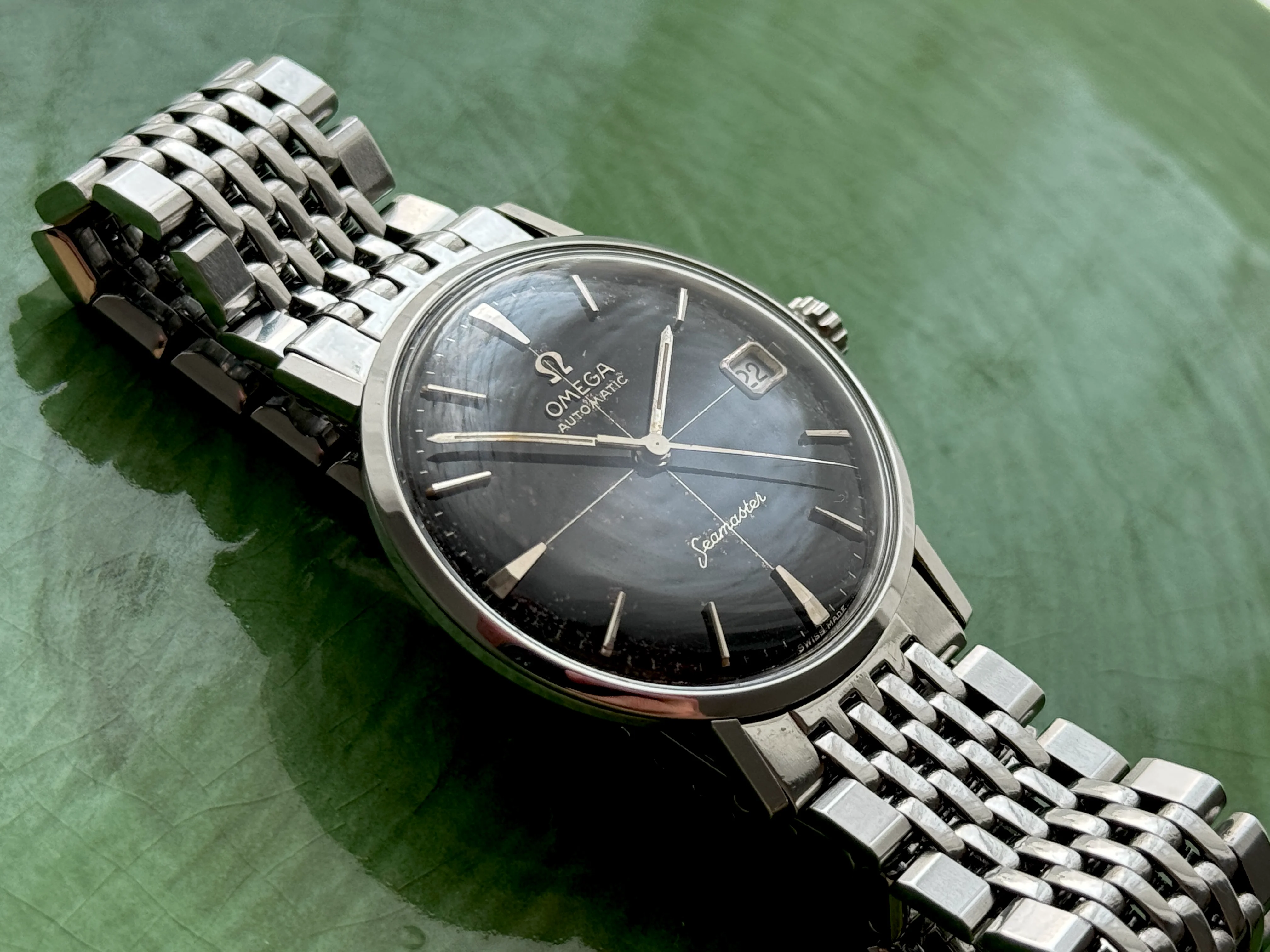 initially bought for a friend, he’s opted for another watch now, so this one can make somebody else around here happy. It’s an early 60s original black gilt dial Seamaster DeVille from the short timespan in which Omega built those without the extra „DeVille“ text on the dial.