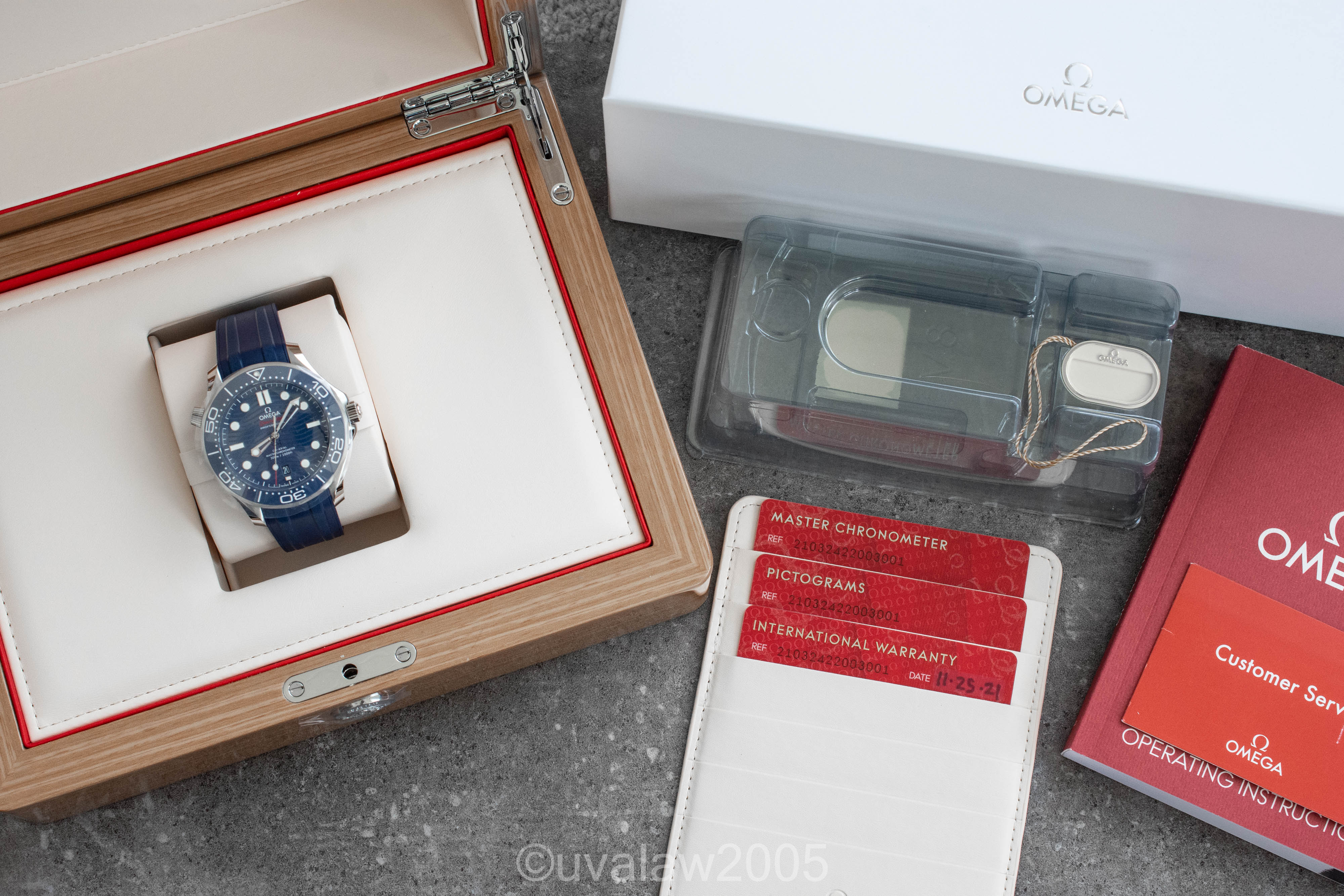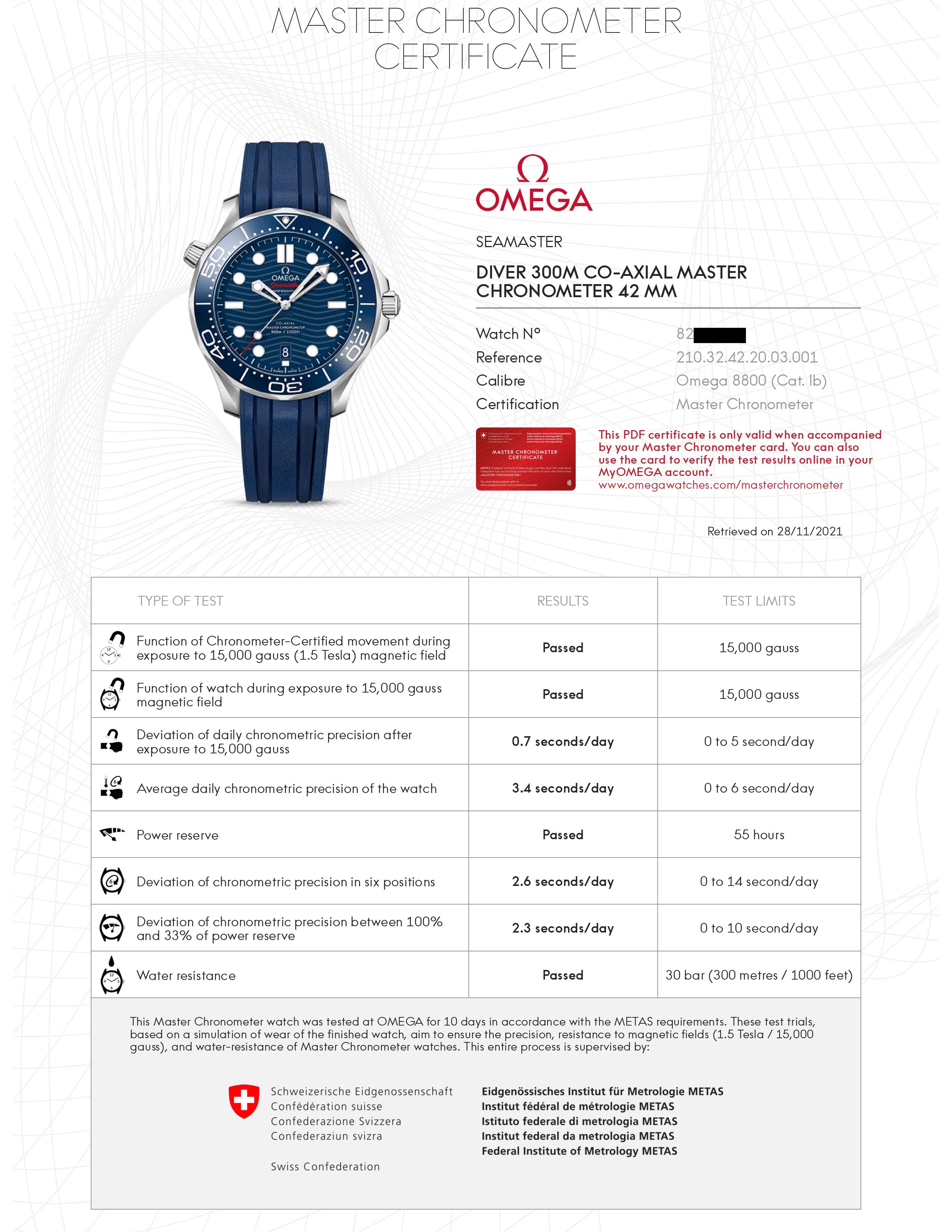 ·For sale is my brand new in box Omega Seamaster 300 42mm 8800 Blue Wave Dial with OEM Rubber, ref. 210.32.42.20.03.001. Includes boxes, manual, cards, hang tag, stickers, and plastic coffin. METAS results are pictured below. Omega warranty runs through November 2026.