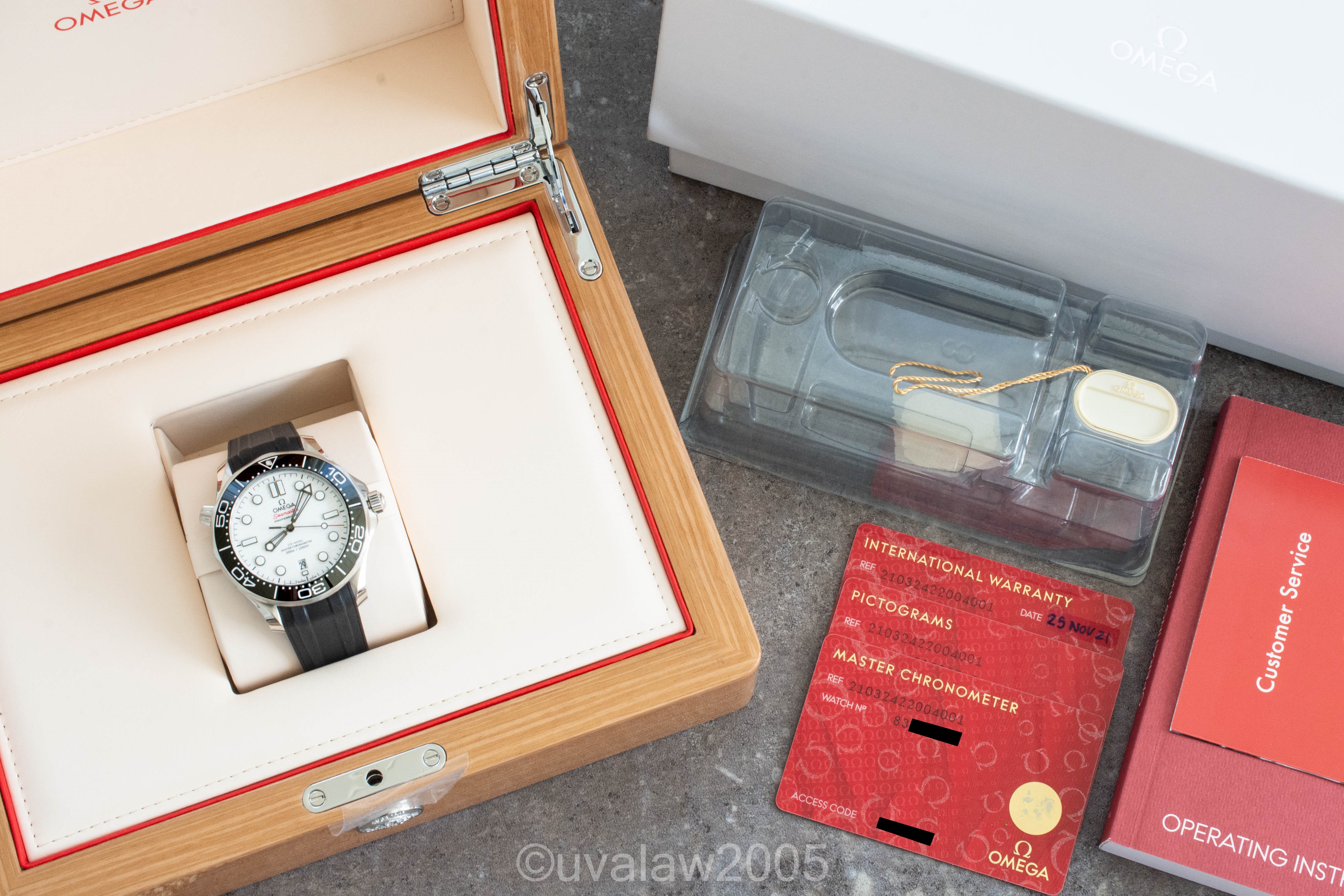 ·For sale is my brand new in box Omega Seamaster Diver 300m 42mm 8800 White Wave Dial with OEM Rubber, ref. 210.32.42.20.04.001. Includes boxes, manual, cards, hang tag, stickers, and plastic coffin. METAS results are pictured below. Omega warranty runs through November 2026.