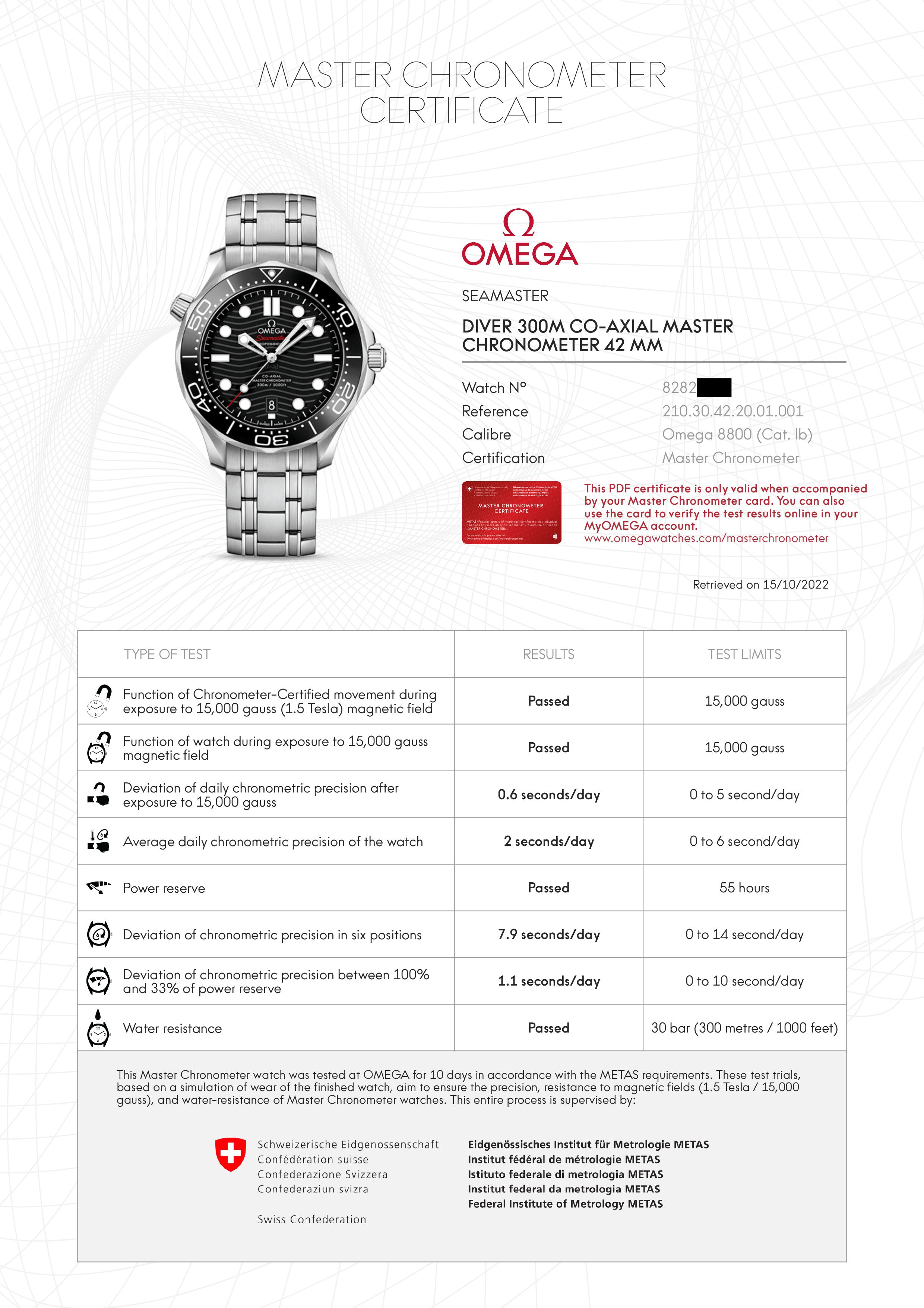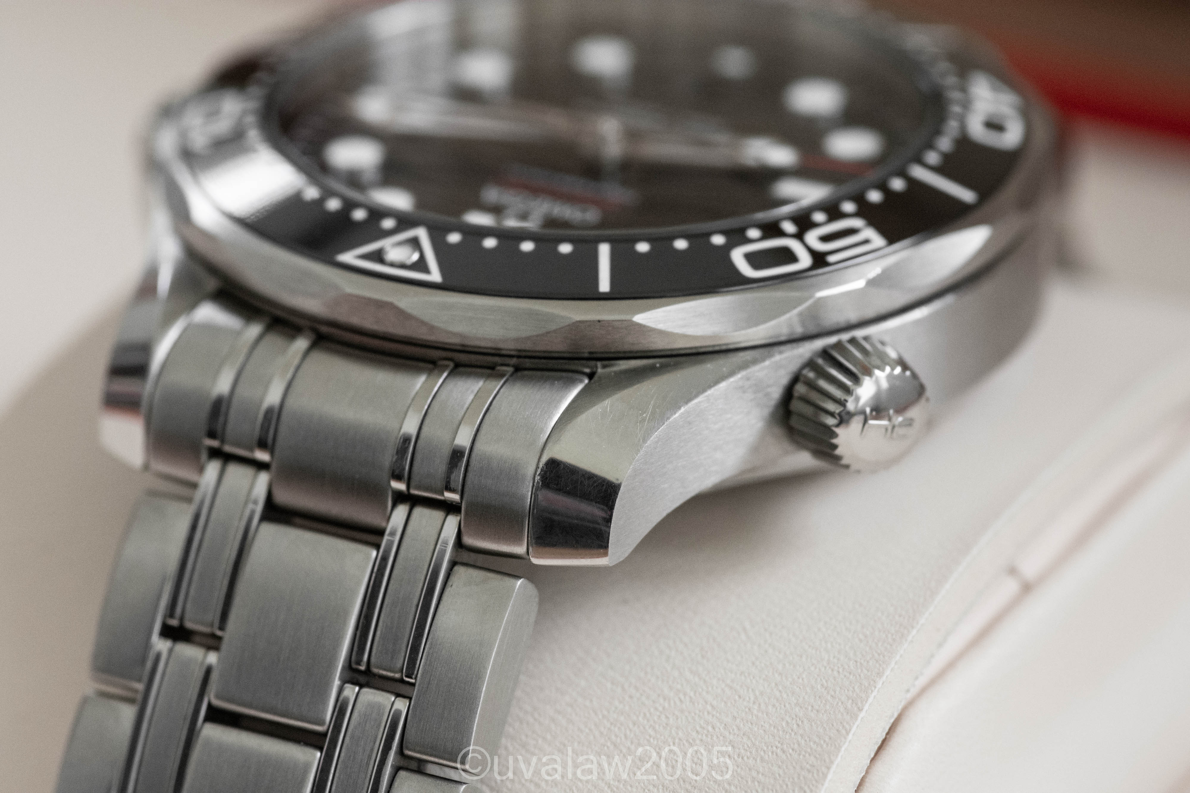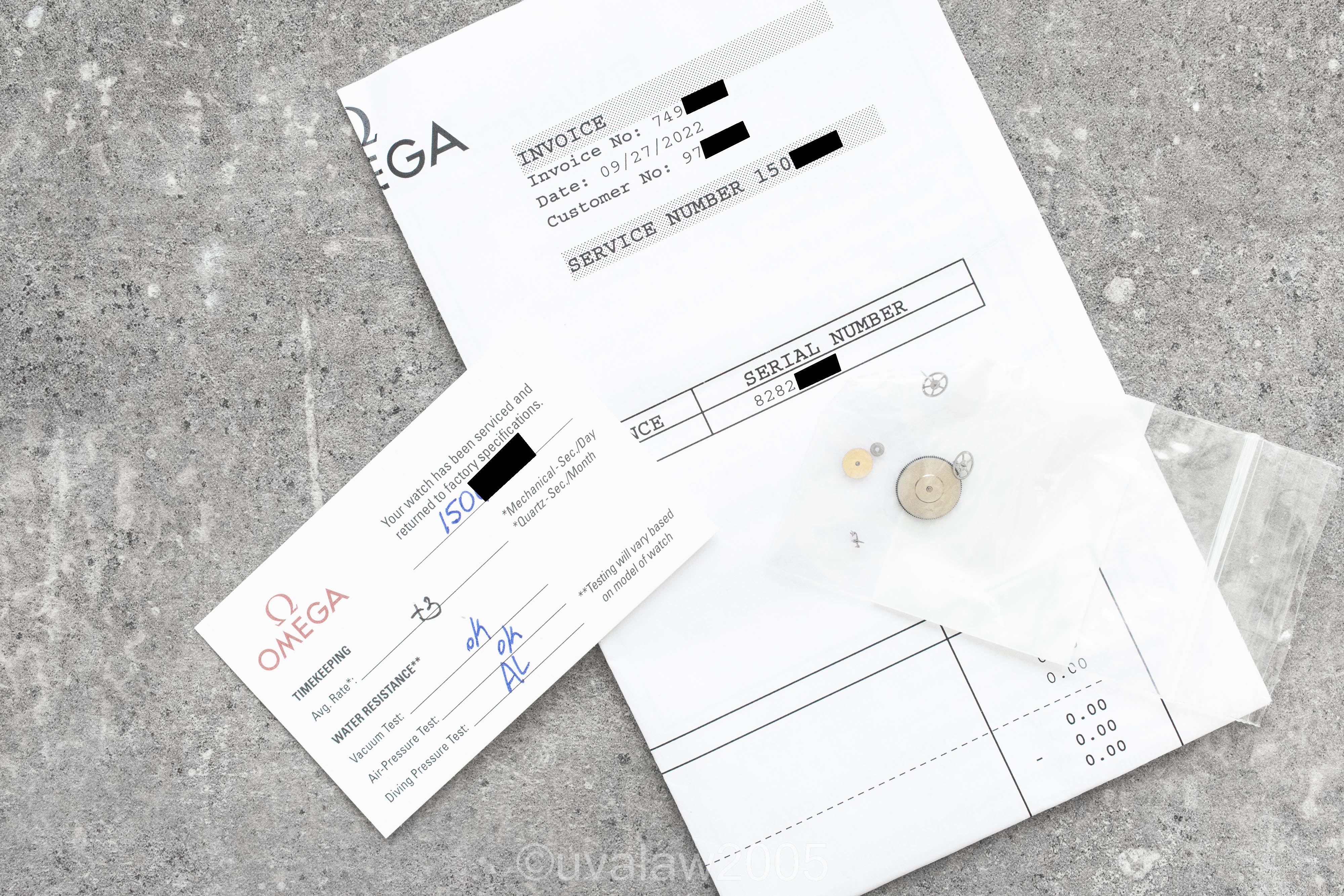 Full kit with all boxes, manual, cards, hangtag and all bracelet links. Tear to outer white box repaired by tape. Omega manufacturer warranty runs through April 2026. Serviced under warranty last month because it was running a bit slow, now back within METAS specs. Service card/receipt included.
