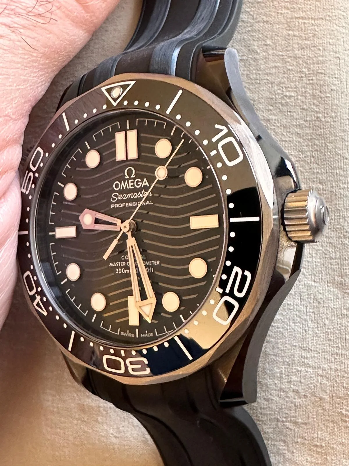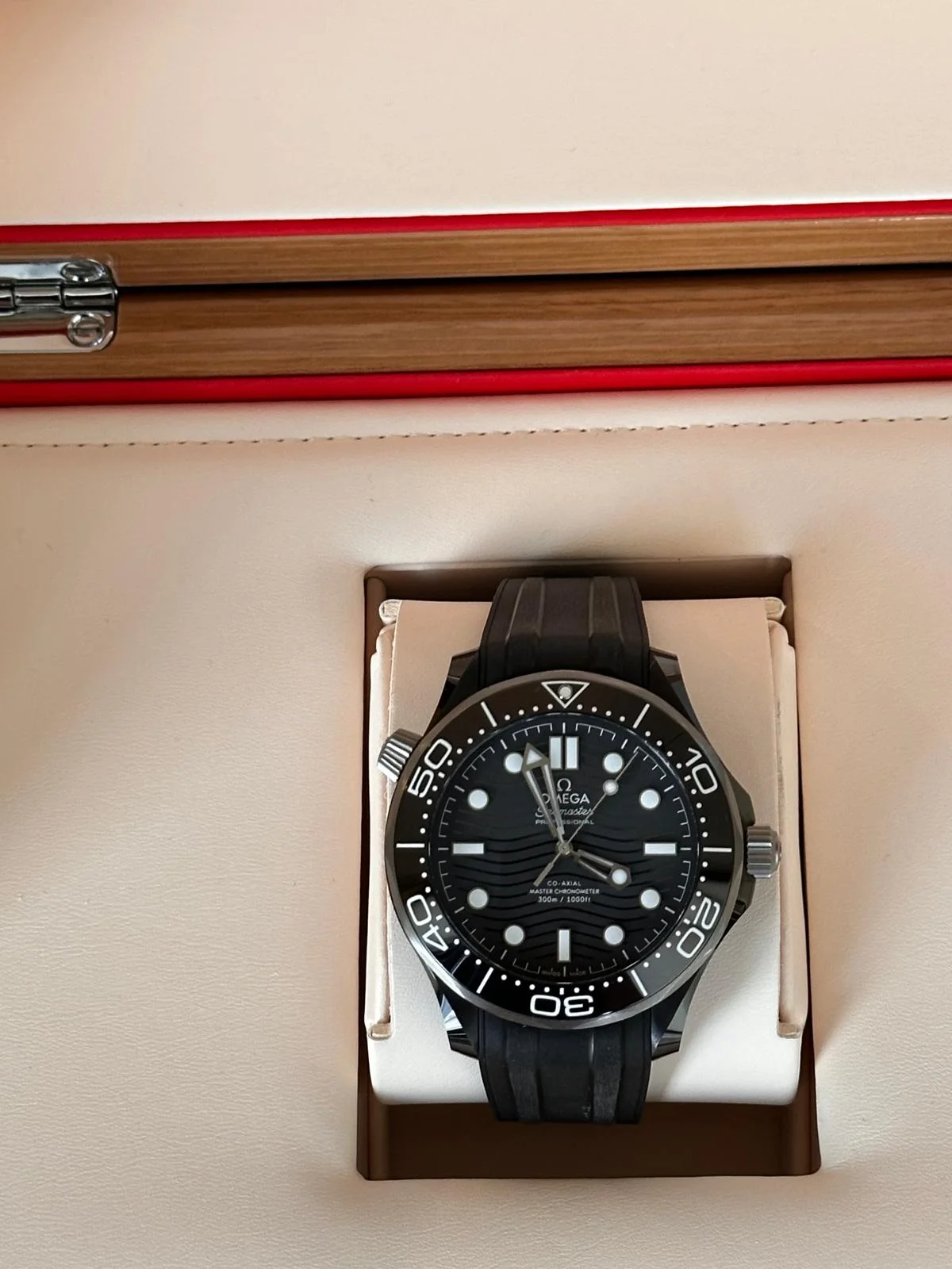 ·Up for sale is an Omega Seamaster Diver 300M, black ceramic/titanium dive watch reference 210.92.44.20.01.001 with black engraved ceramic dial on a black rubber strap and METAS-certified Master Chronometer movement.