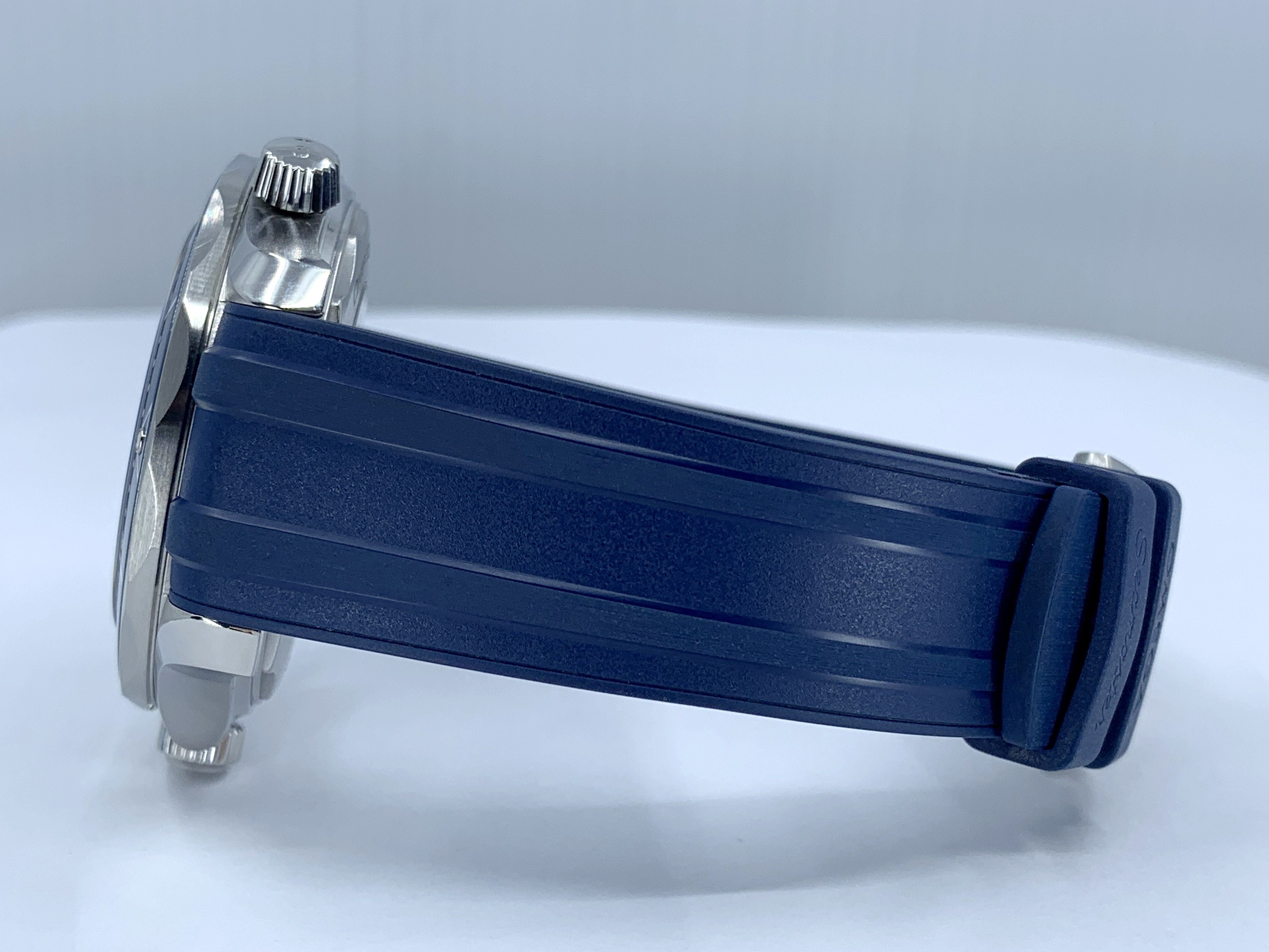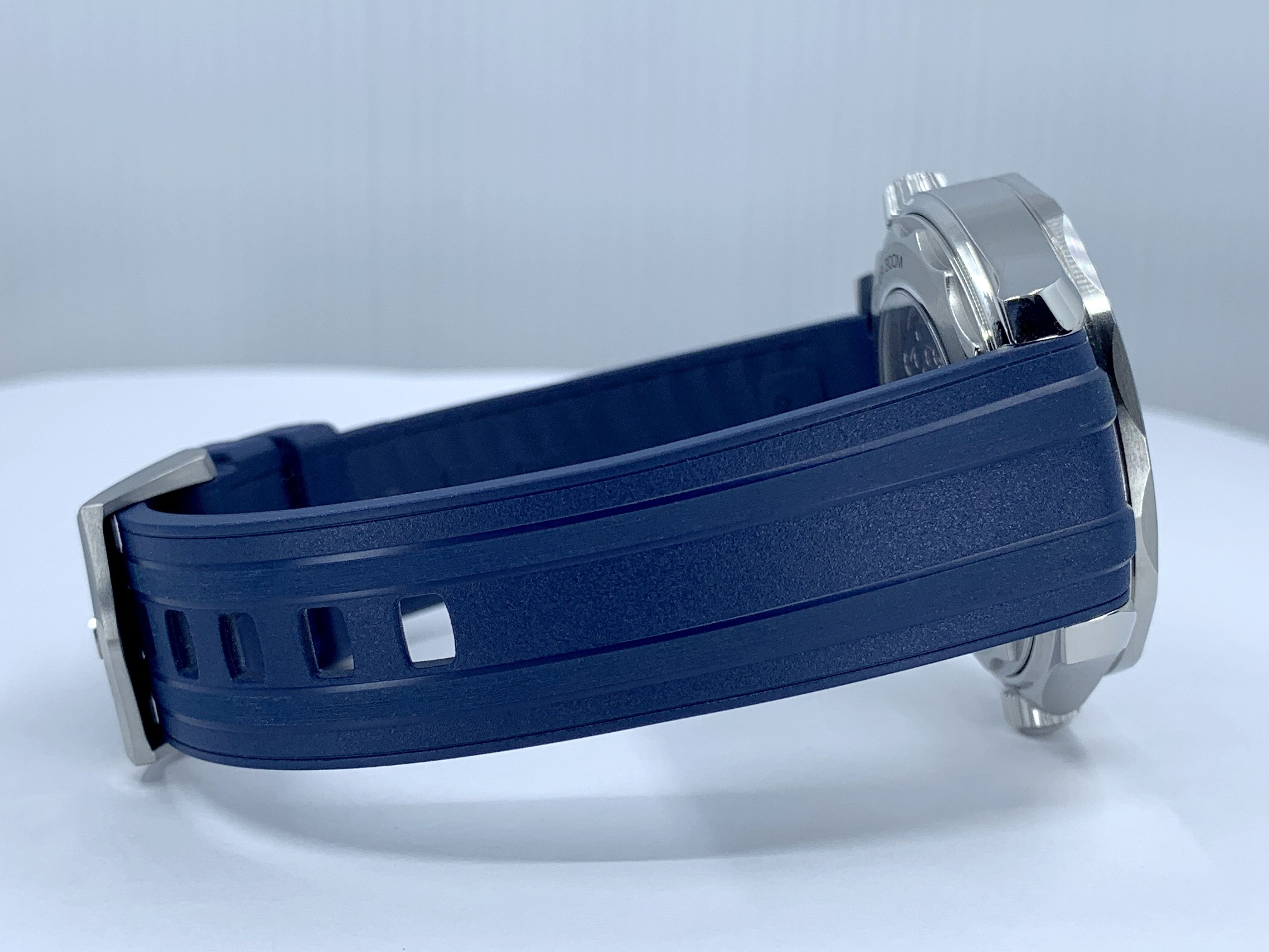 Stainless Steel Case fitted on the Blue Rubber