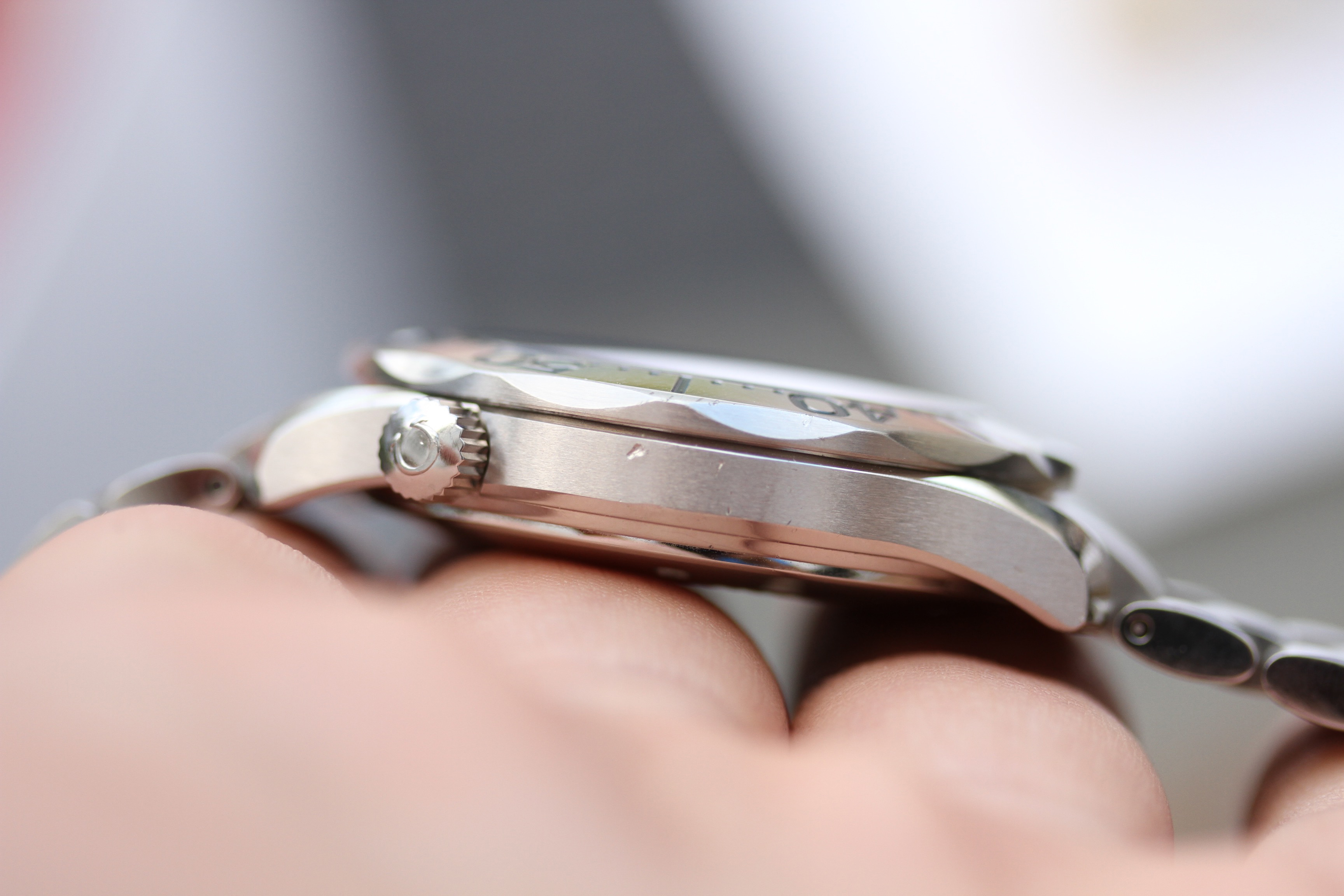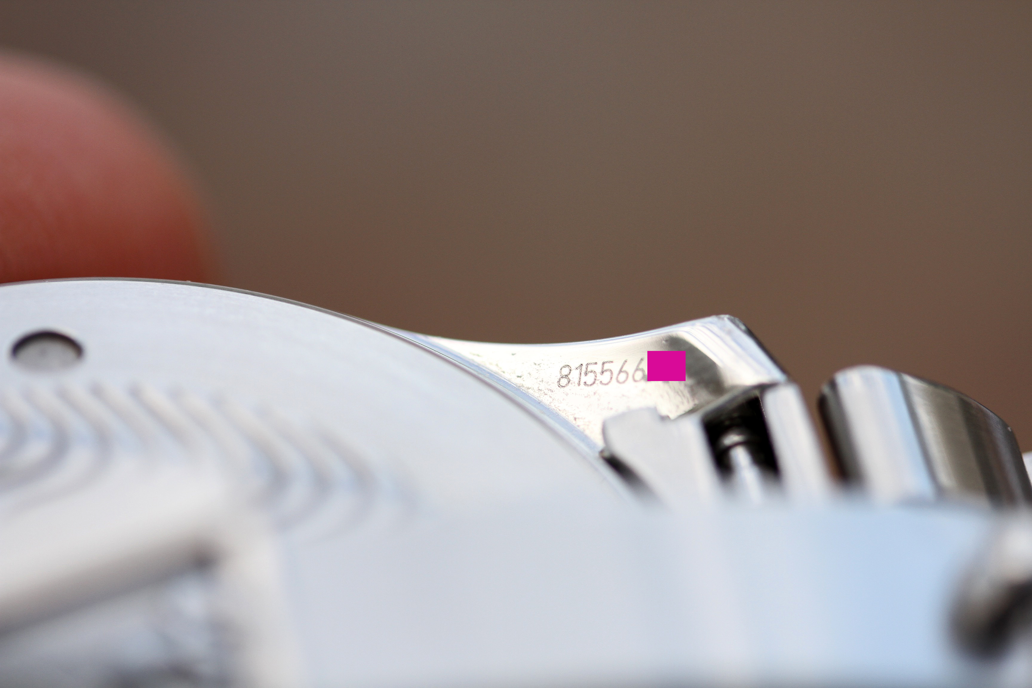 Excellent condition with light wear from use. Fully linked bracelet. Serial number is fully intact on lug. Red wax dot is intact.