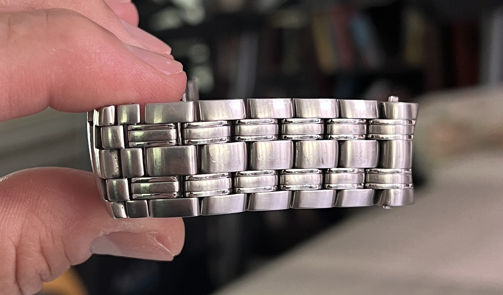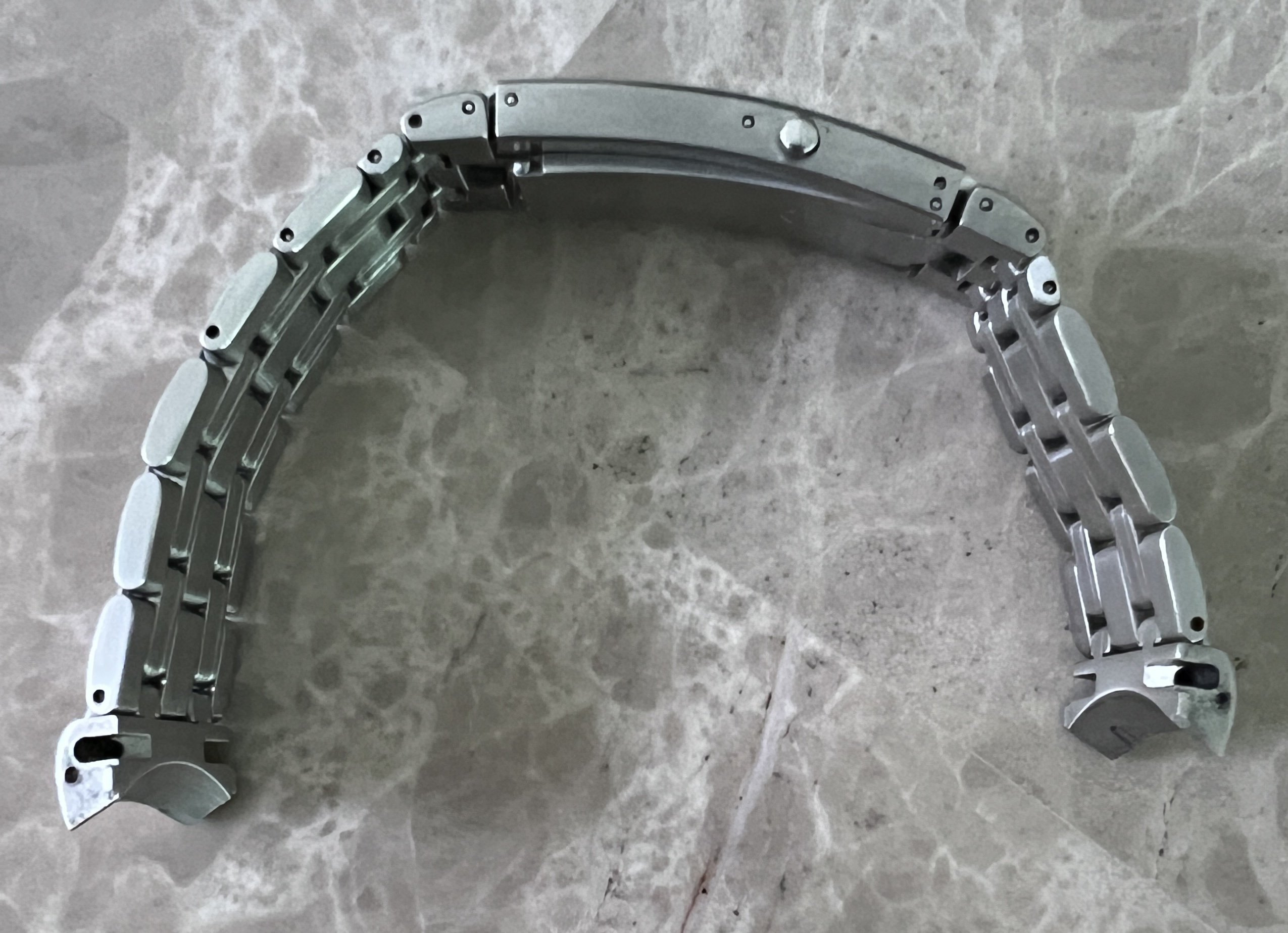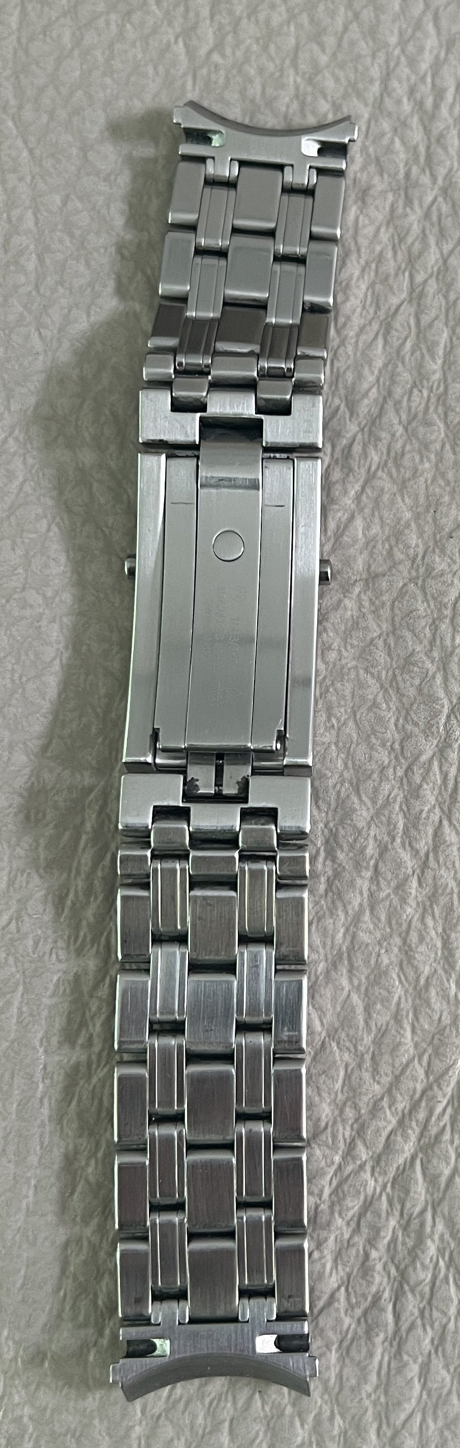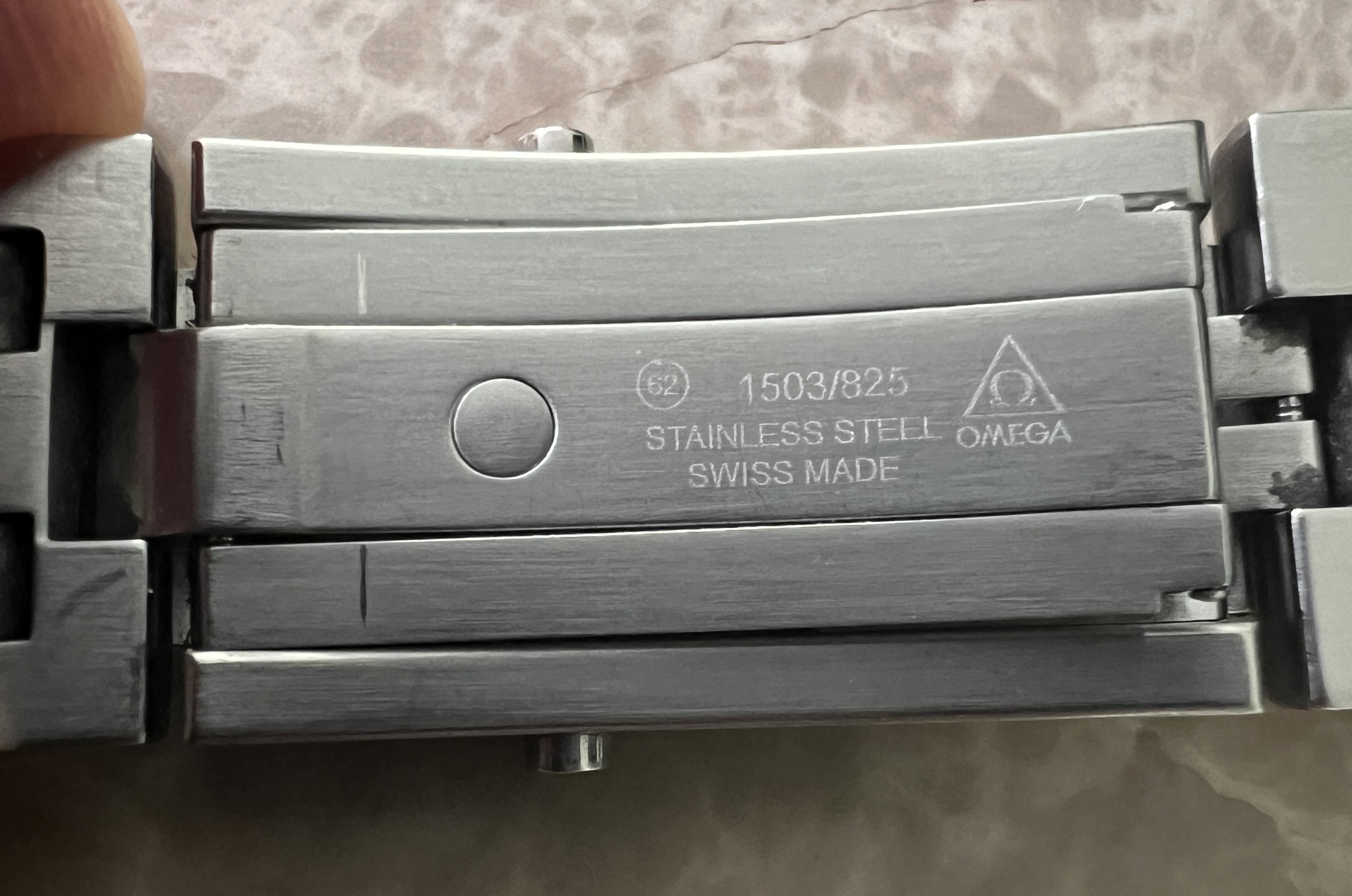 ·SOLD ($395 OBRO) have a genuine Omega Seamaster 20 MM stainless steel bracelet, reference 1503/825. The bracelet came off a 2535.80.00 but is compatible with various Seamaster / Seamaster ceramic models which share the same 20 MM lug end and case fitting (information widely available on Internet). The bracelet has a total of 10 links, out of which four (2 full size and 2 half size) links can be removed to adjust its overall length. The overall length of the bracelet with all the links installed (as pictured below) is approximately 6 - 1/16 inches long with the divers extension closed and 7 3/16 inches with the divers extension open as shown on pictures. The bracelet has moderate stretch as shown.
