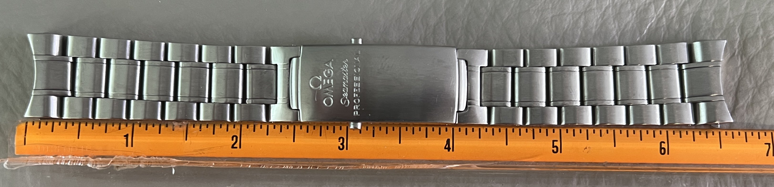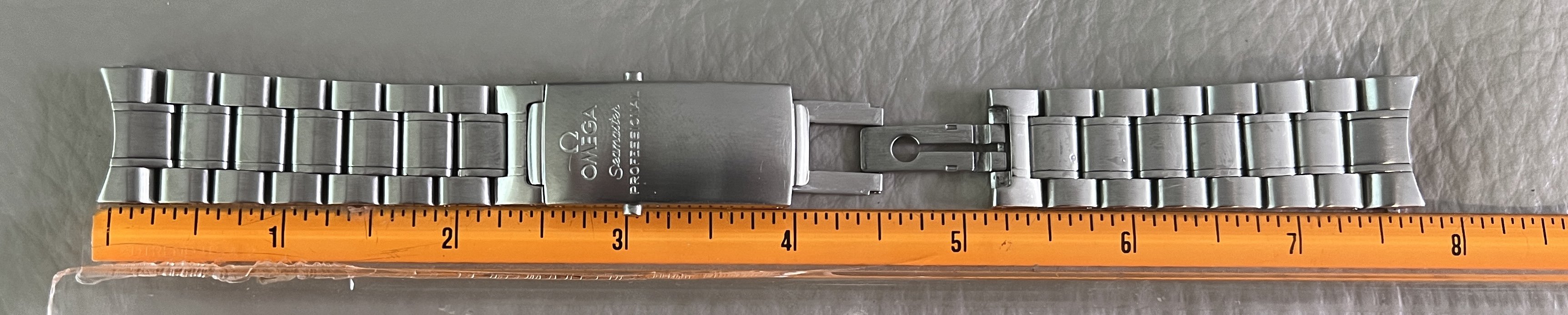 ·For sale ($400 OBRO) have a genuine Omega Seamaster 20 MM stainless steel bracelet, reference 1610/930. The bracelet came off a 2254.80.00 (so called Peter Blake model) but is compatible with various Seamaster / Seamaster ceramic models which share the same 20 MM lug end and case fitting (information widely available on Internet). The link style is pretty similar to the Omega Speedmaster series and very desired by many because of that, they are no longer being made by Omega and as such they are getting harder to source by themselves.