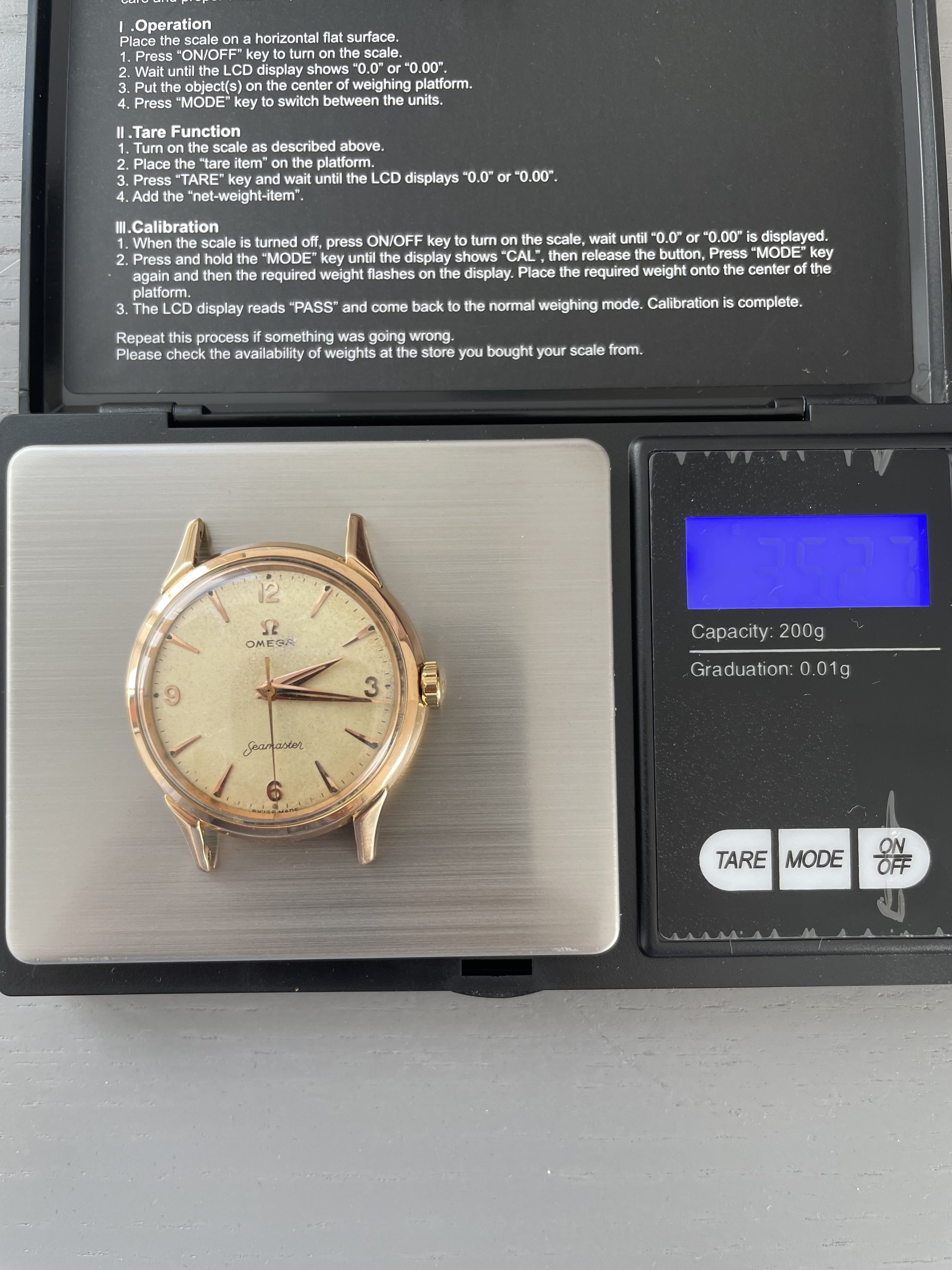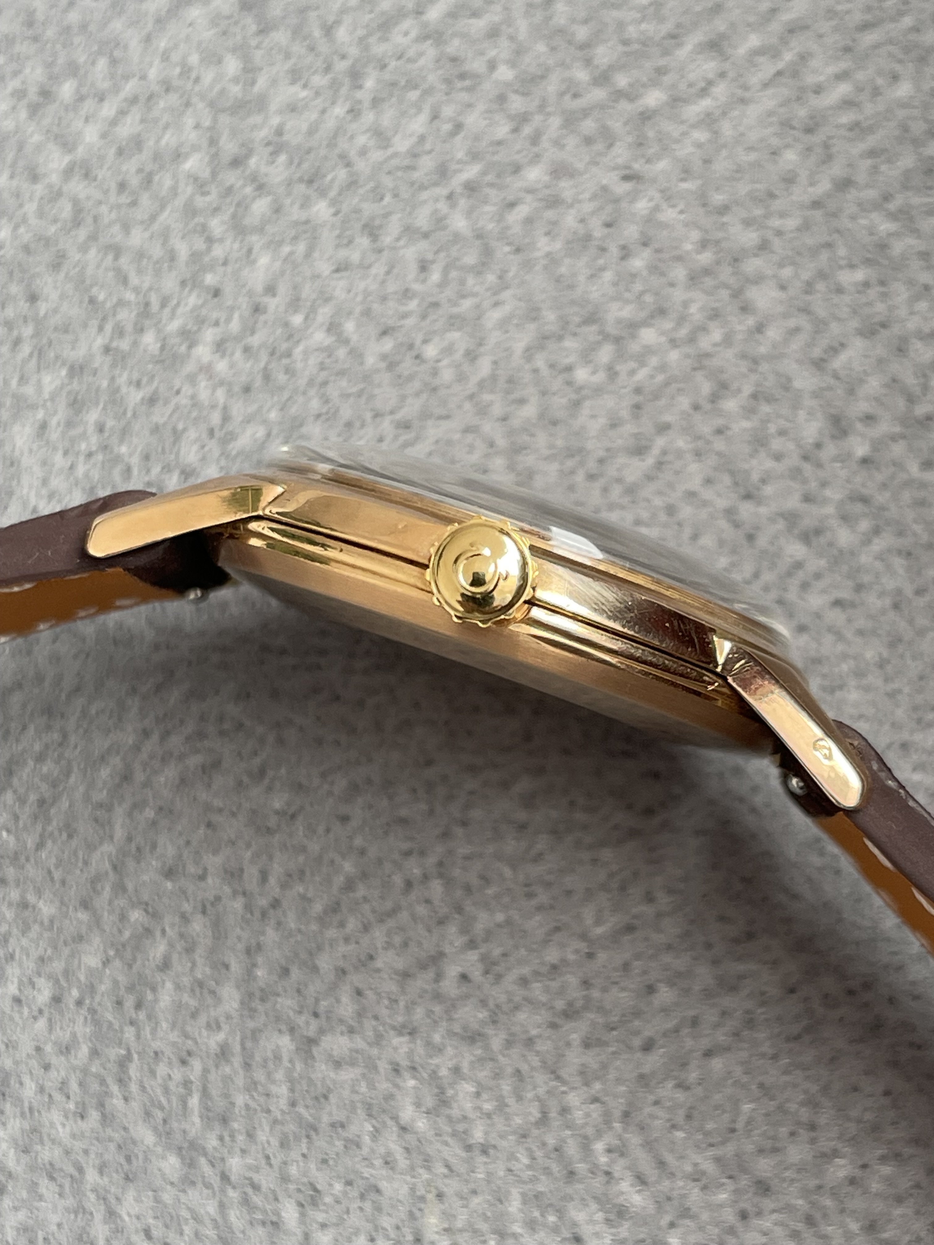 I would like to sell the watch, I would only trade this watch for an Omega 166.010 or another Omega with beefy lugs, or an Omega Conny or Seamaster with a black dial. Additional payment is possible. I set the price at 1100 EUR. The watch weighs 35.27 grams (without strap), so only the case should weigh around 20 grams. This puts the gold value at around 900 EUR and my selling price is not much higher, but it's really too good to be melted down 😀. The watch comes on a nice strap from Tuns.