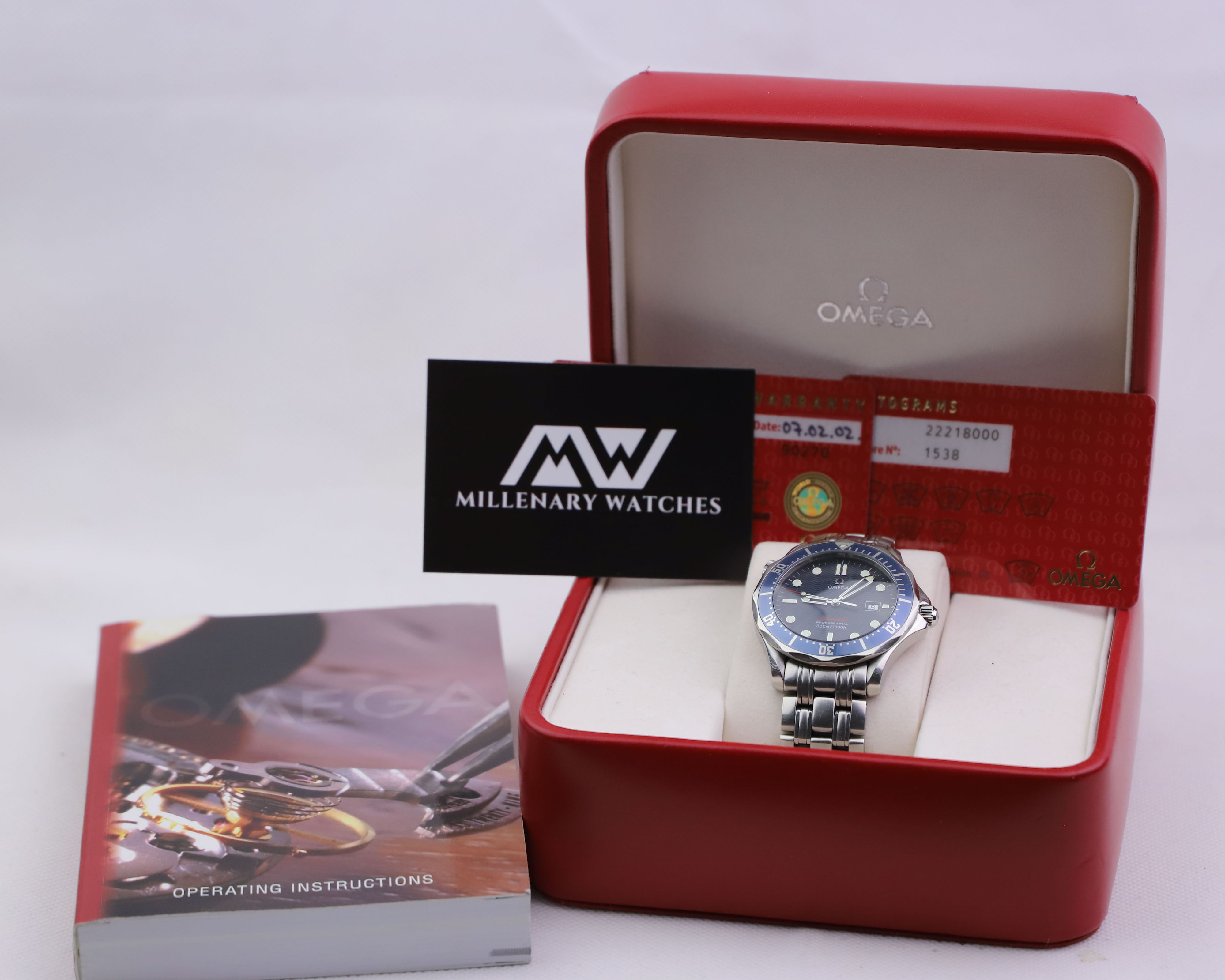 Selling an Omega Seamaster James Bond Quartz in Steel with Blue Dial 2221.80.00. Comes with box and papers. Dated 2002. The watch has no service history but works well. Please refer to the images to decide the condition.