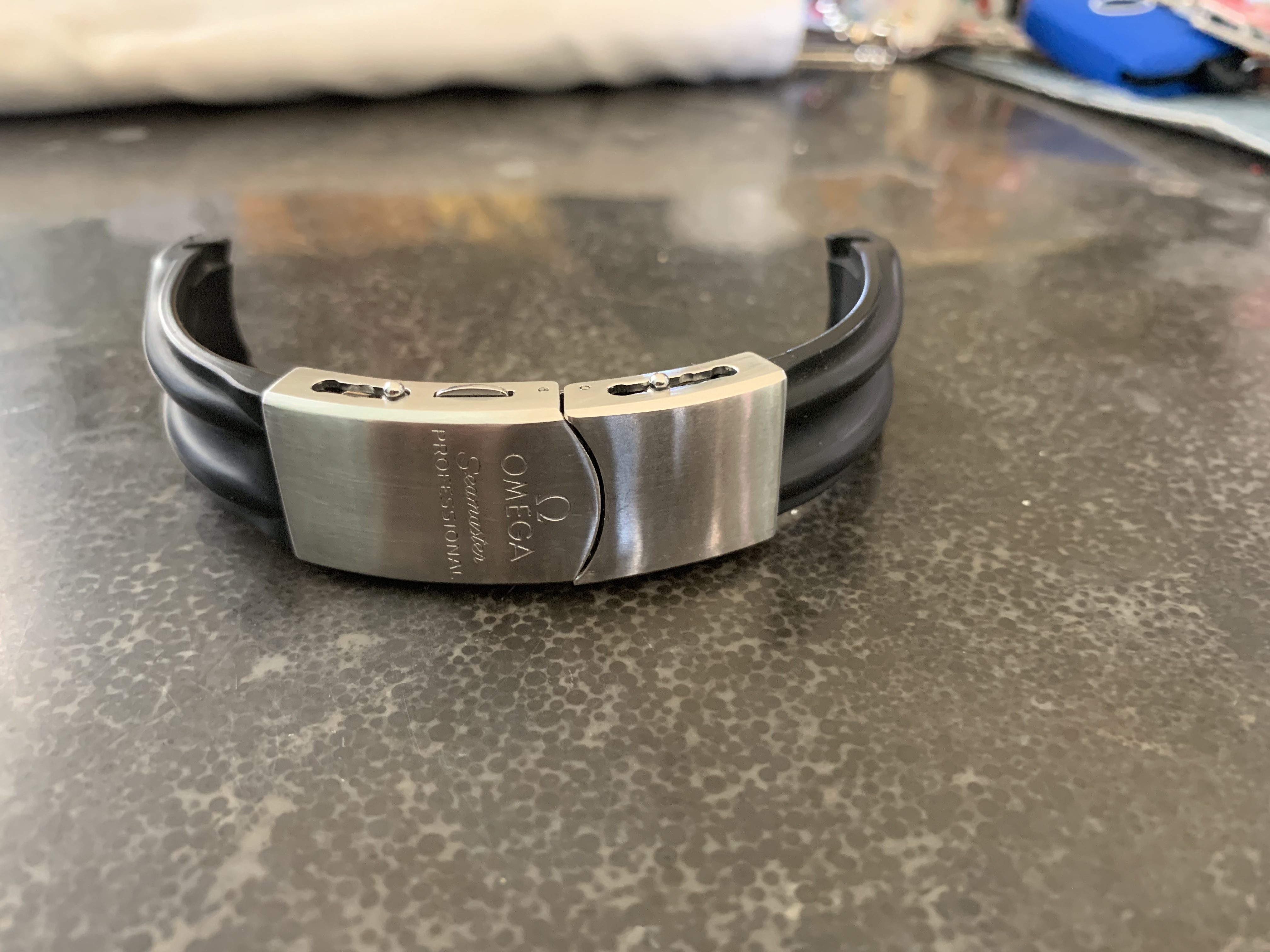 ·Bought a used older broad hands omega seamaster 300 came on a older style rubber bracelet with a deployment clasp. I absolutely love the watch but hate the rubber bracelet, decided to go with a nato strap until I could afford the original metal bracelet, so I am looking to trade or sell the original Oem bracelet. Don’t know much about the bracelet but it is in great condition with a fully functional omega professional deployment clasp. Will fit a 20mm older seamaster. ? [email protected] jeff ( any additional info on this bracelet would be appreciated)