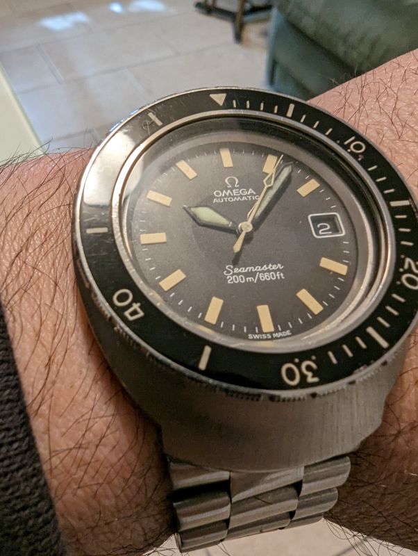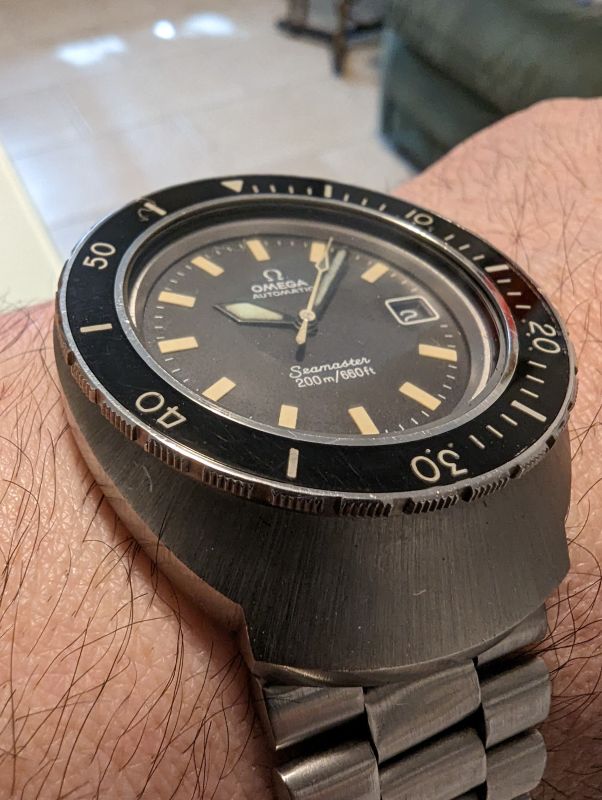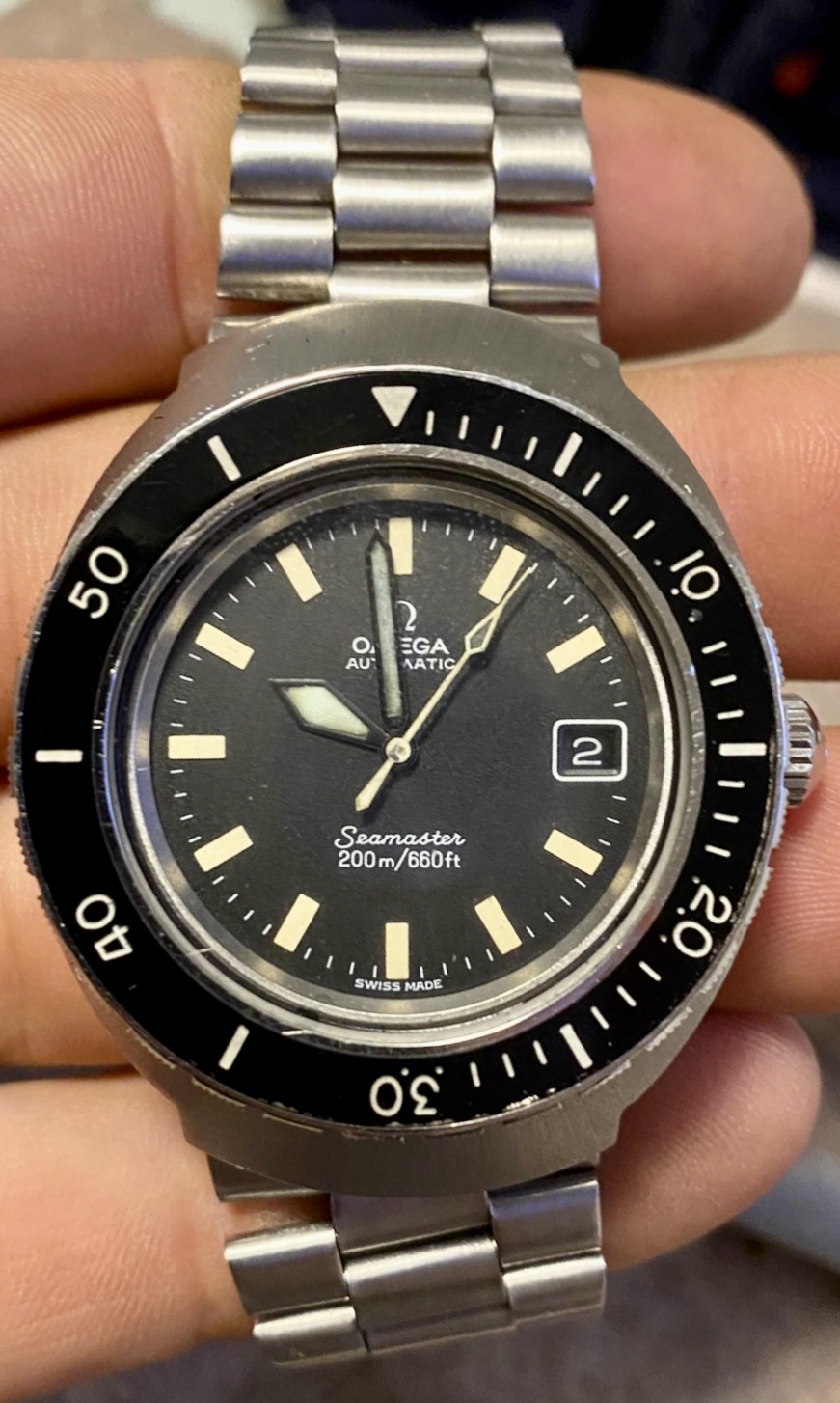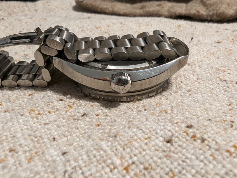 hands IMO relumed with ??? You should ask for a picture of the dial under UV-light. Bracelet worn out, known problem of integrated bracelets (I am not a fan of these)