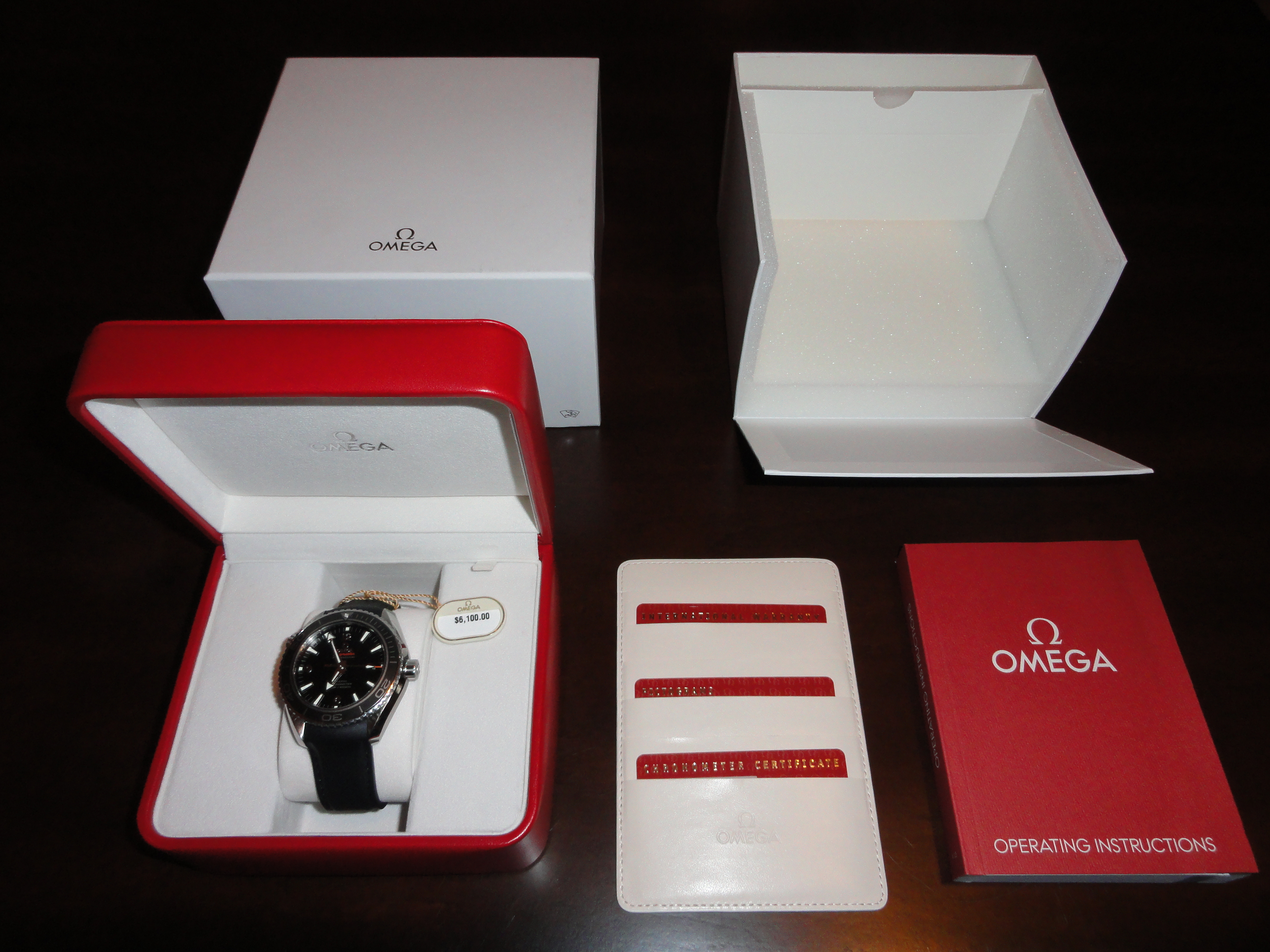·- Hey guys. I am re-posting this with better pictures and a new price. I have a Like New Omeage Seamaster Planet Ocean 45.5 with the rubber strap. It is the 2013 model (232.32.46.21.01.003) and has zero marks or defects anywhere. It comes with everything I received with it. The original white box, the red watch box, the operating instructions manual, the price tag, and all three warranty cards. I bought the watch for $6100 and would like to sell it for $3250 OBO.