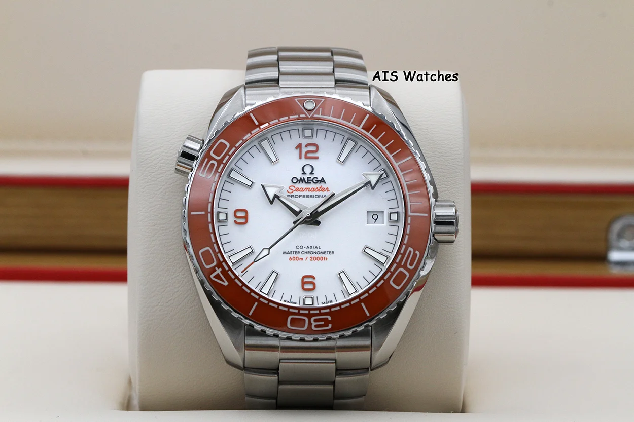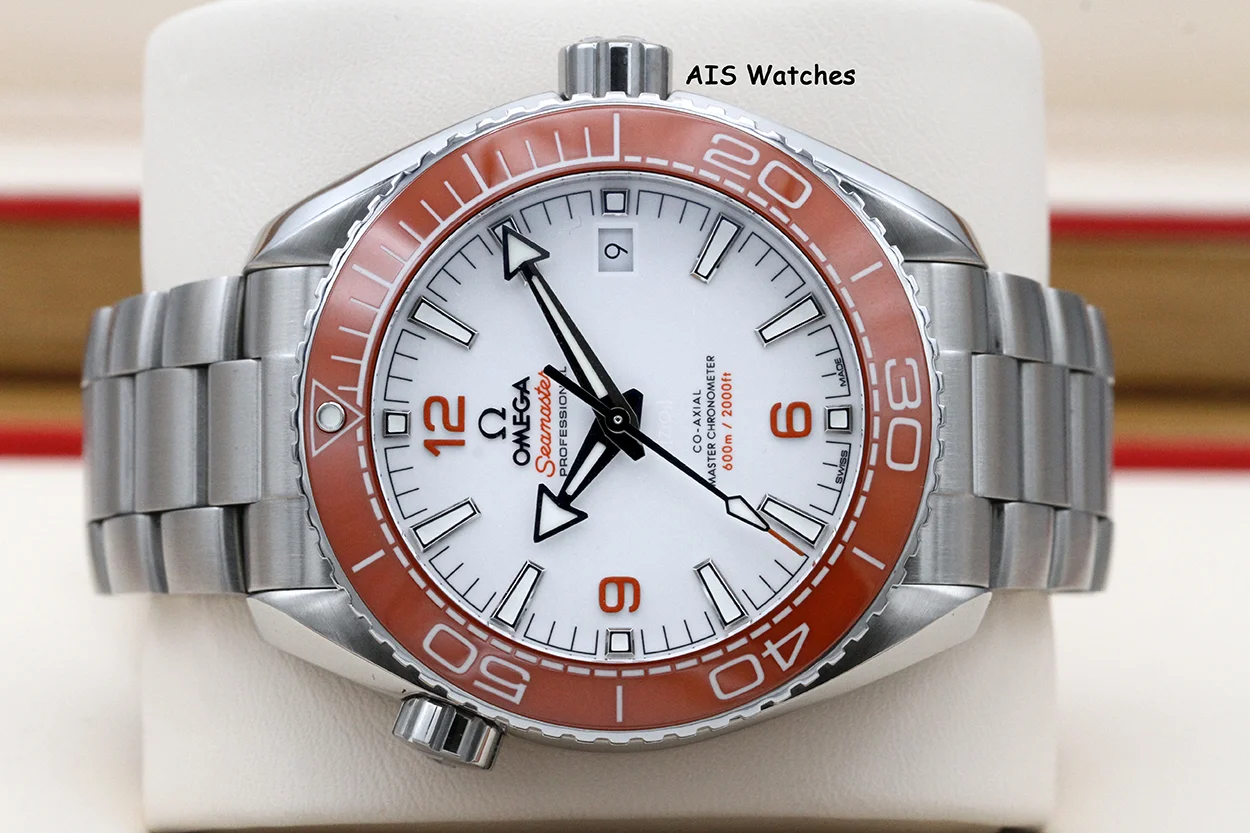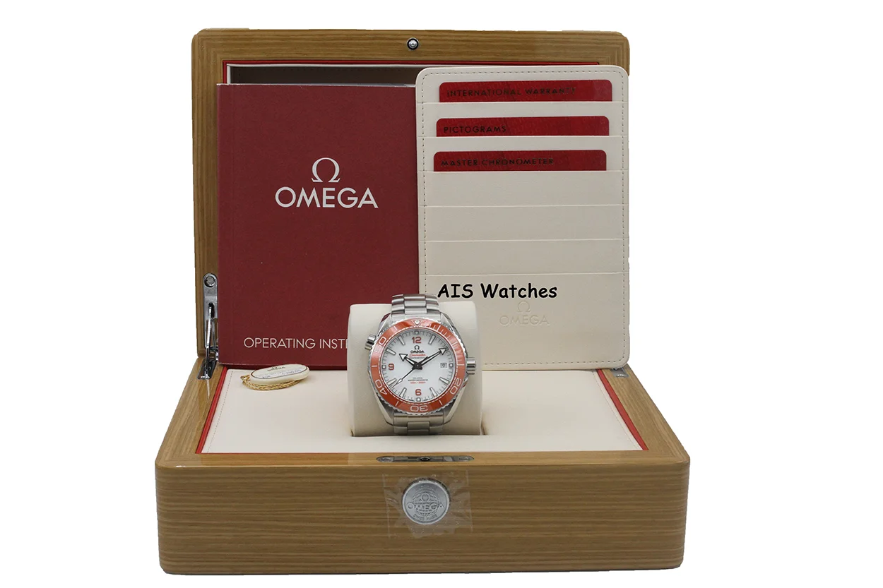 Up for sale is an Omega Seamaster Planet Ocean 600M 215.30.44.21.04.001 43MM Orange Bezel / White Dial Box & Papers. The timepiece is in excellent condition.