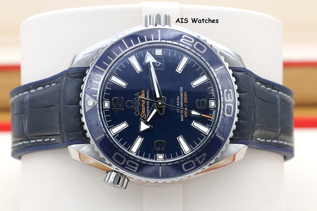 Up for sale is an Omega Seamaster Planet Ocean 600M 215.33.40.20.03.001 39.5MM Blue Dial Ceramic Bezel / Blue Dial / Leather Strap Box & Papers. The timepiece is in excellent condition.