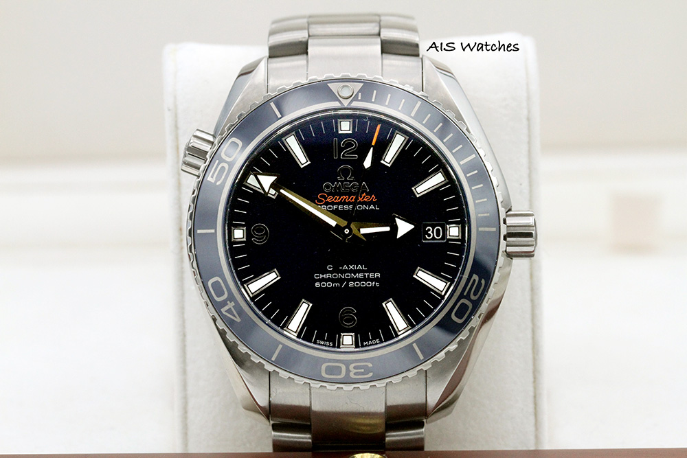 Up for sale is an Omega Seamaster Planet Ocean Titanium 42MM Box & Papers but NO Outer Box - 232.90.42.21.03.001 Sapphire Crystal -- BLUE DIAL. Watch is in good/unpolished condition with minor swirls and seems to be worn very carefully.