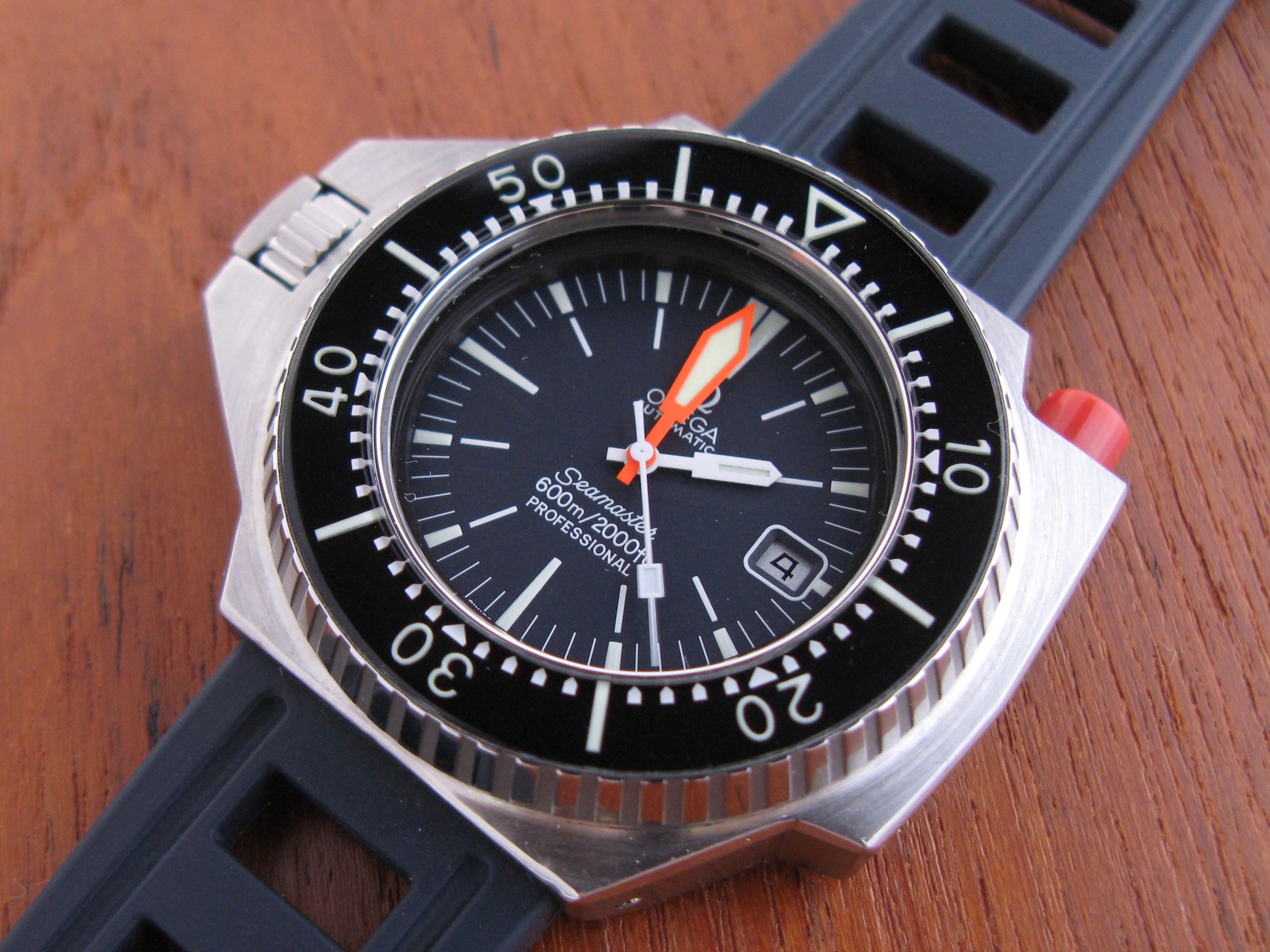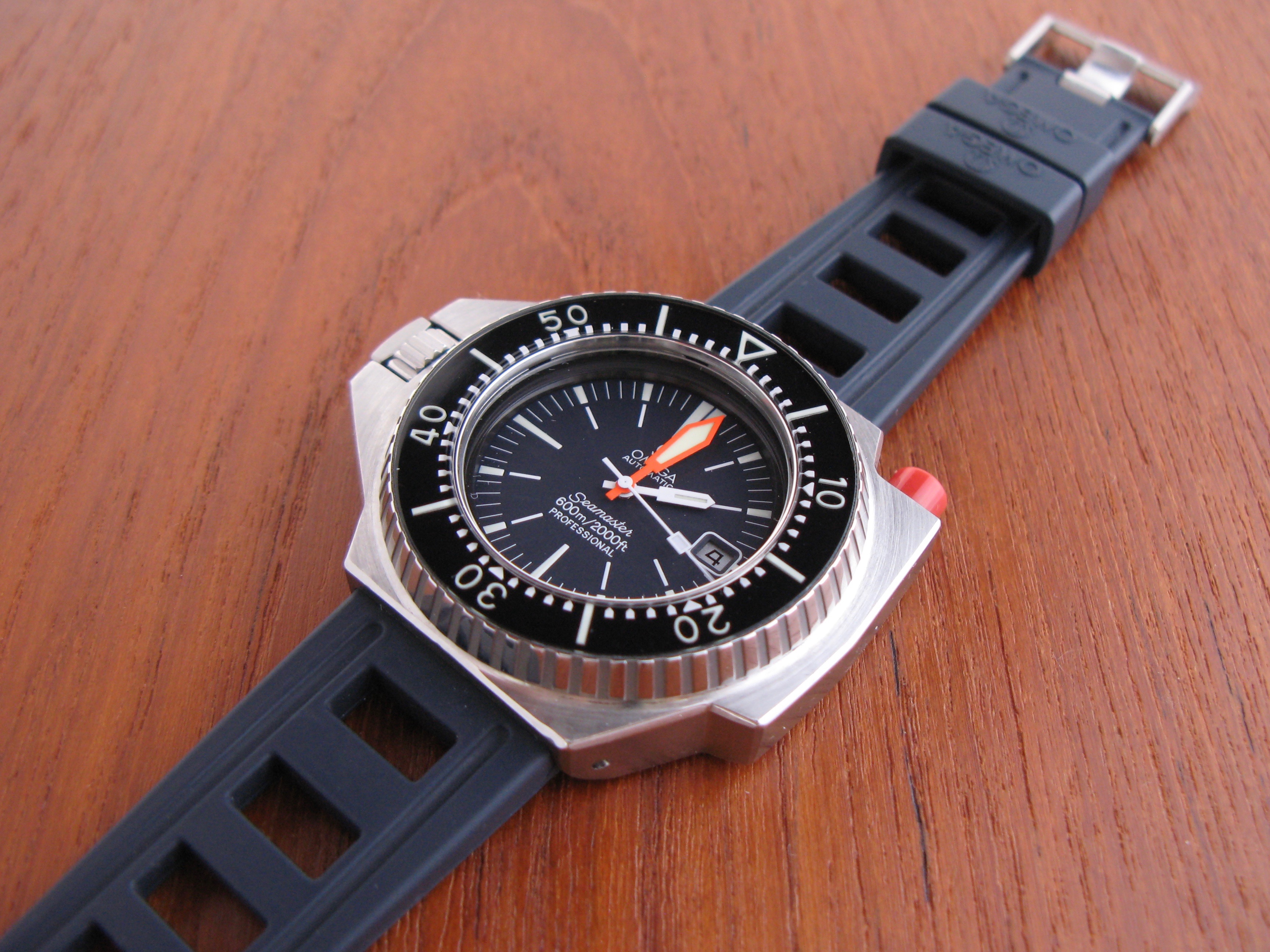 ·This Ploprof has just come back from a full Omega service and has a 2 year warranty. The EOA also comes with the watch. I purchased it from someone in the Diving industry, it was his fathers watch and he worked as a saturation diver and used this watch for work in the mid 1970s. As such it was in need of many new parts, the dial was gone as was the bezel. I sent it to Omega for a full restoration and it has come back looking beautiful. It was not cheap at over £1000 but it is back in the land of the living so I think worth the investment.