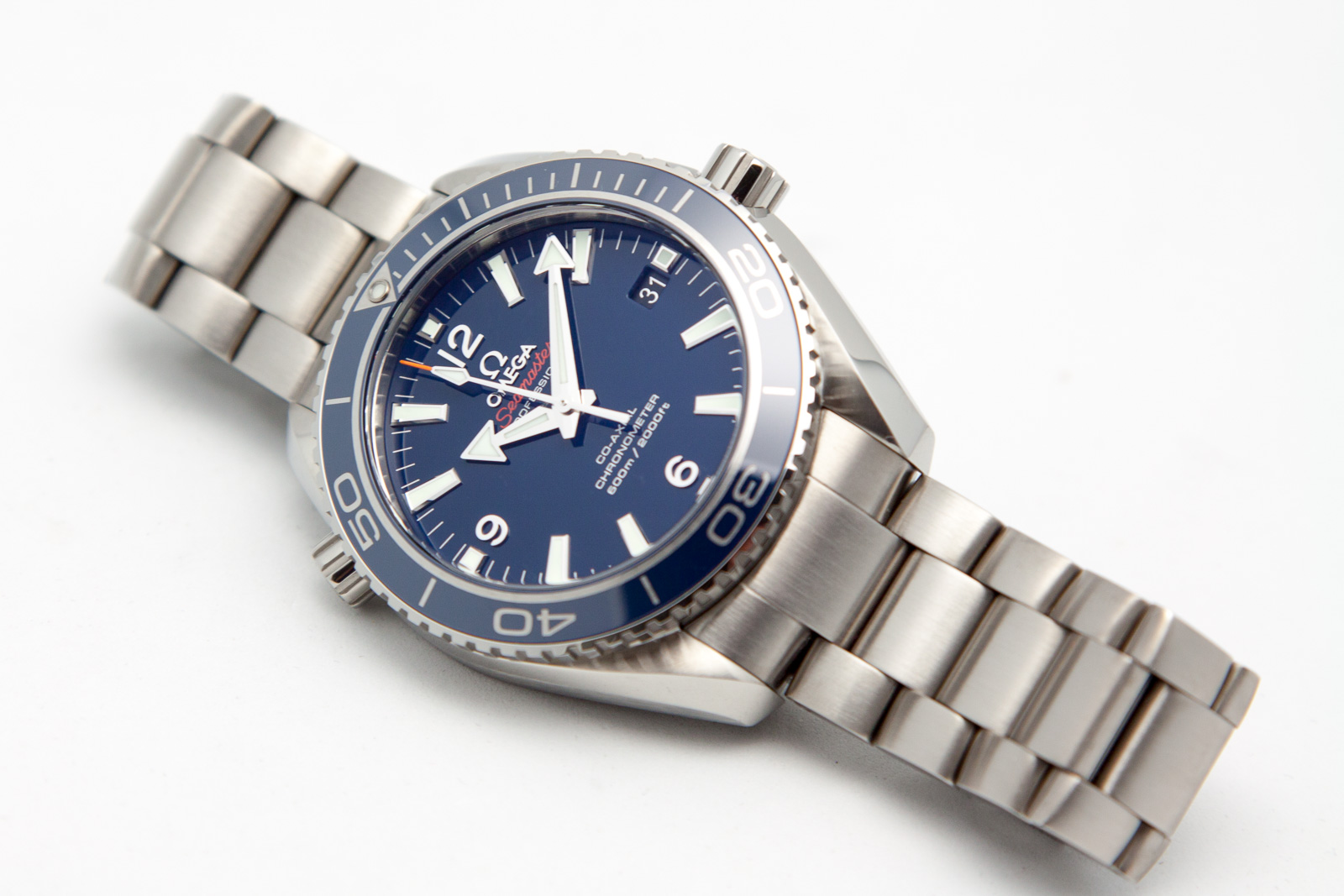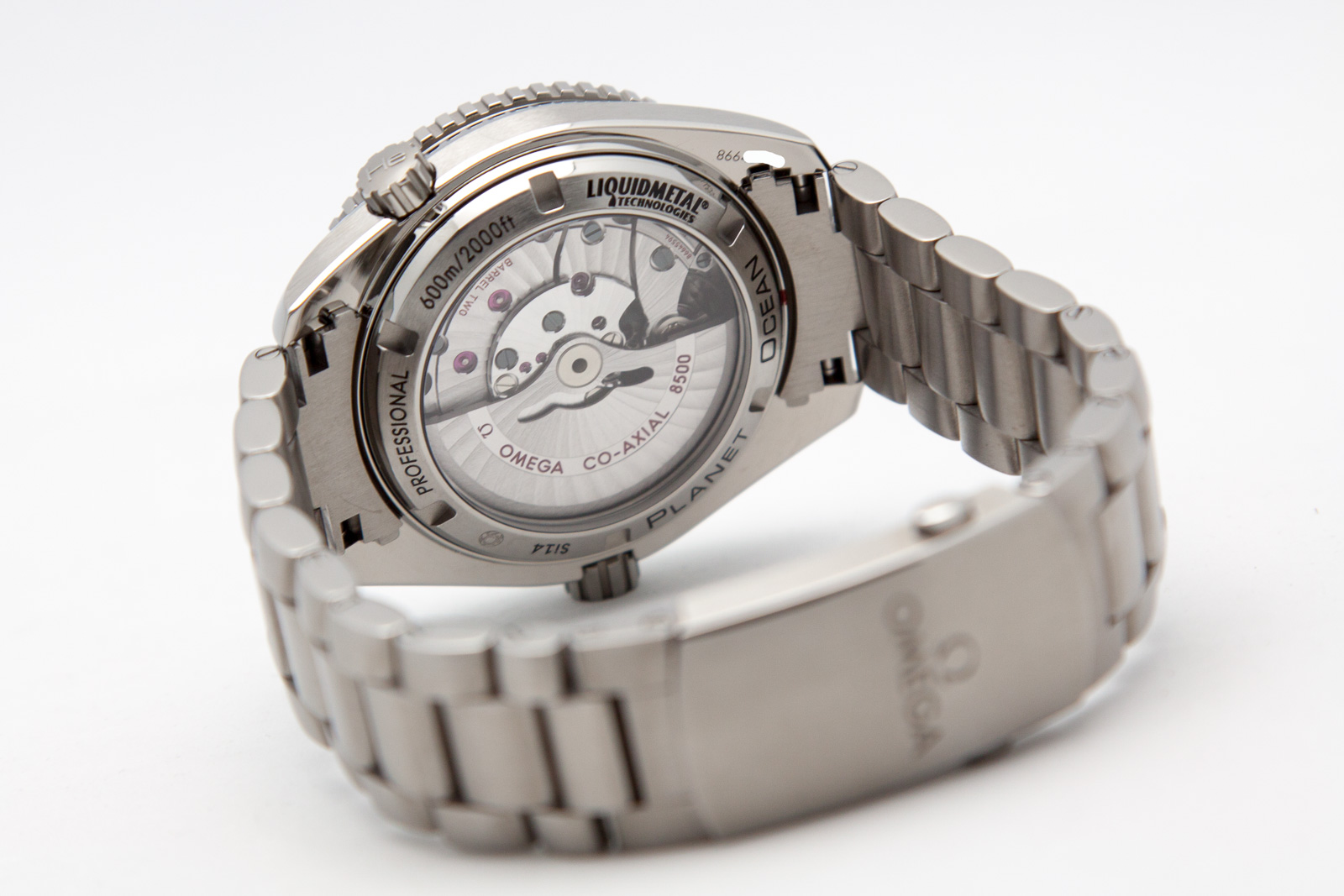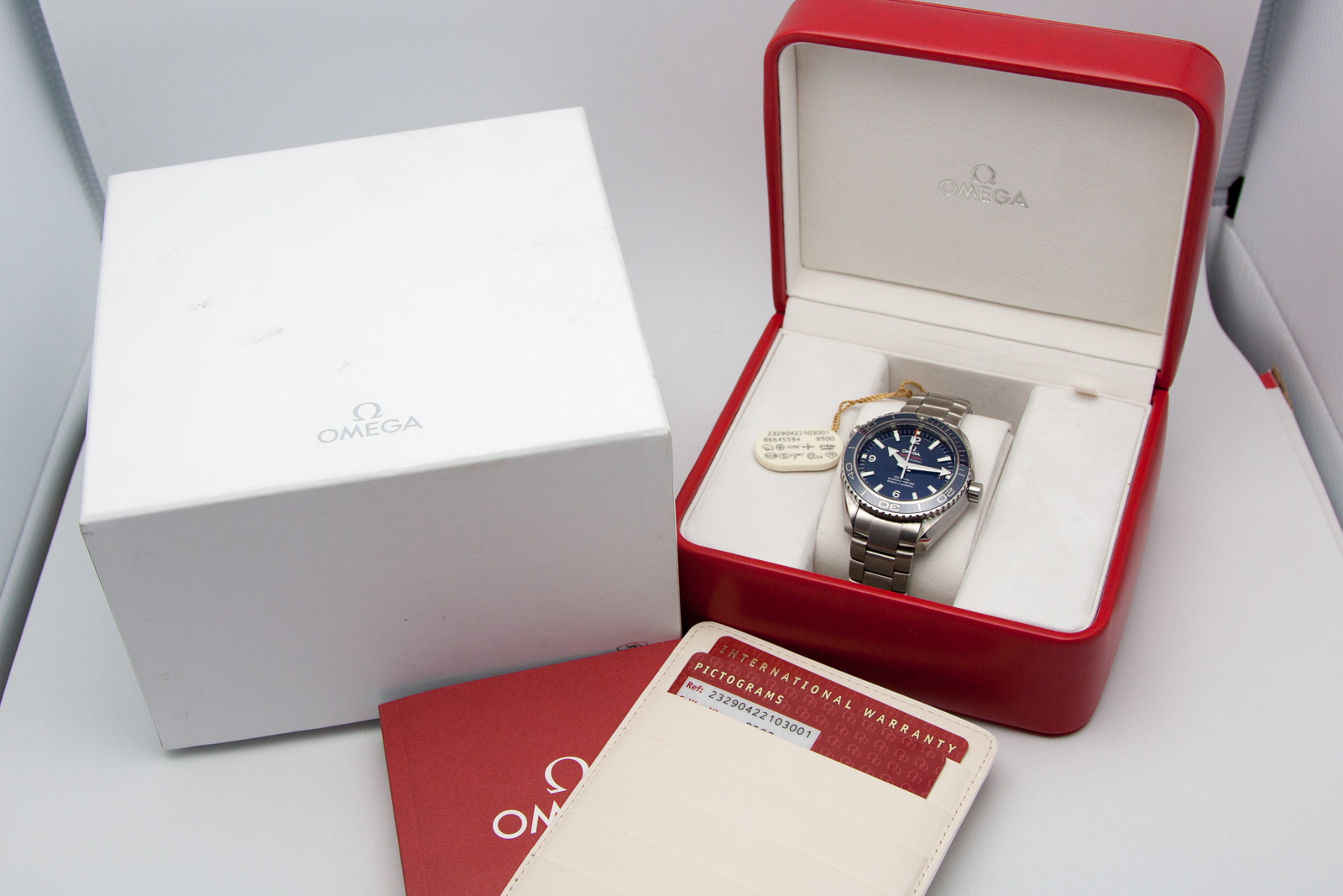 ·Back up for sale....Omega Seamaster Planet Ocean 600m Titanium Blue Liquidmetal, reference 232.90.42.21.03.001, 42mm. 99%, LNIB condition, with no scratches, or marks anywhere, including full length Titanium bracelet, hang tag, boxes and Pictogram Card and International Warranty cards (warranty card stamped by Omega AD and dated Apr 2014). Domed sapphire crystal is scratch free, bracelet, clasp and watch are all LNIB to MINT. Powered by the 8500 movement with Co-Axial Escapement, free sprung-balance, and automatic winding in both directions to reduce winding time, decorated with Geneva waves in arabesque and features 60 hour power reserve.