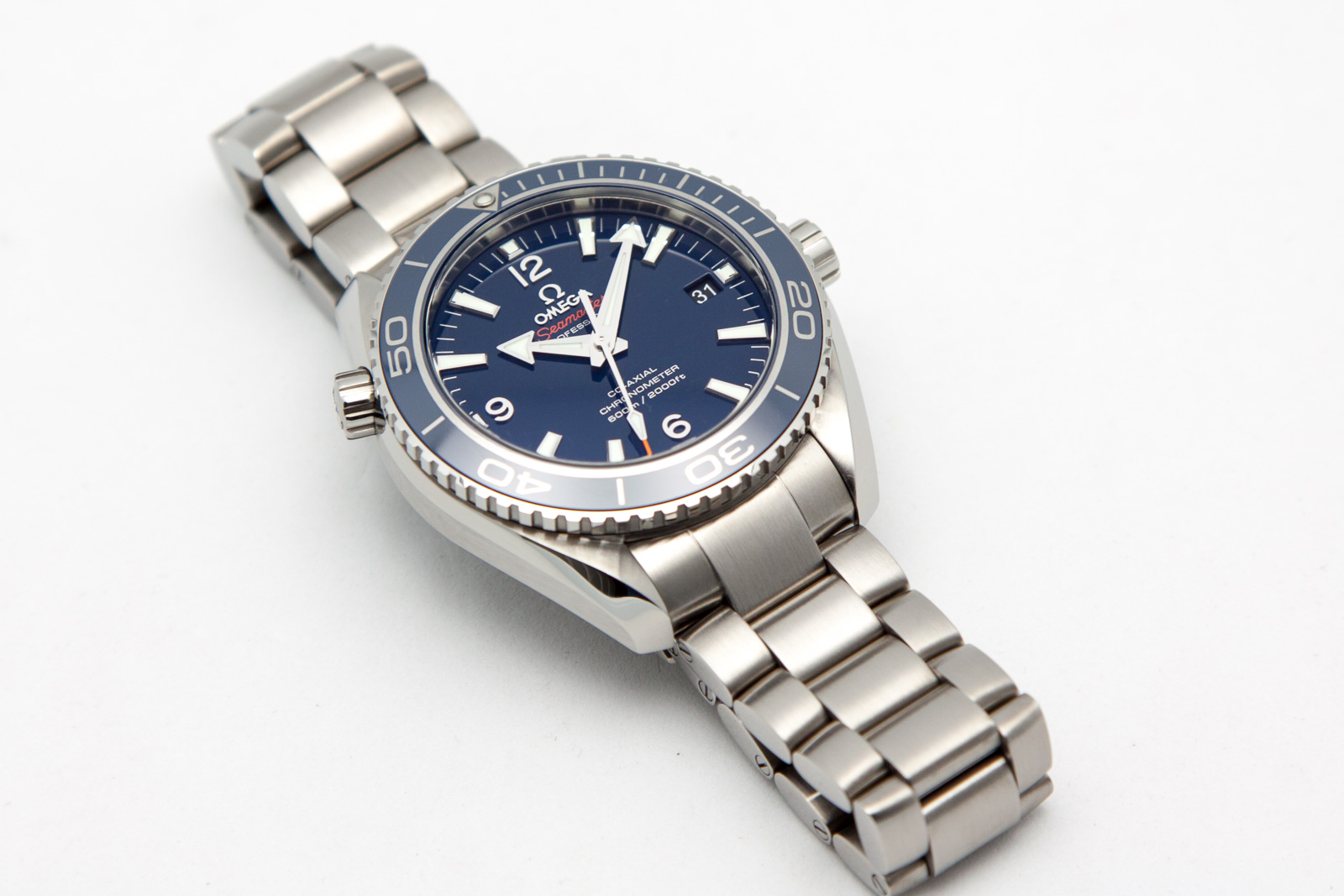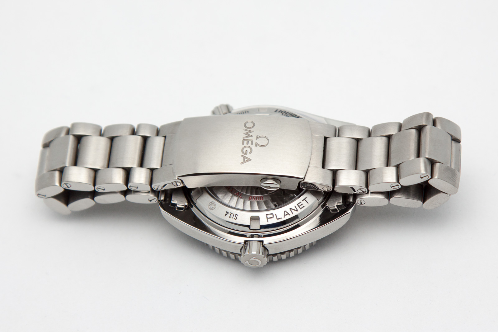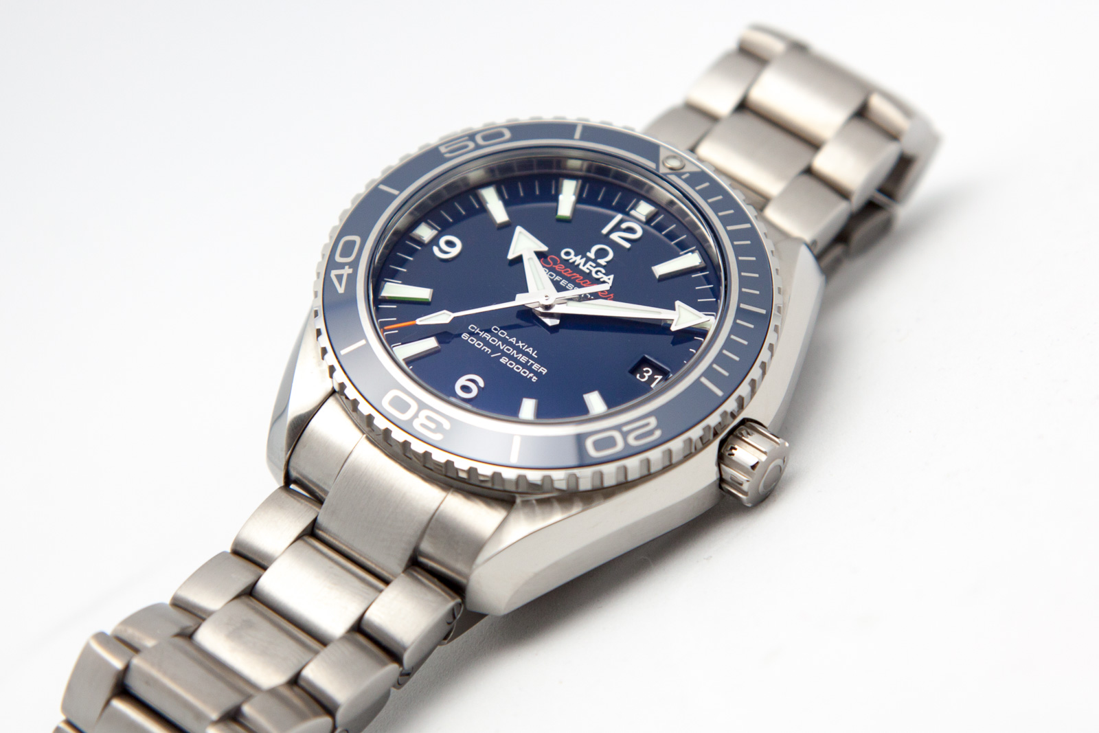 ·Back up for sale....Omega Seamaster Planet Ocean 600m Titanium Blue Liquidmetal, reference 232.90.42.21.03.001, 42mm. 99%, LNIB condition, with no scratches, or marks anywhere, including full length Titanium bracelet, hang tag, boxes and Pictogram Card and International Warranty cards (warranty card stamped by Omega AD and dated Apr 2014). Domed sapphire crystal is scratch free, bracelet, clasp and watch are all LNIB to MINT. Powered by the 8500 movement with Co-Axial Escapement, free sprung-balance, and automatic winding in both directions to reduce winding time, decorated with Geneva waves in arabesque and features 60 hour power reserve.