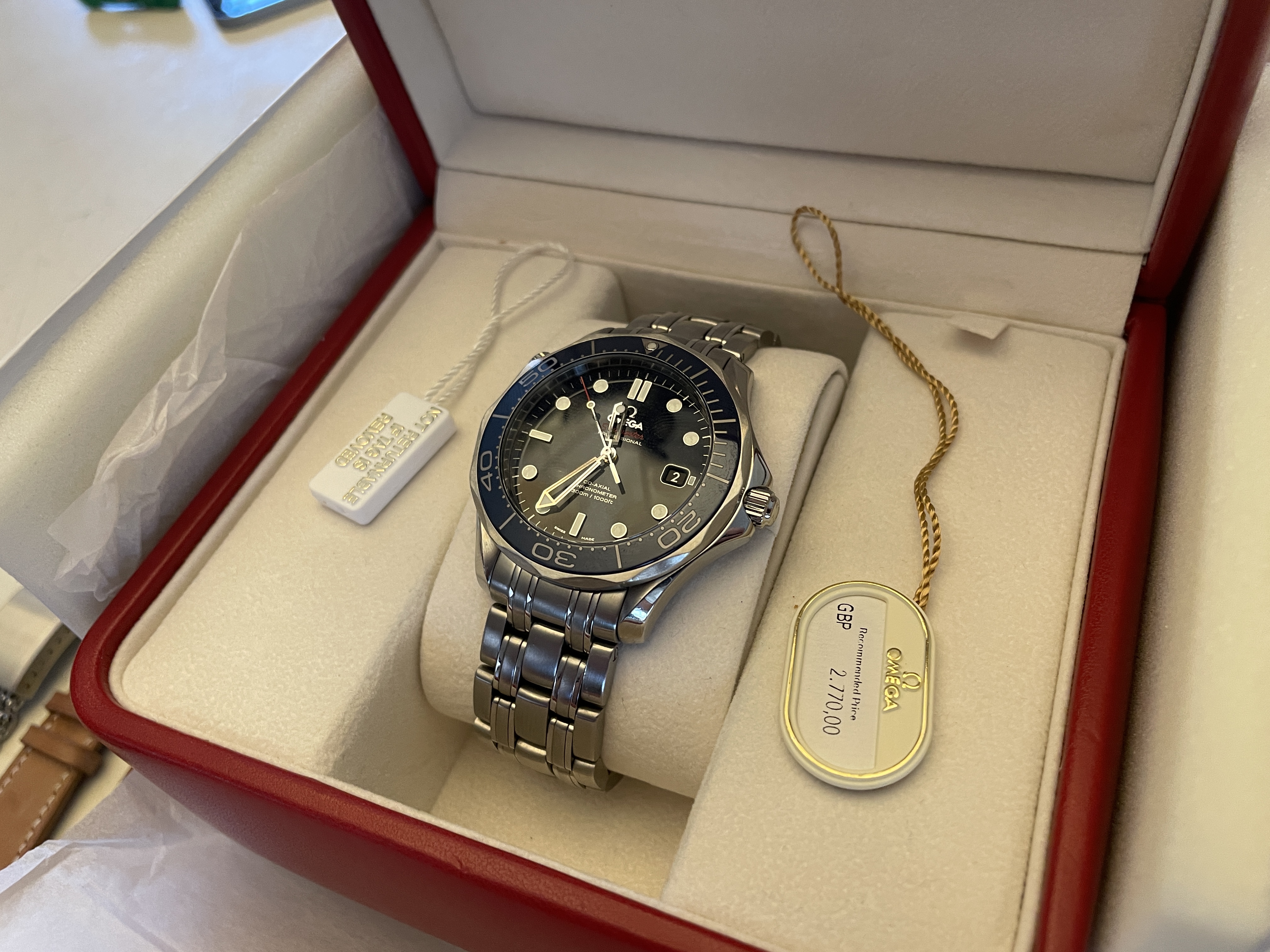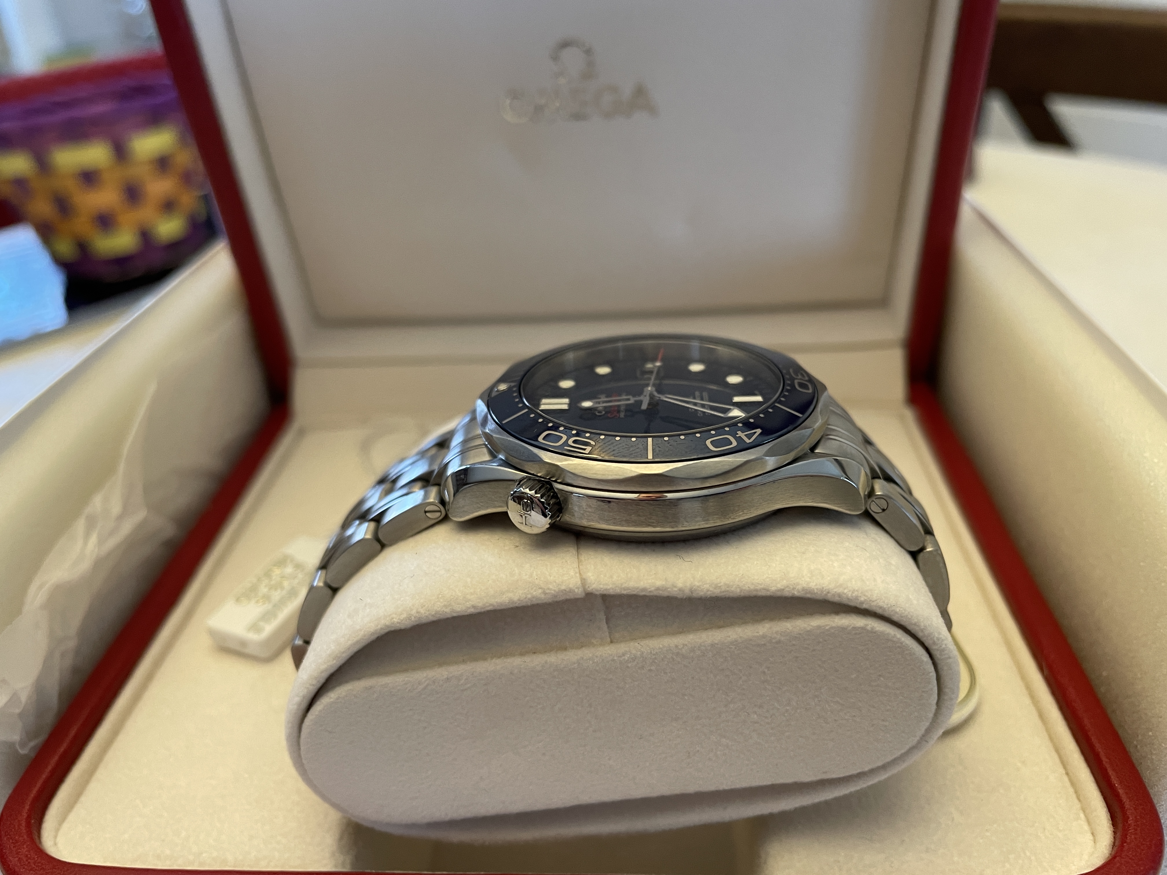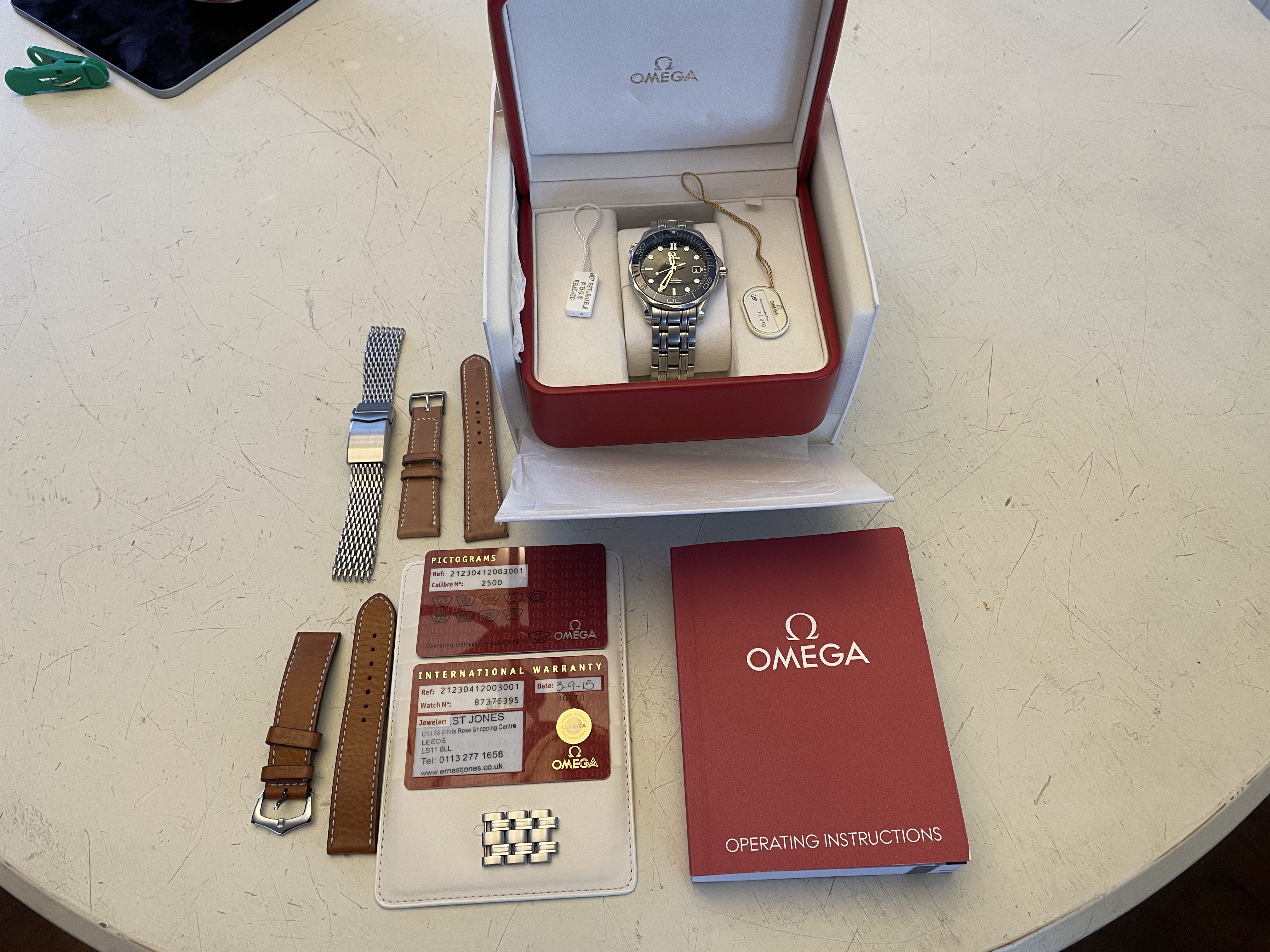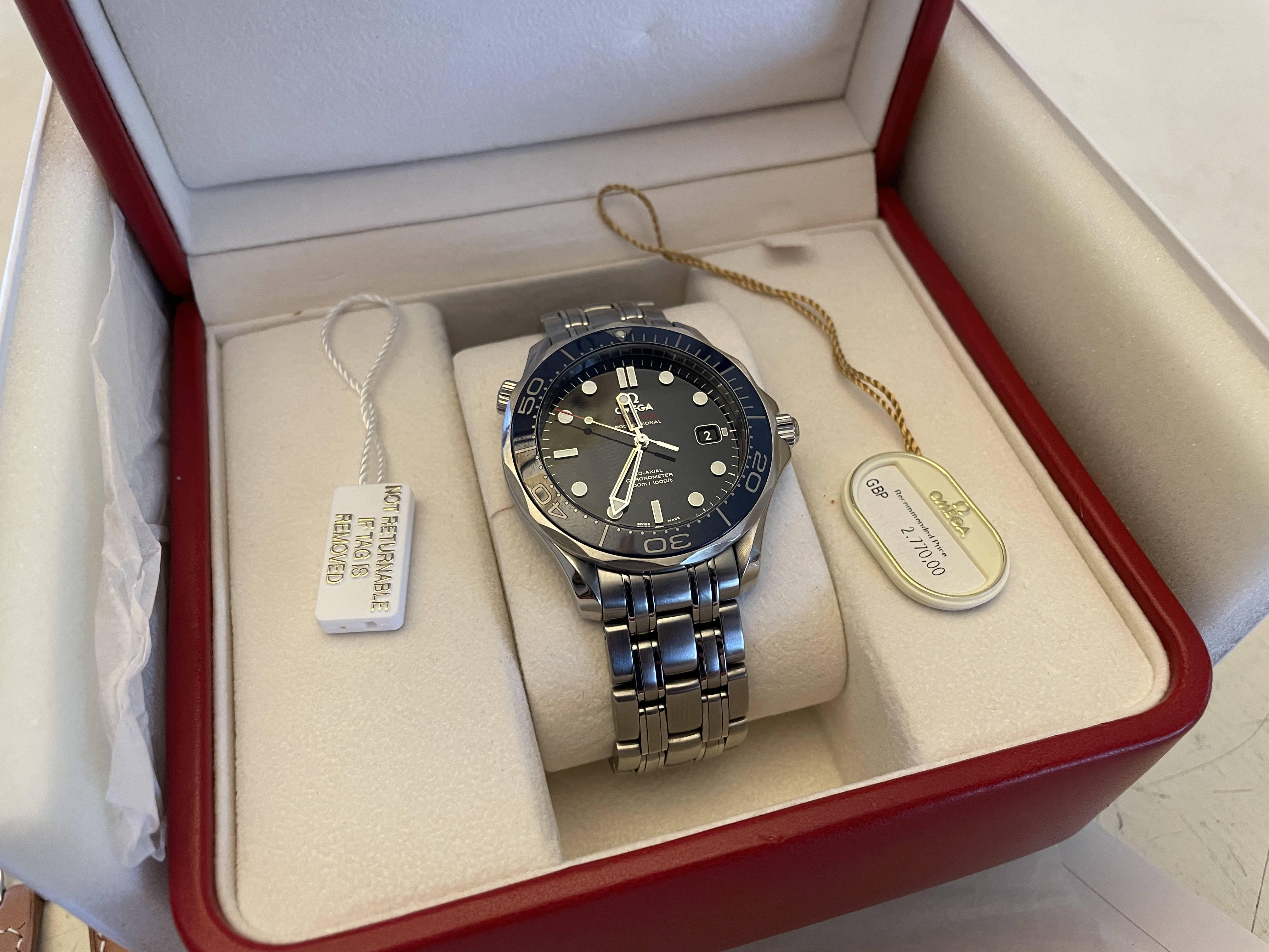·Up for sale is the Omega Seamaster Pro 300M SMPc Blue Bond Ceramic 41mm CoAxial complete with box and papers. OEM box, OEM outer white box, OEM pictogram, OEM warranty card, OEM hang tag, OEM instructional booklet. This also comes with bonus leather straps and mesh bracelet as a free gift.