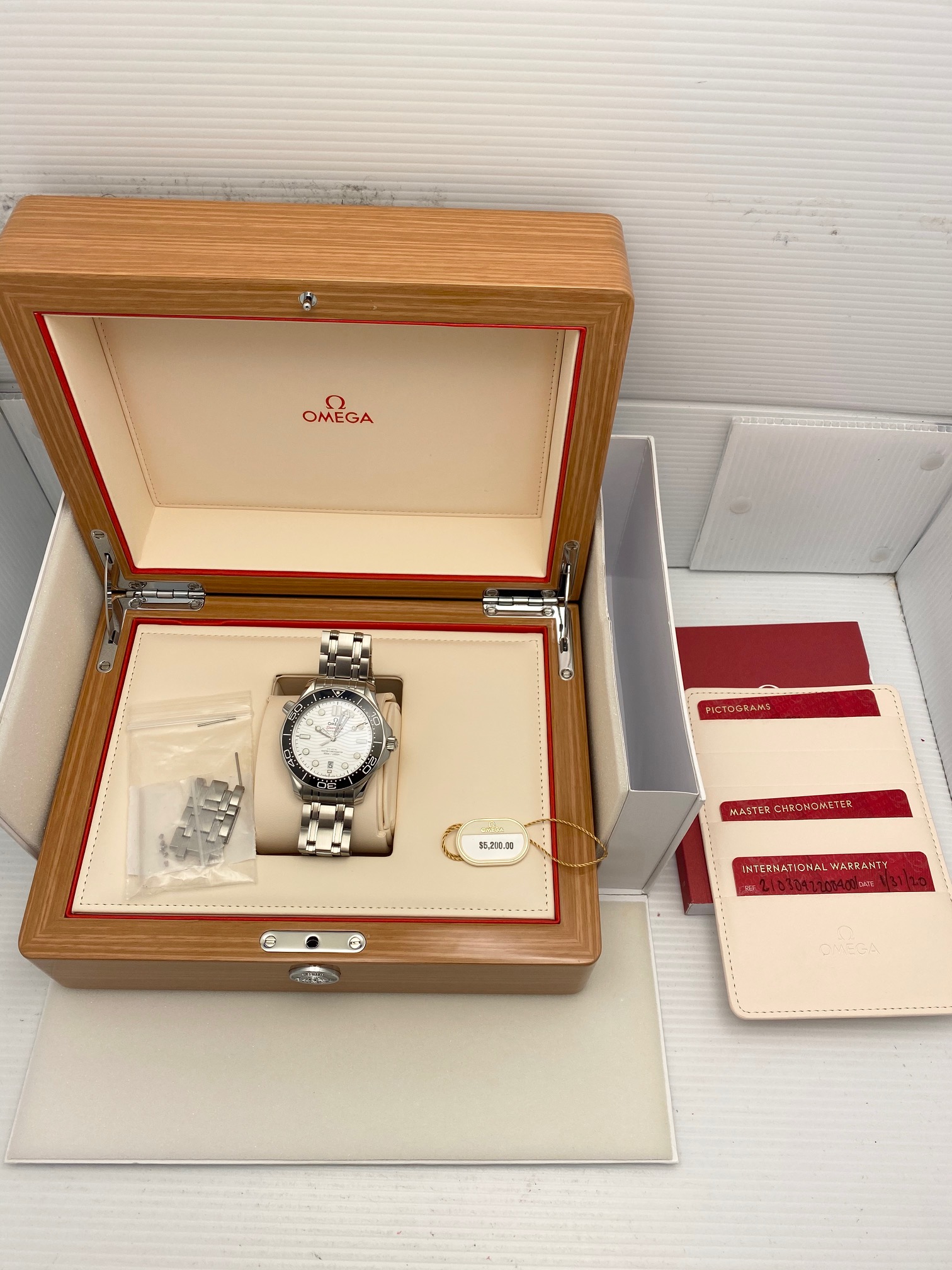 I have an Omega Seamaster Professional 210.30.42.20.04.001 for sale. Please take a look at photos for condition. Purchased Jan 2020 from an Authorized Dealer and under remaining factory warranty. Please take a look at the photos and will come with only what is in photographs or description. If any questions please ask. Previous owner tried it on after sizing and decided to go with something else. Like new!