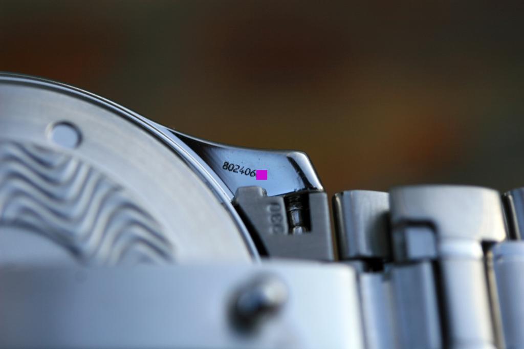 Excellent condition watch with no major dings, dents, or deep scratches. Serial number is intact and readable.