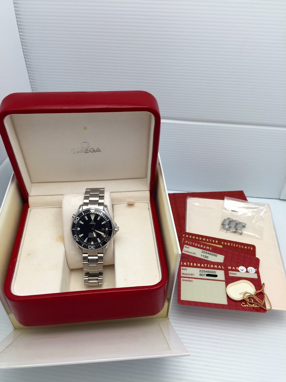 Accessories: boxes, card holder, manual, warranty card, pictogram card, chronometer card, serial tag