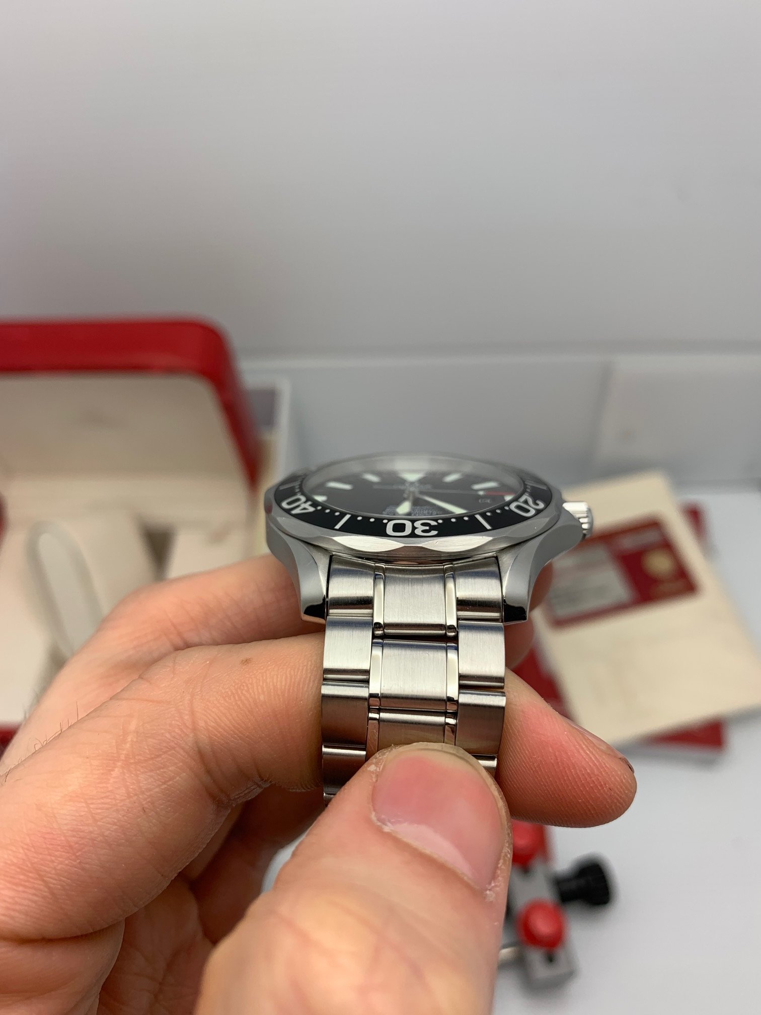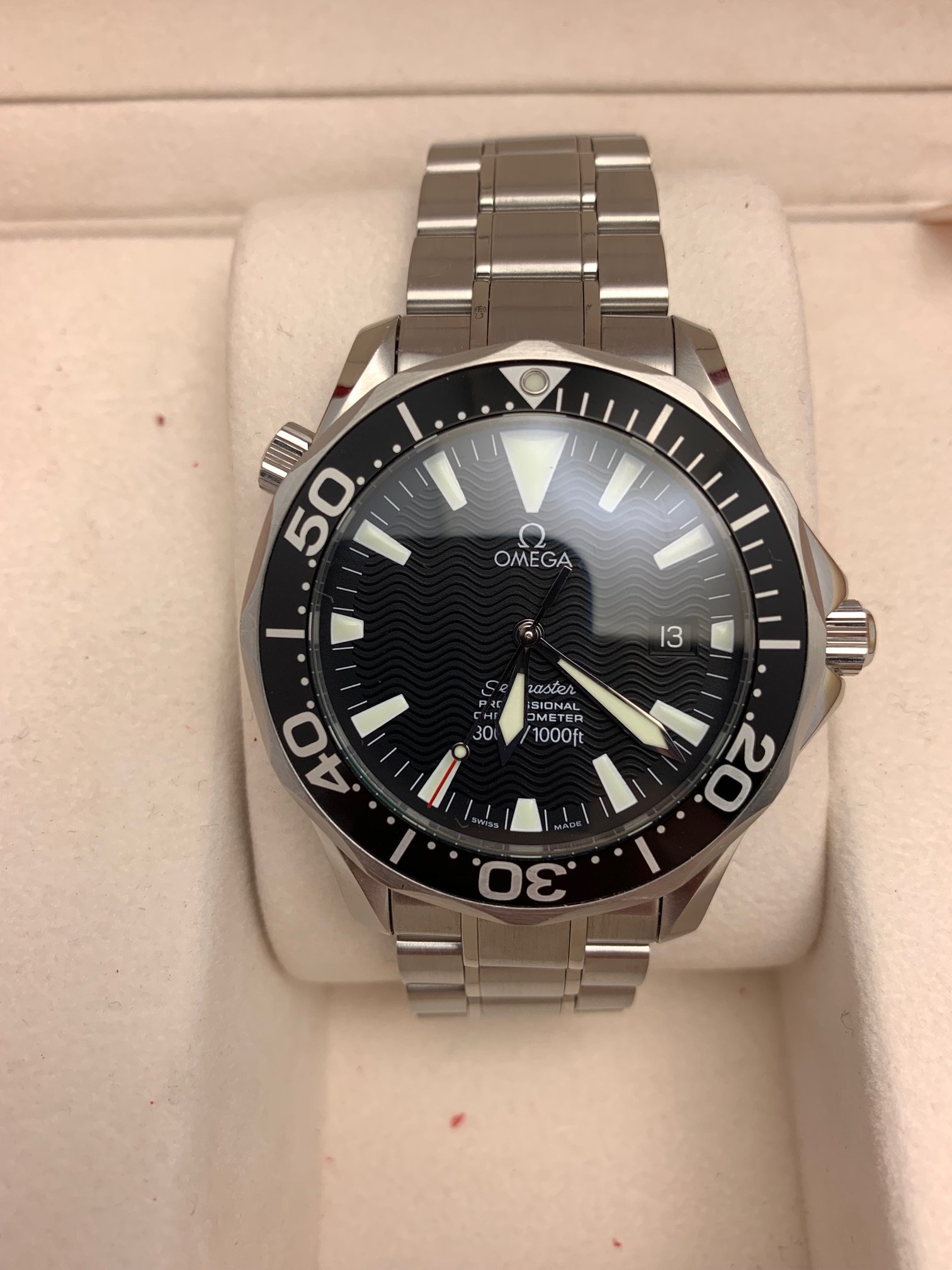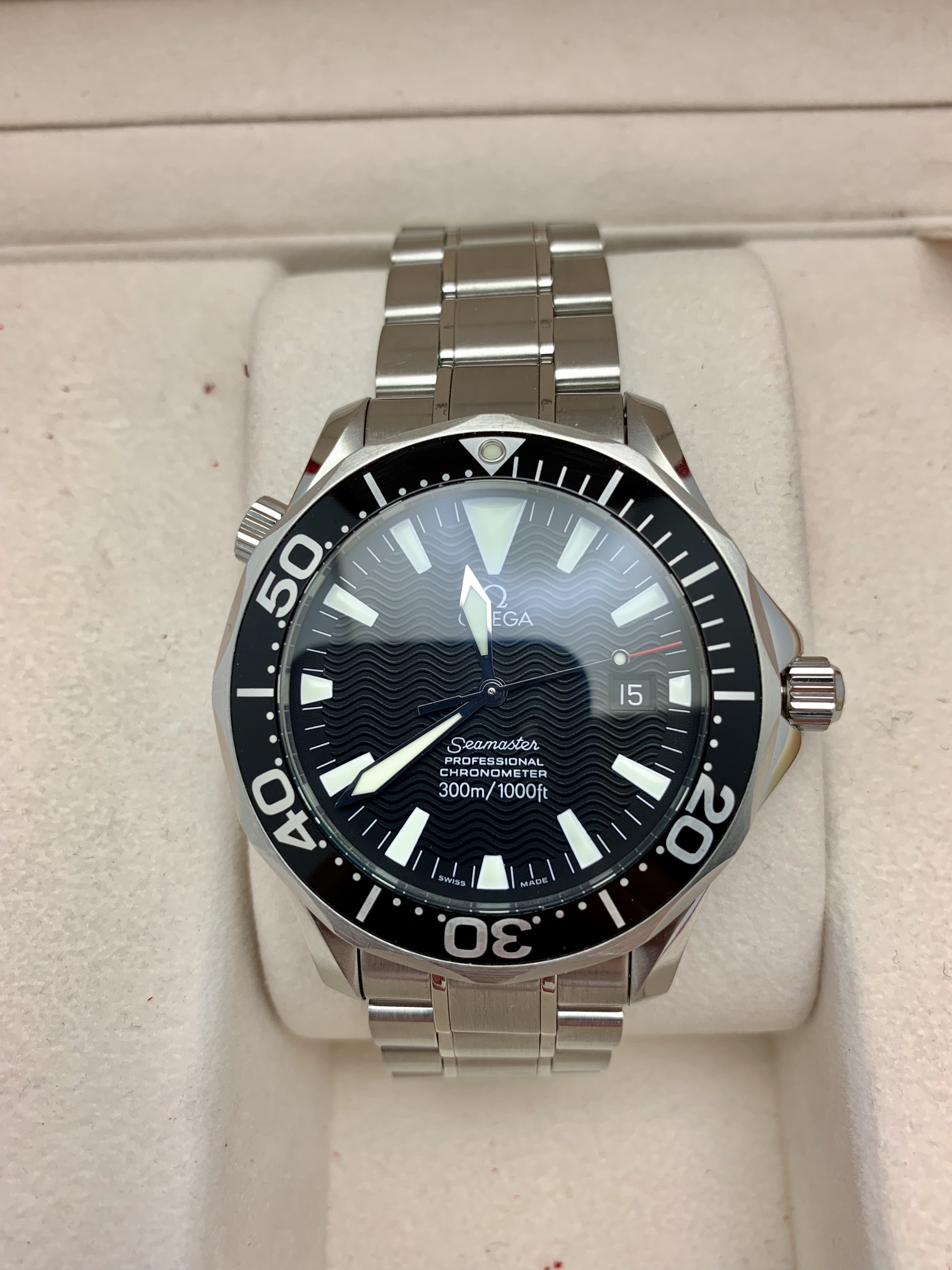 I have an Omega Seamaster Professional 2254.50 for sale. Please take a look at photos for condition. Case looks unpolished and super sharp. Bezel is clean and this is one of the top condition examples I have been able to find lately anywhere.