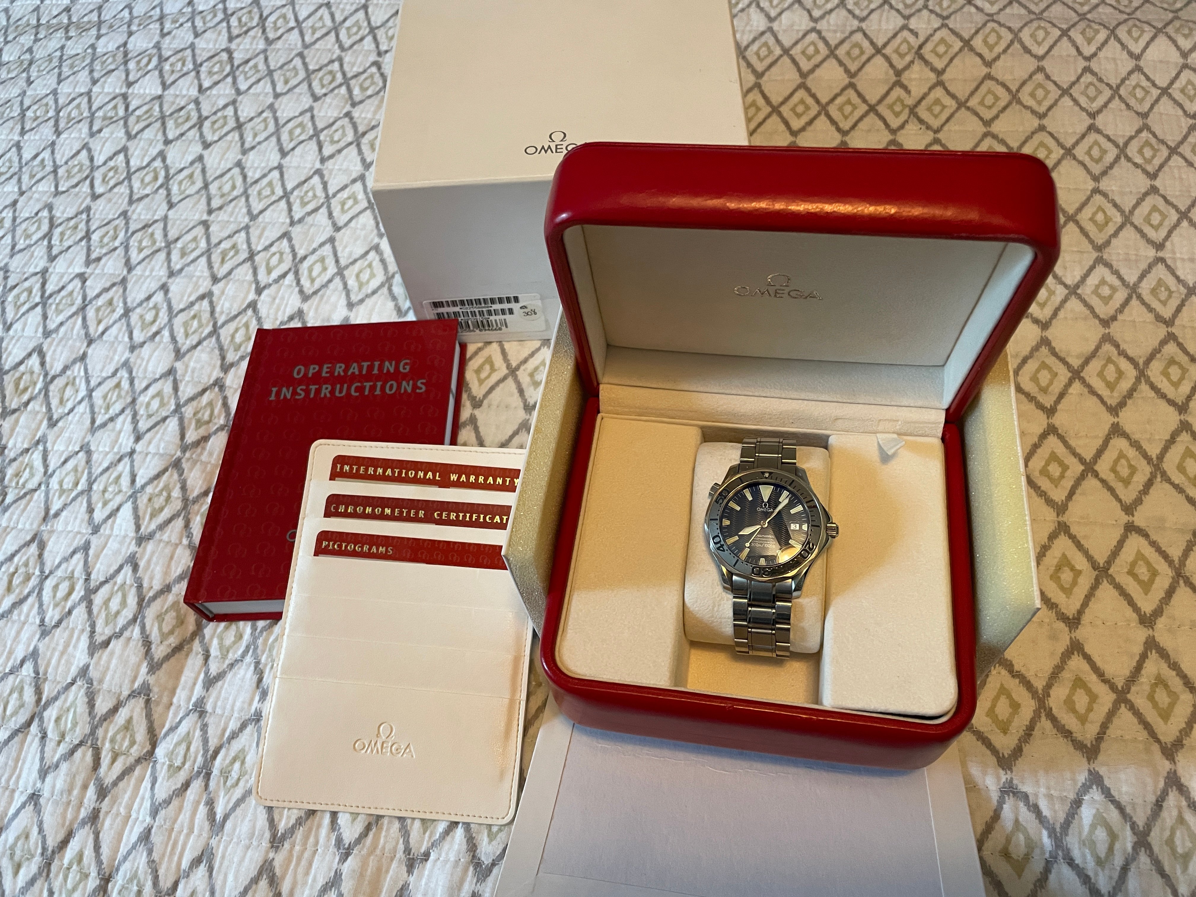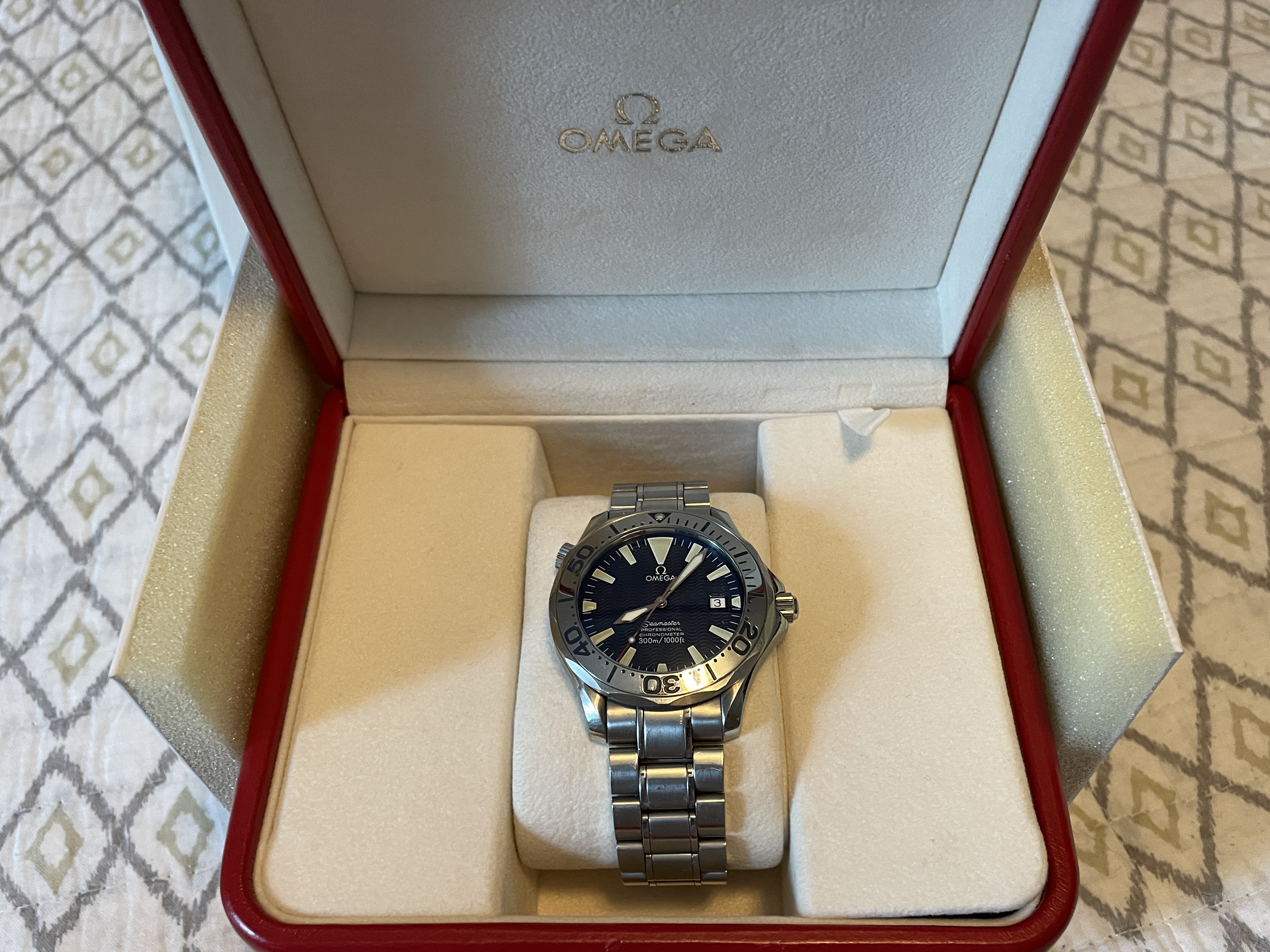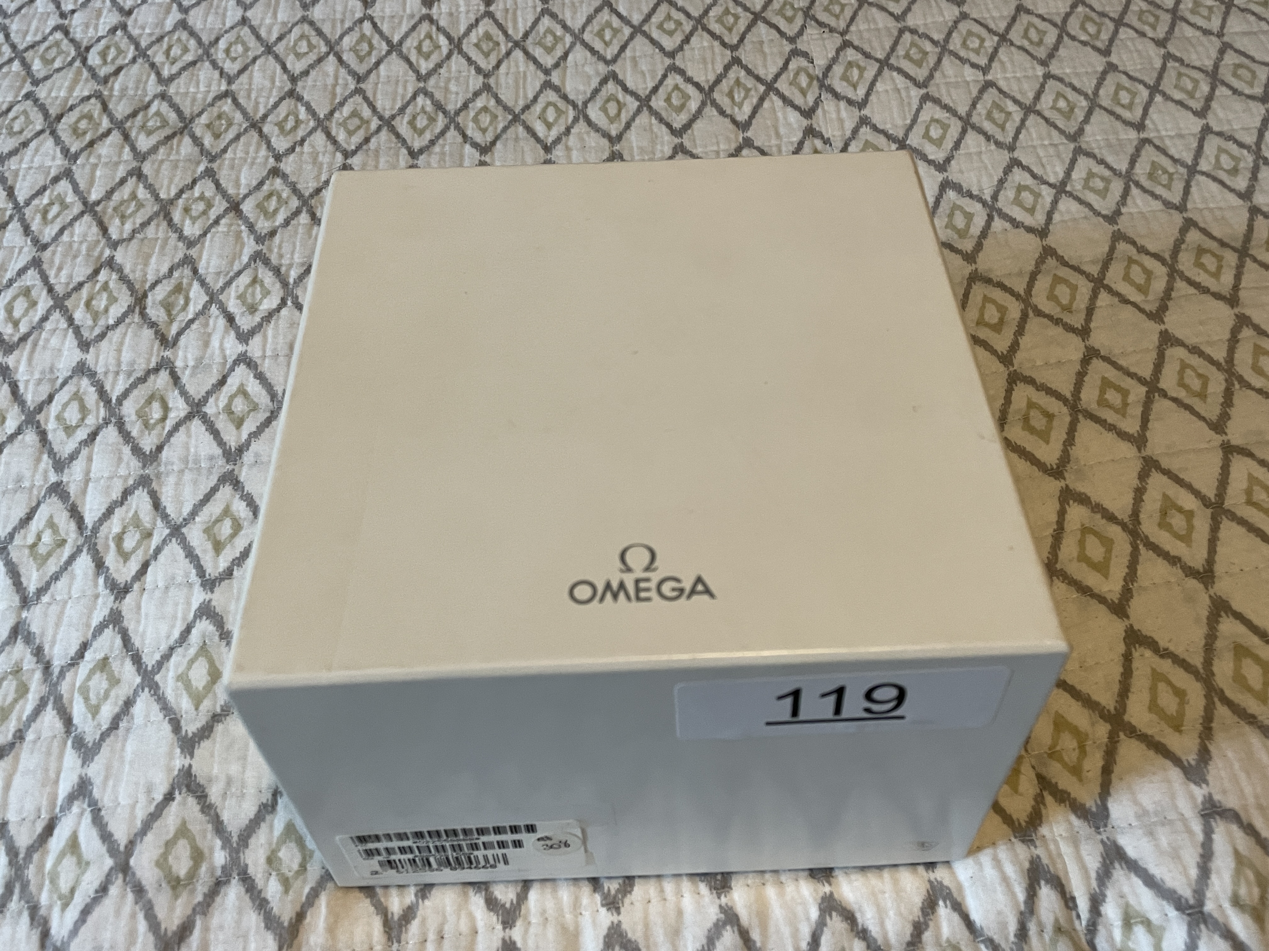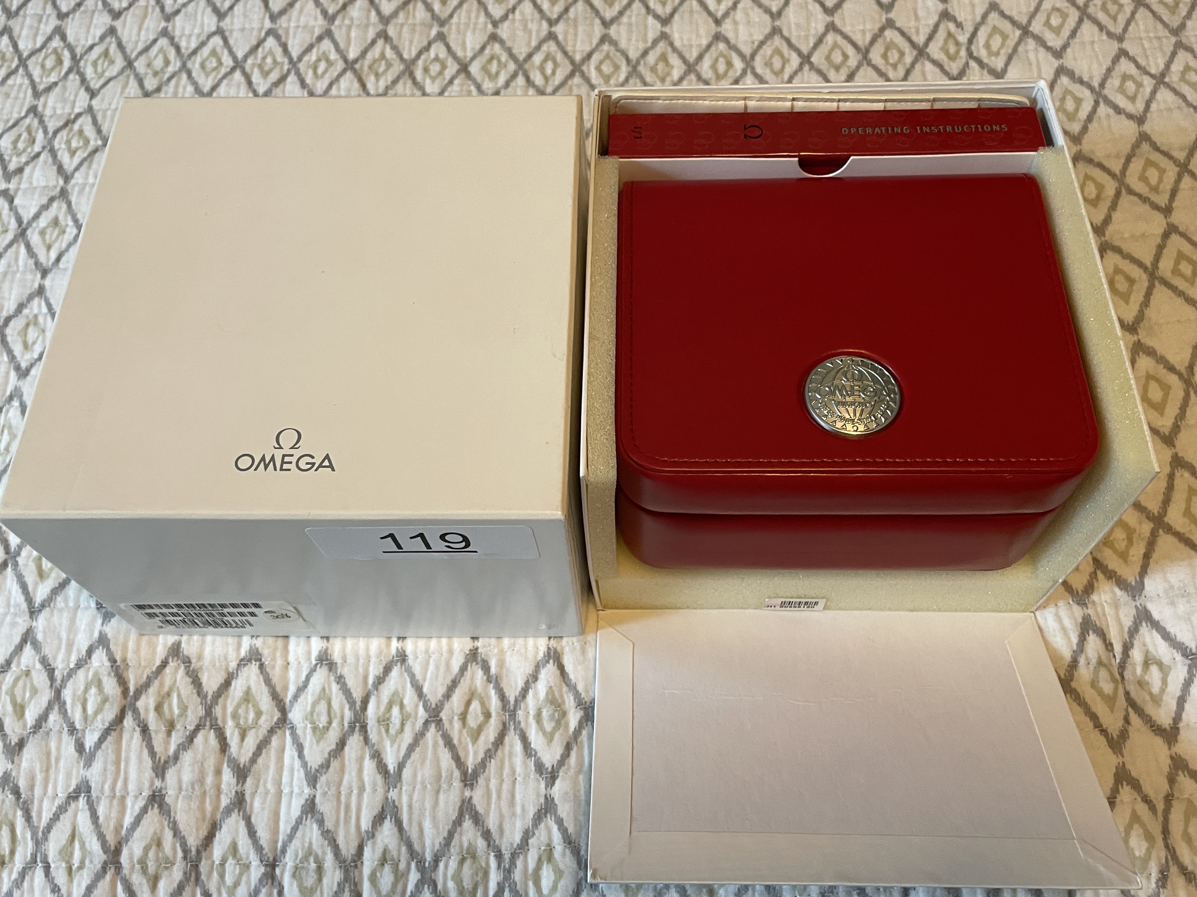 The watch comes complete with all three red OEM omega cards, OEM box, OEM white box, OEM instruction manual. The condition of the watch shows signs of regular use, light swirls on the clasp from desk diving. There are no cracks on the sapphire, it looks beautiful in person!