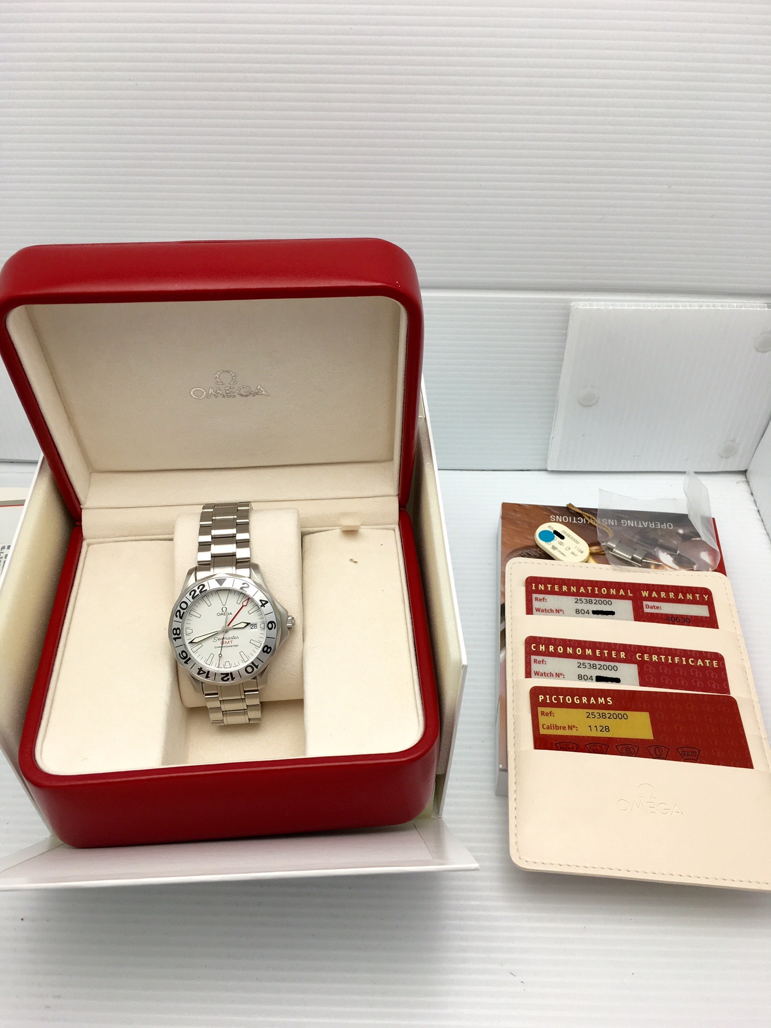 Accessories: Both Omega Boxes, Manuals, Card Holder, Chronometer card, Pictogram, Warranty Card, Serial Tag