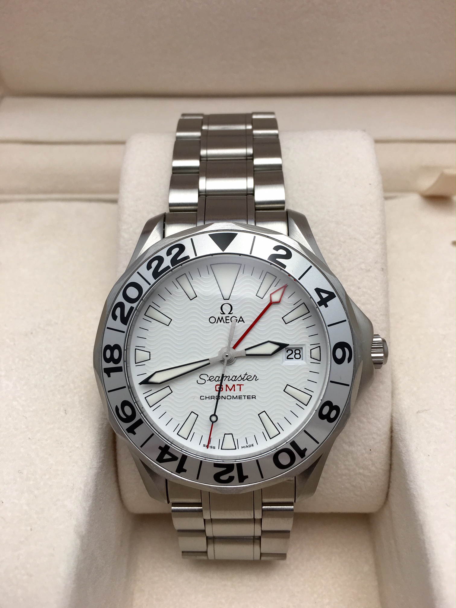I have an Omega Seamaster Professional 2538.20 for sale. This is the white GMT version of the popular sword hand series. Also known as the “Great White”. Runs great and all functions tested. See pictures for condition (click on them for higher quality)
