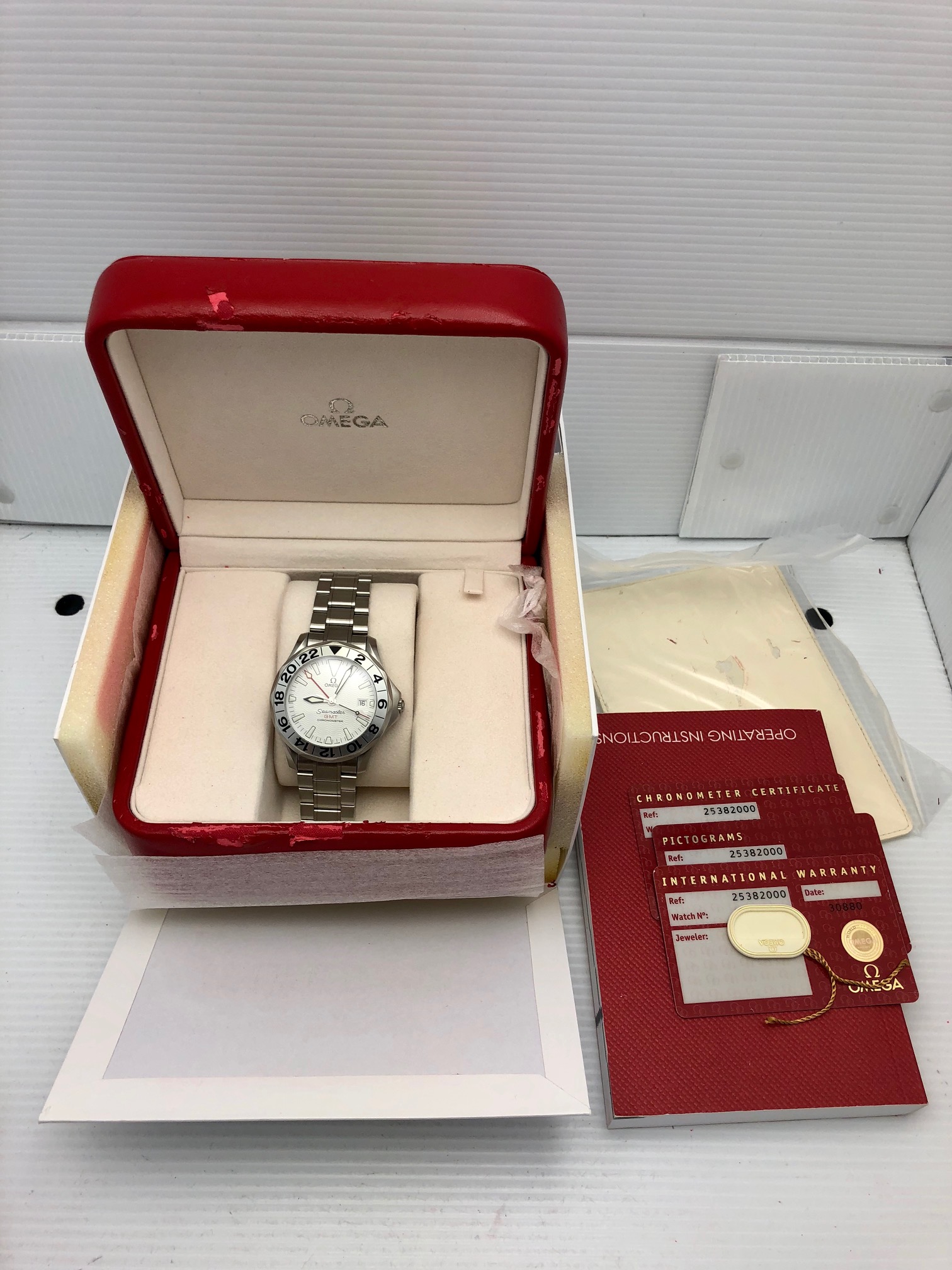 Accessories: Both Omega Boxes, All 3 red cards, Manuals, Card Holder, Serial Tag