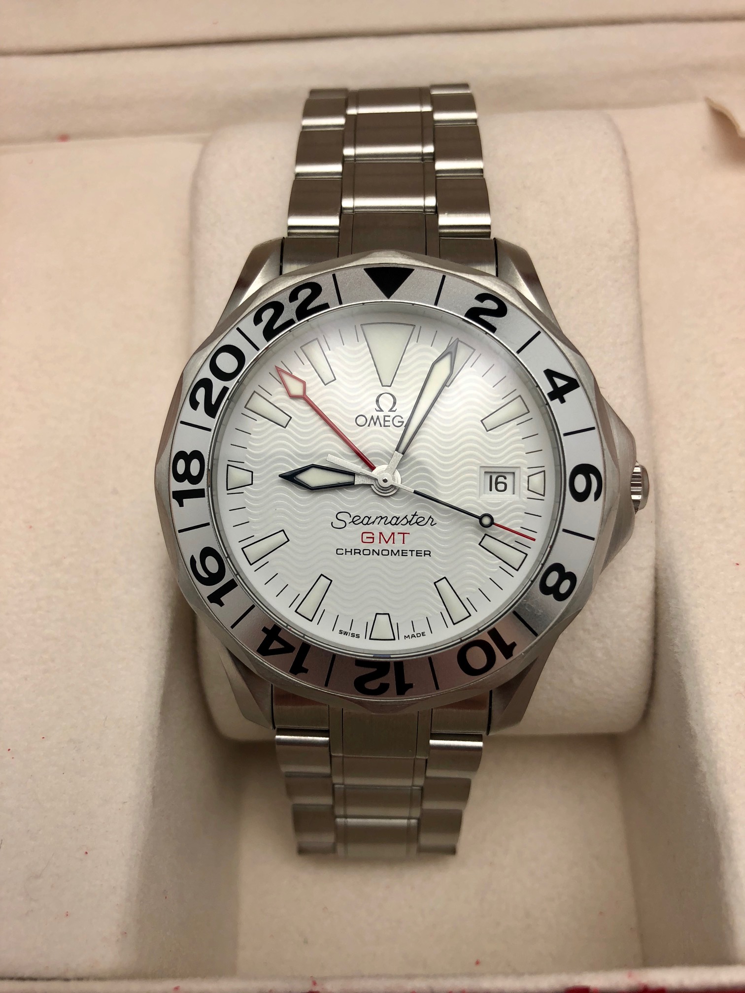 I have an Omega Seamaster Professional 2538.20 for sale. This is the white GMT version of the popular sword hand series. Also known as the “Great White”. Runs great and all functions tested. See pictures for condition (click on them for higher quality). Super sharp case