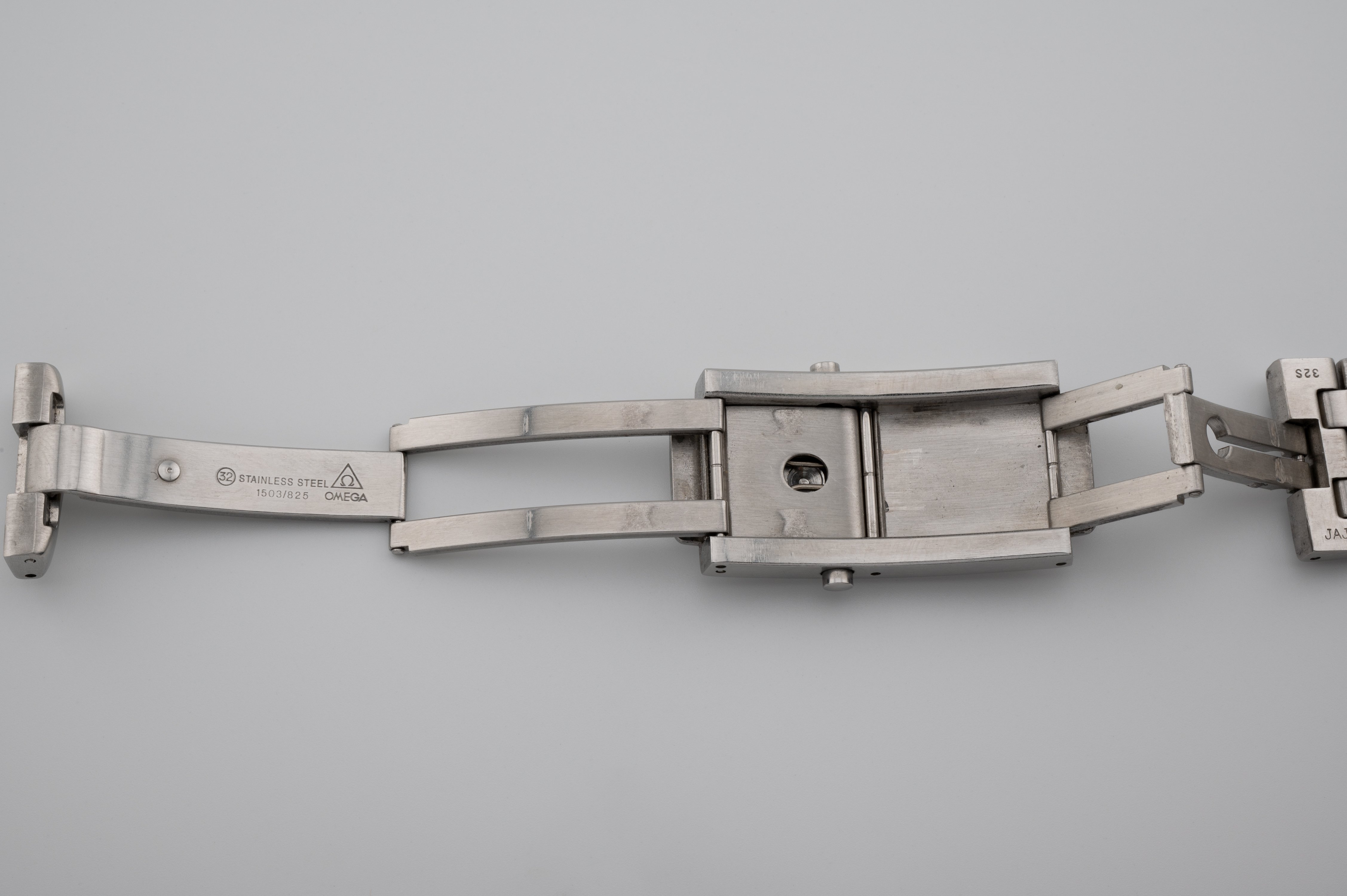 The "top" side of the bracelet has 4 full links and 1 half link. The "bottom" side has 6 full links and 1 half link. That's not taking into account the special links that connect to the clasp. Seeing listings in mint or nos condition, they usually have 5 full links and 1 half link on the "top" side and 6 full links and 1 half link on the "bottom" side. I'm no expert, but I believe mine is missing 1 full link.