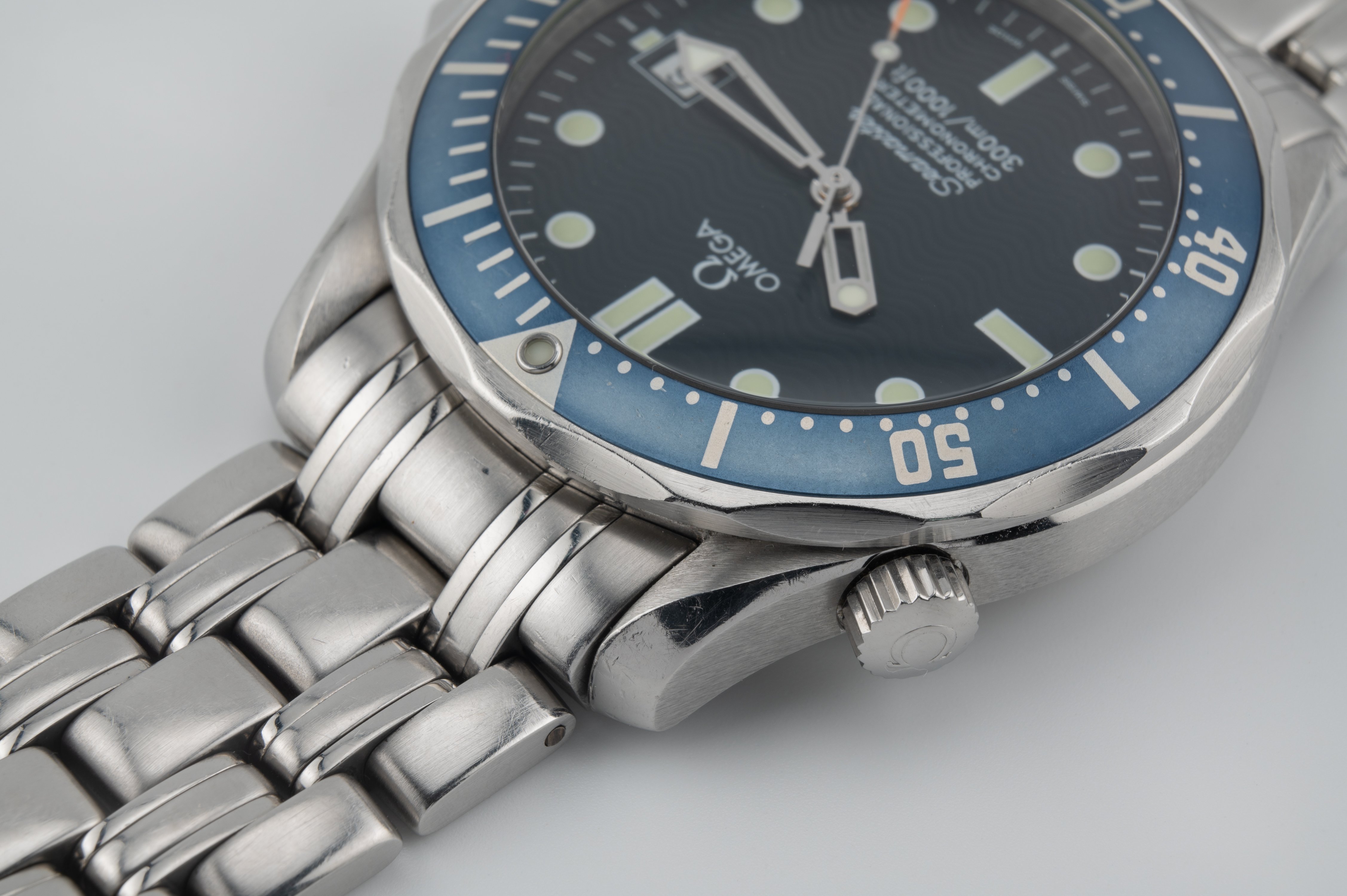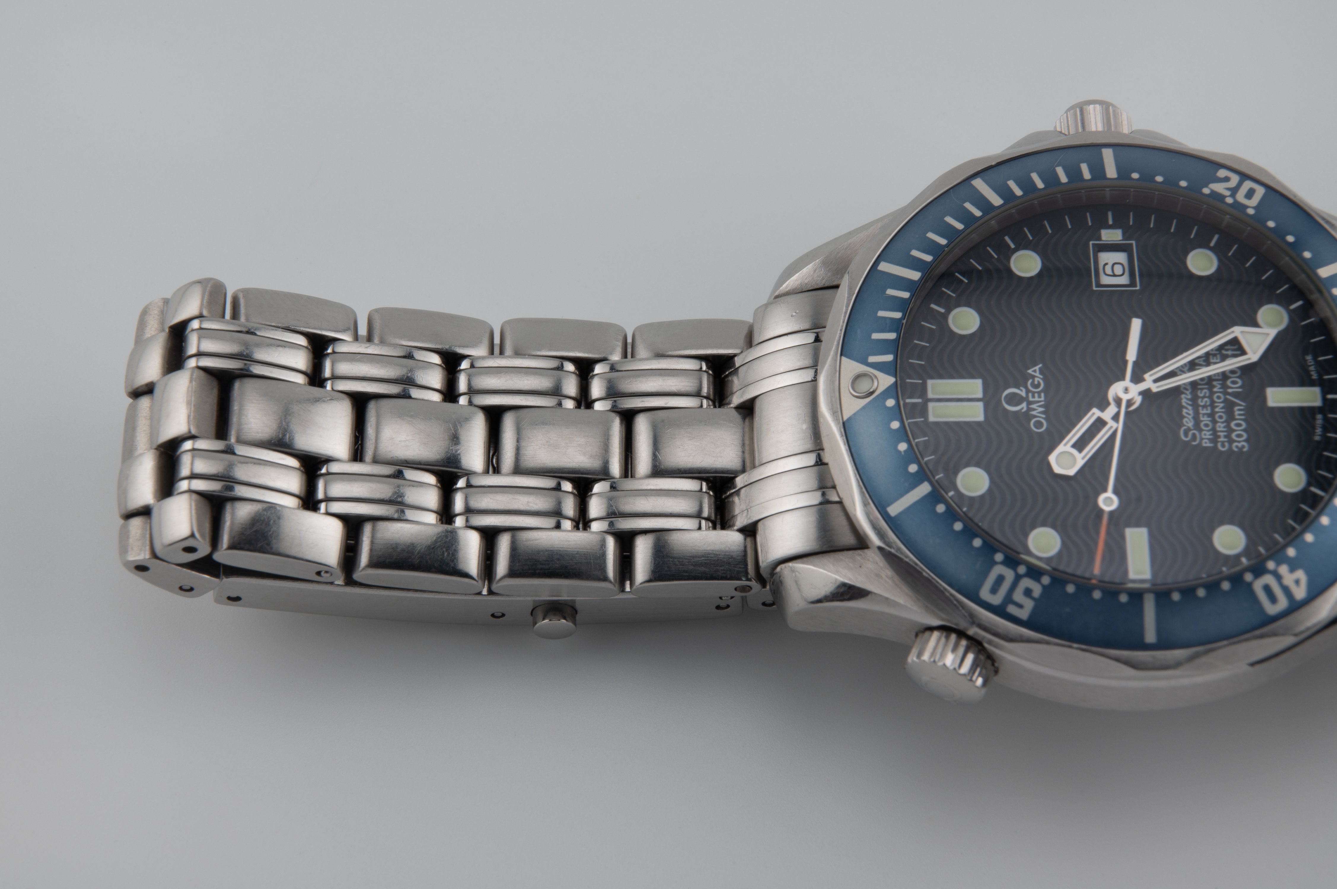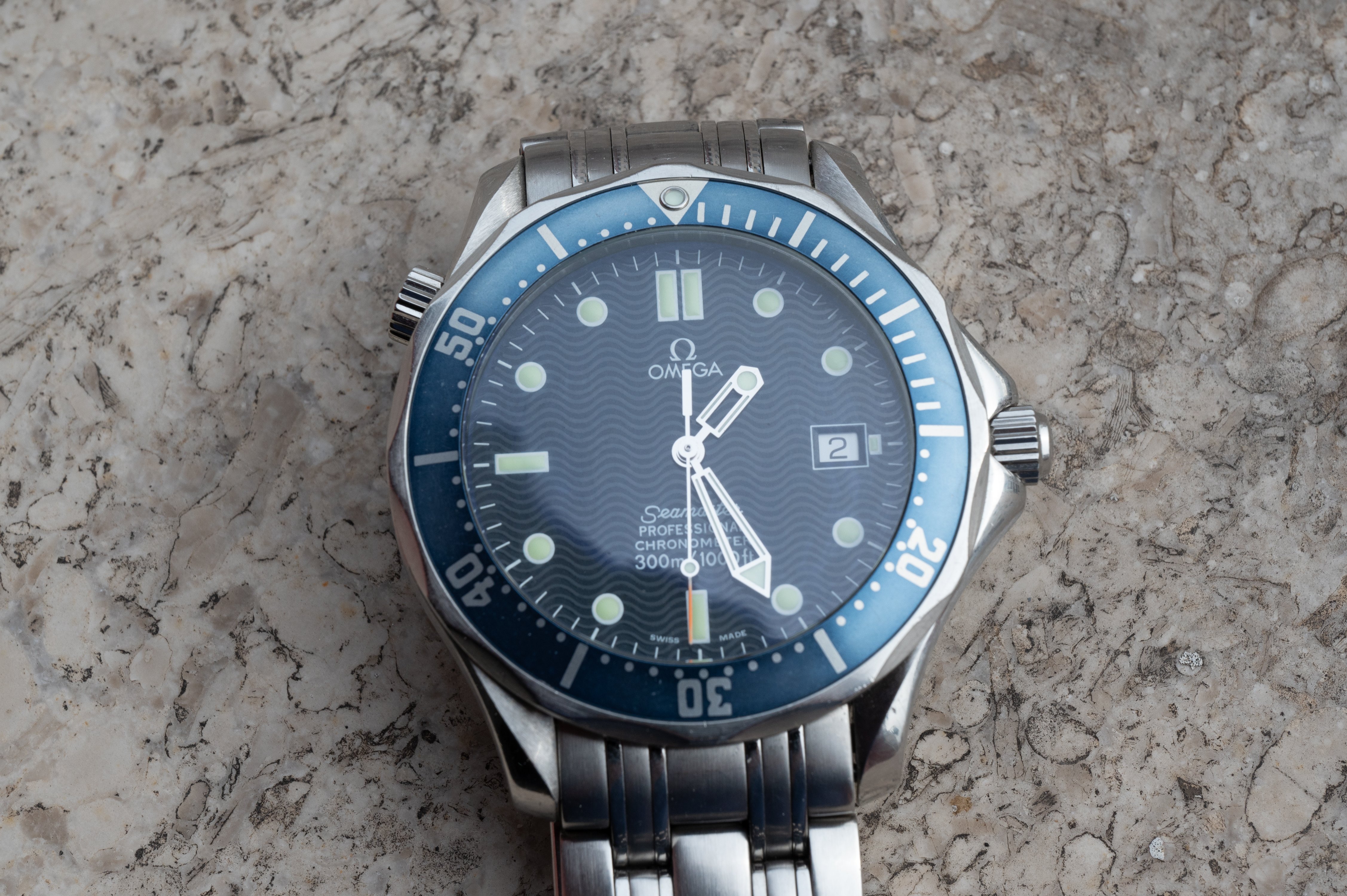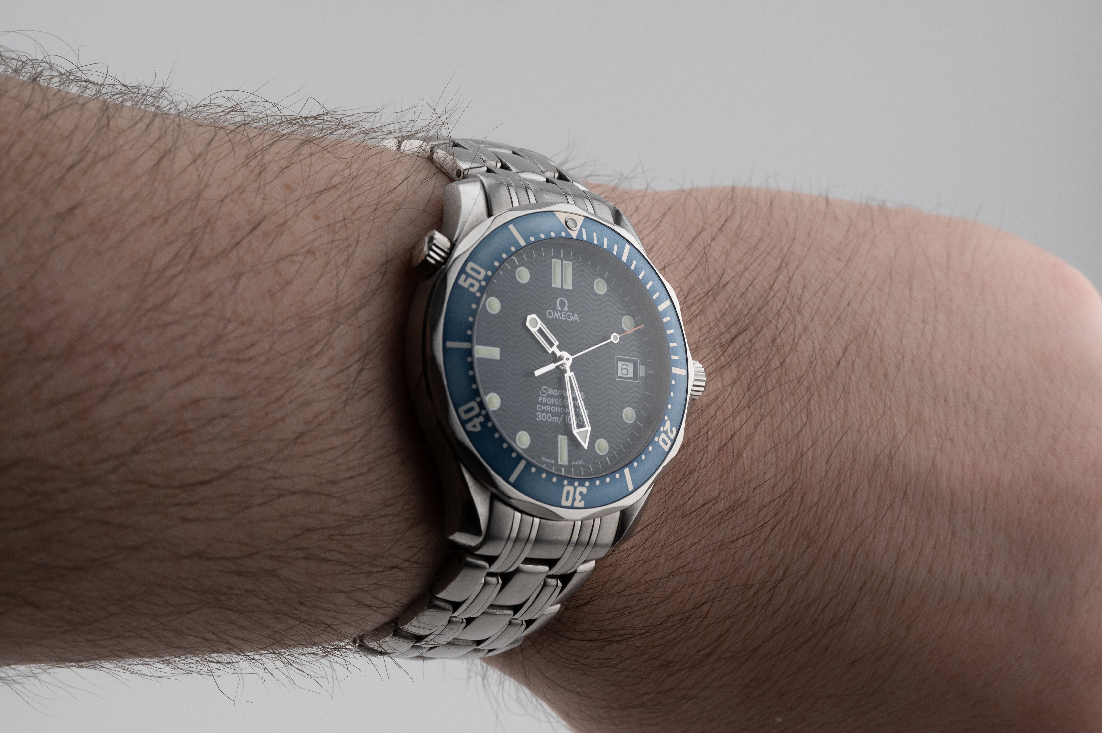 ·I am selling an Omega Seamaster Professional, reference 2531.80, with the matching 1503/825 bracelet. This is the same reference that Pierce Brosnan wore on both "Tomorrow Never Dies" and "The World is Not Enough". I believe, but don't quote me on it, that it was the tritium version for the former, and the superluminova (like the one I have) in the latter. As classic a Seamaster as it can be.