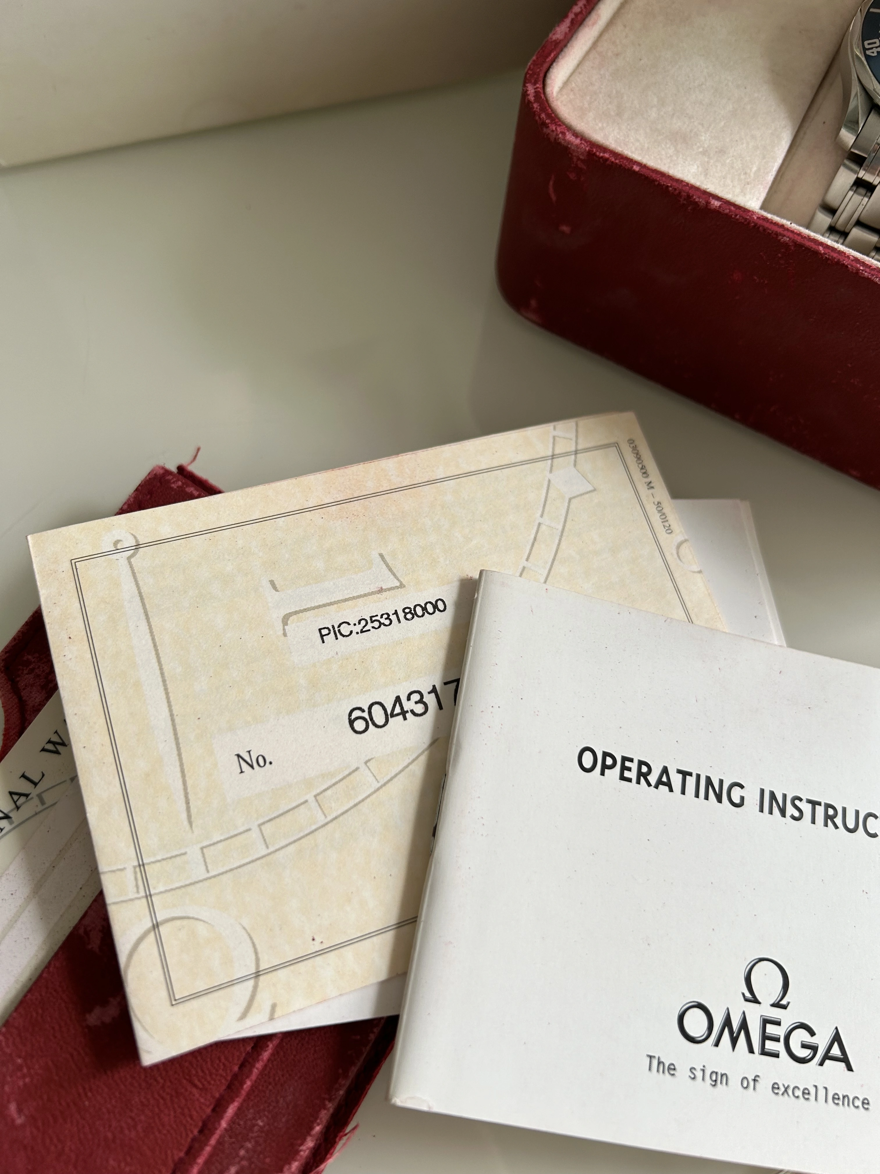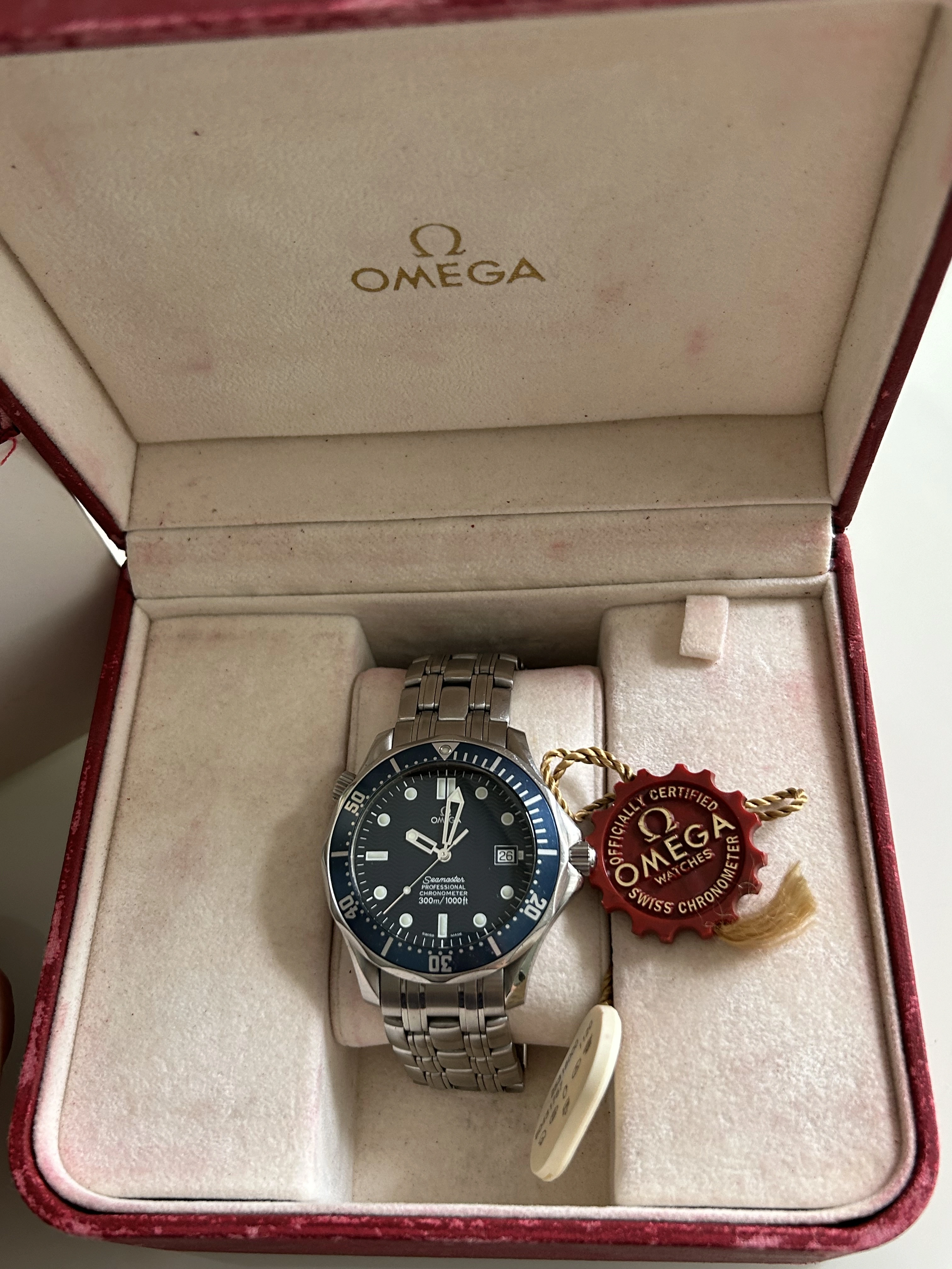 The watch comes with everything you seen on the photos (inner & outer box , papers, unstamped warranty card, hang tag & chronometer certificate with matching numbers, and of course the watch itself). In my possession since 2022, I only occasionally wore it. It has been purchased from a big watch dealer, I can provide the invoice from that purchase if there is the wish to.