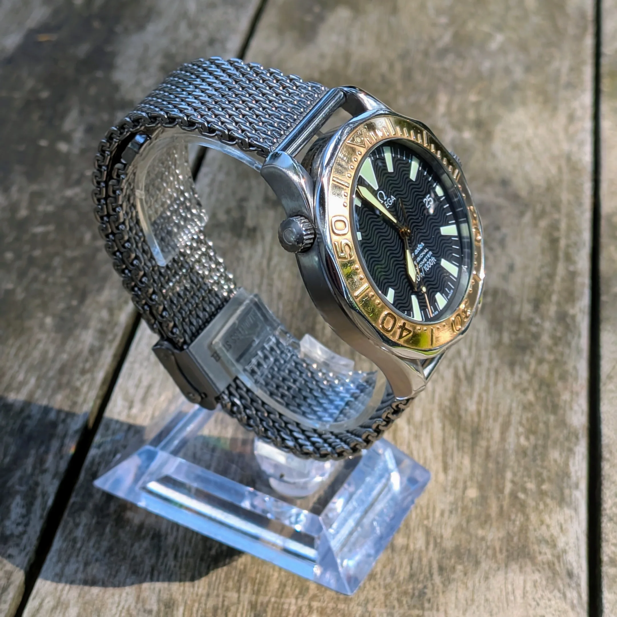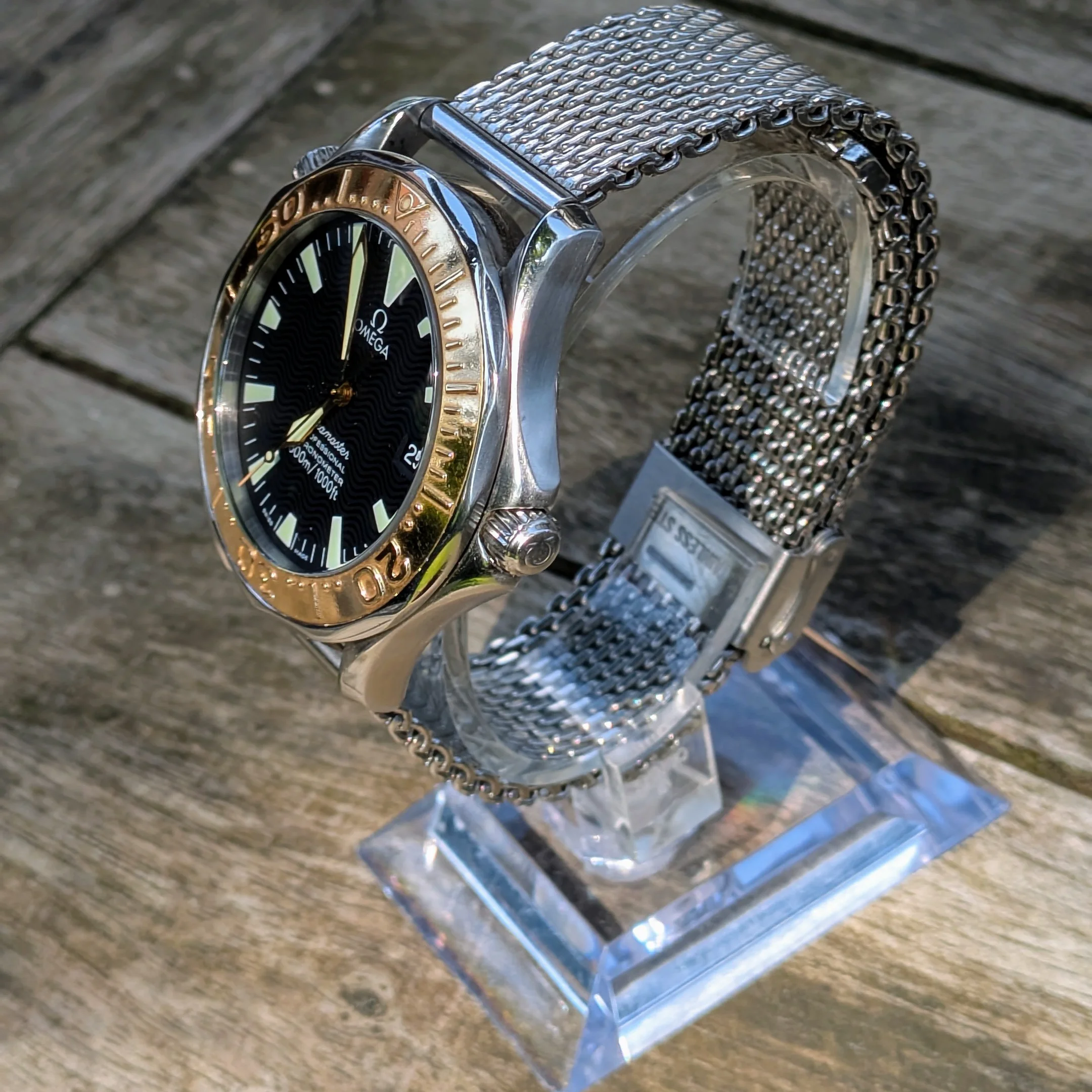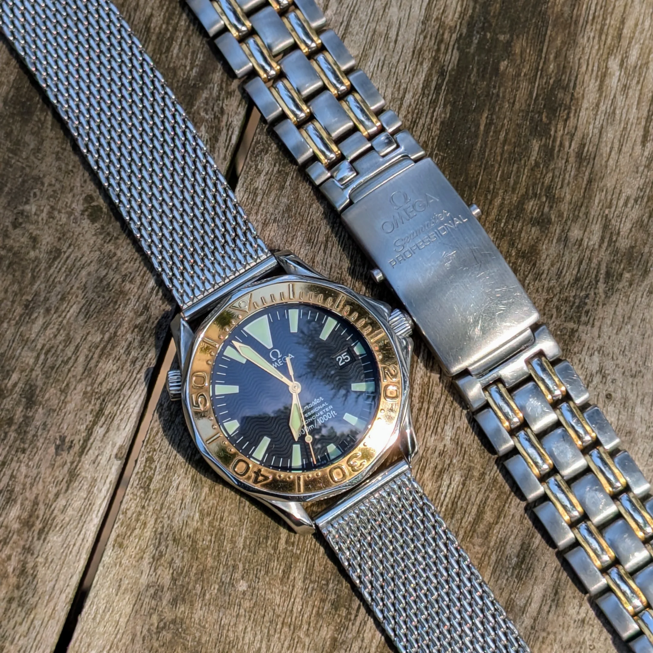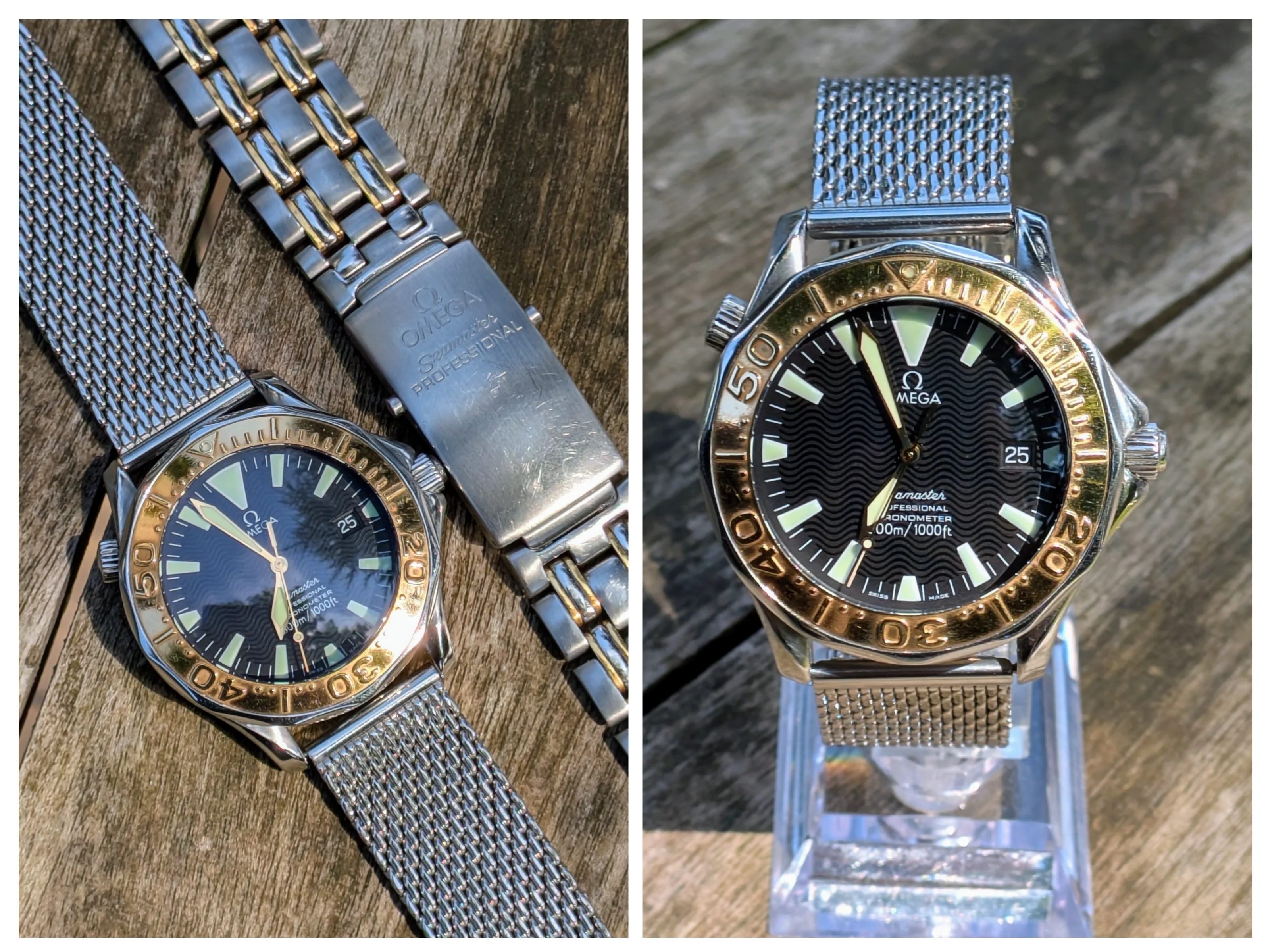 I let go from the collection a Steel/Gold Seamaster diver. It is the large (41mm) Automatic Version which is not that often on the market. It comes with it's S/G bracelet and original Box (No papers).