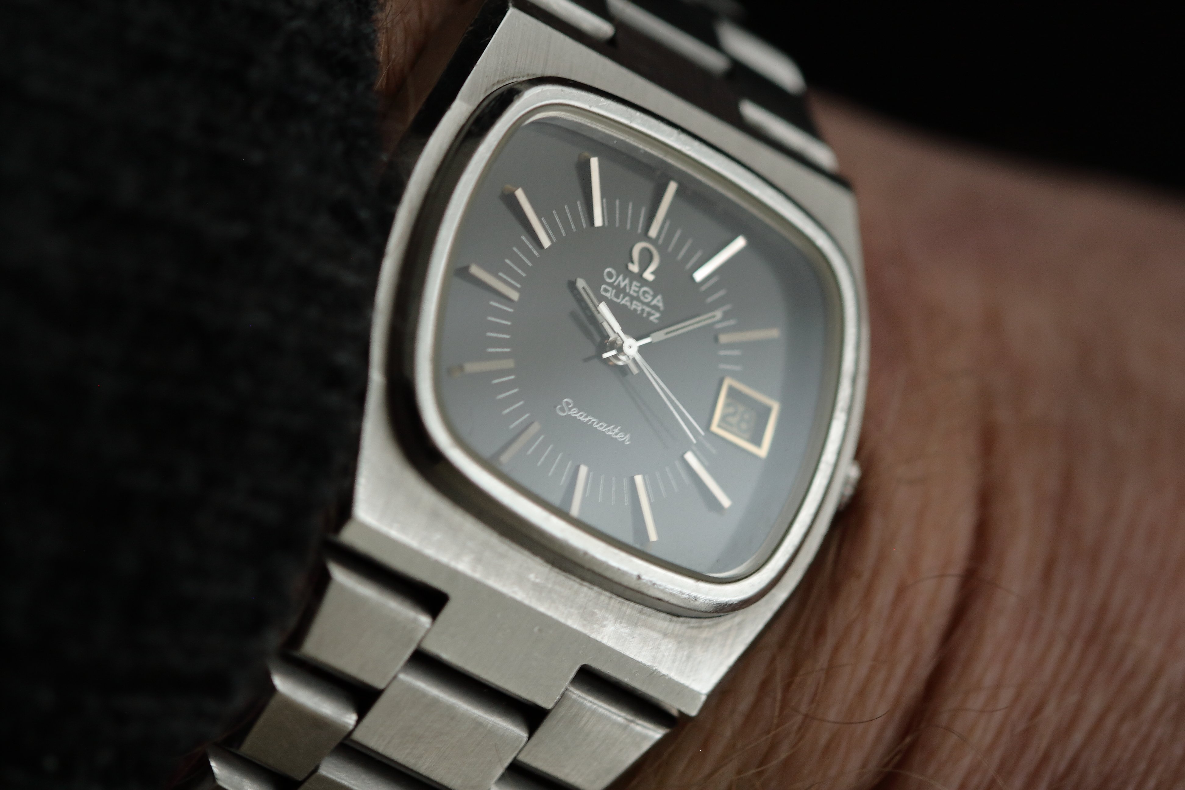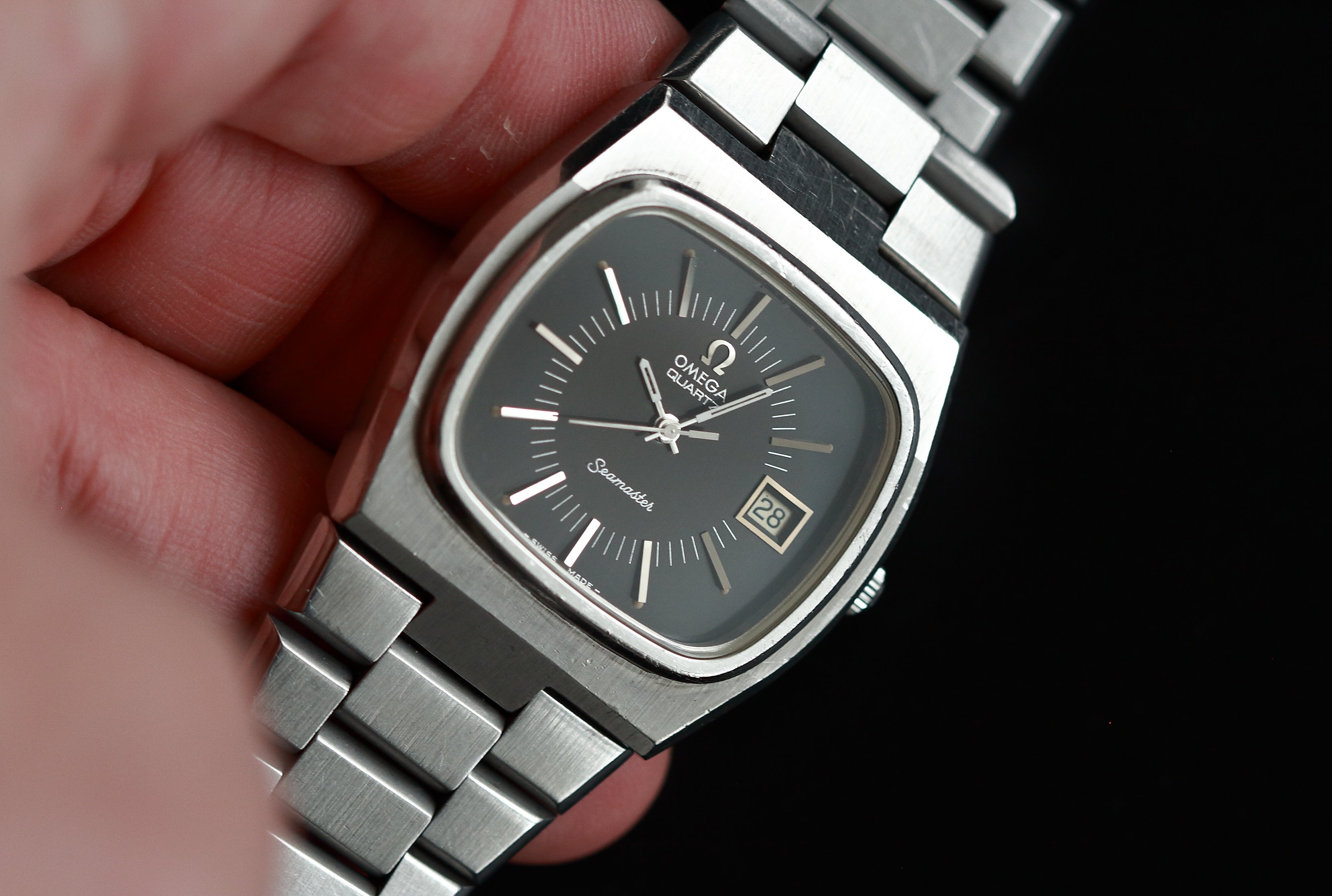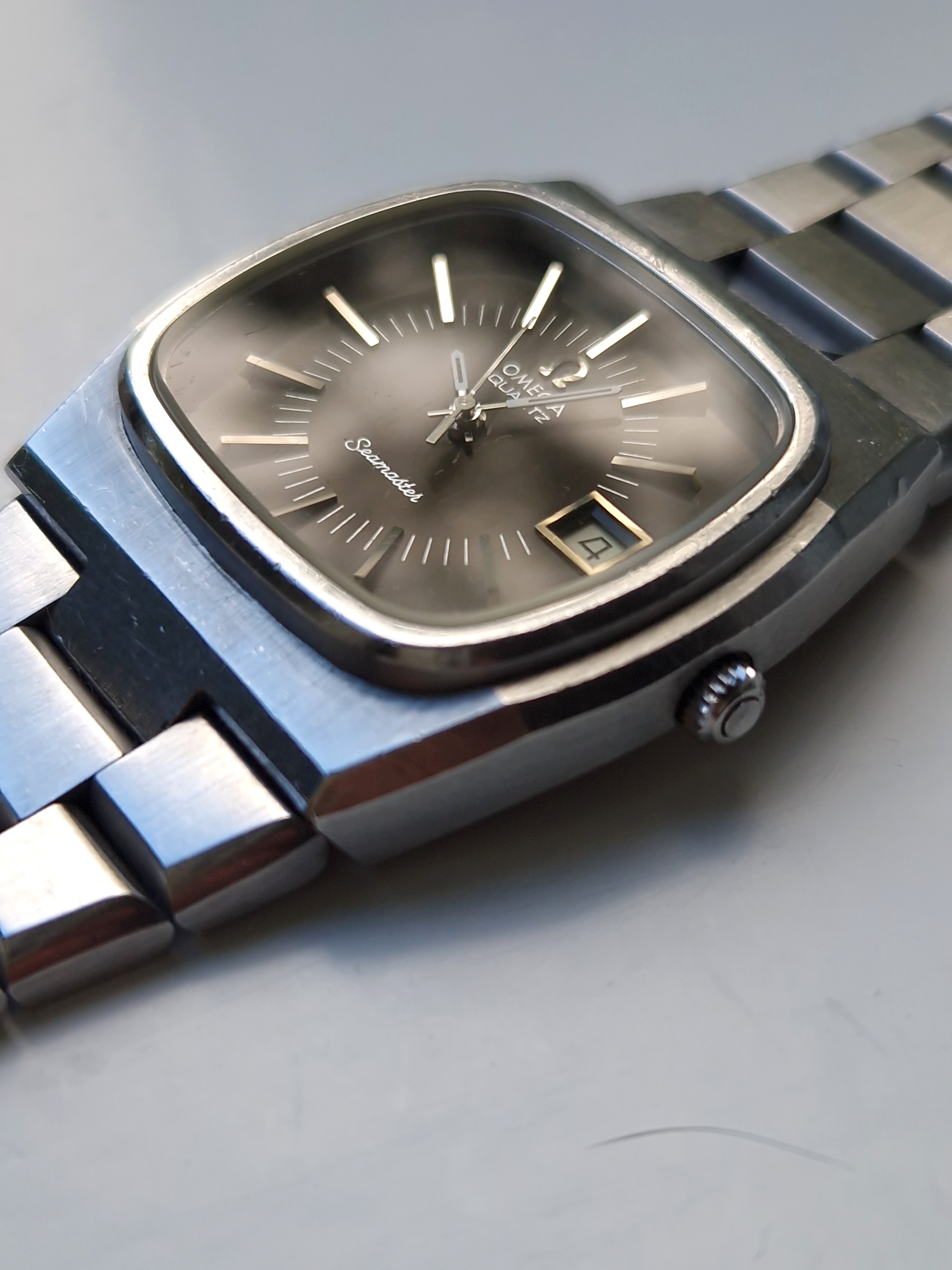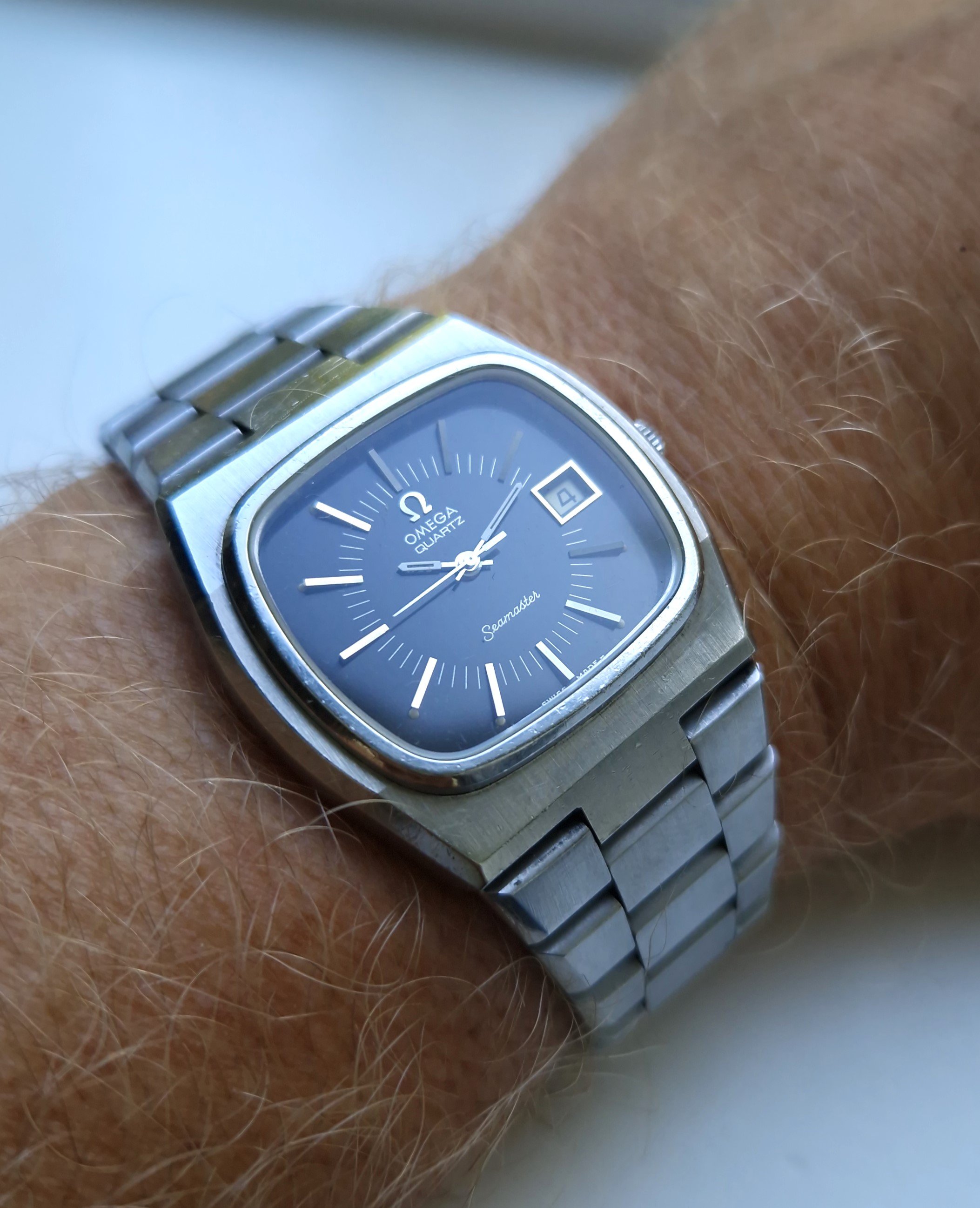 ·Today I’m selling this very cool 1970’s Omega Seamaster Quartz ref 196.0090 with TV dial and integrated bracelet. These are one of my favourites from this period with a very strong design ethic featuring a heavily faceted case, glossy dial and integrated bracelet. The difficulty with these is finding one with a good dial and which still has a presentable case.