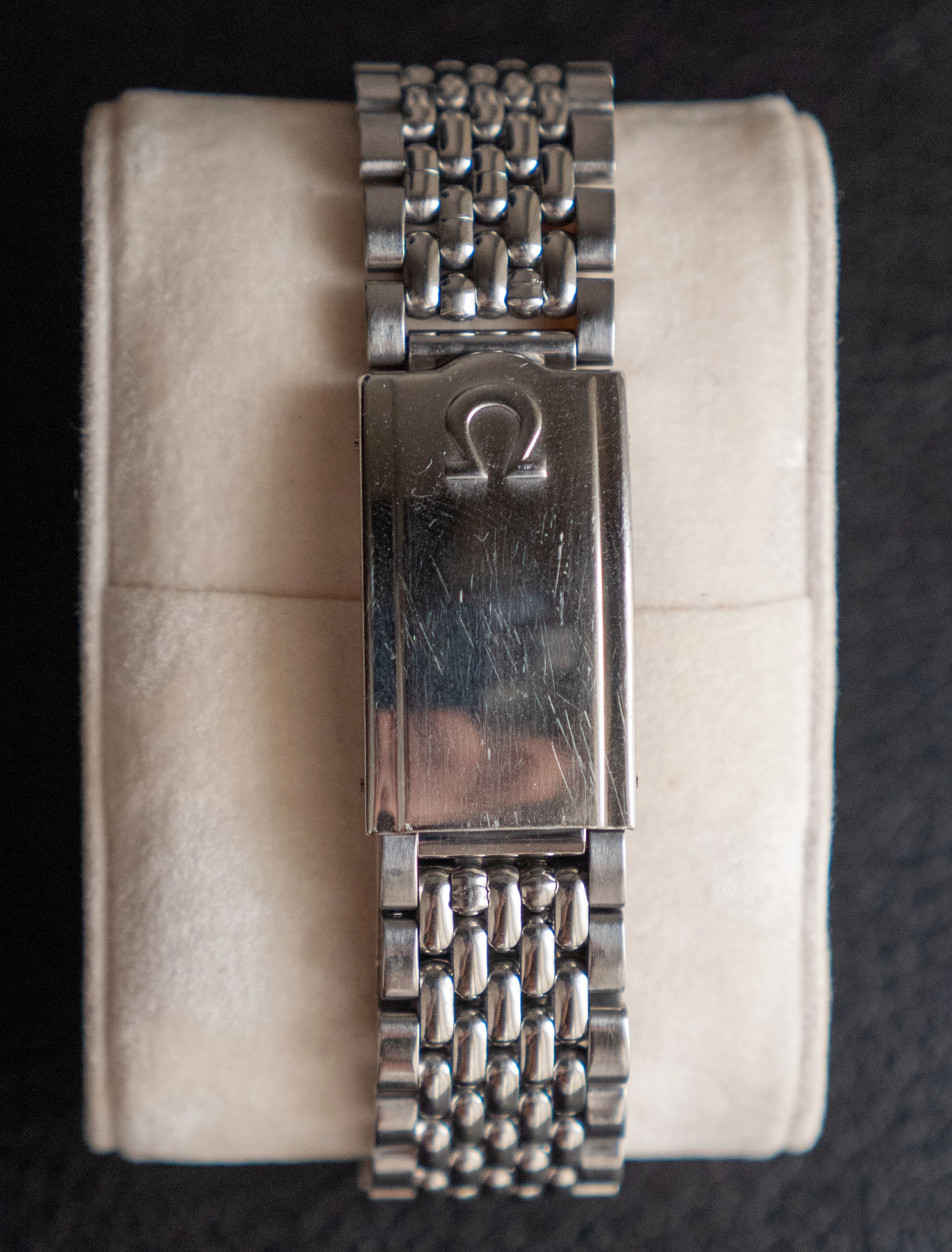 - The watch comes on a beads of rice omega bracelet : it is relatively small as it can fit a wrist up to 17,5cm of circumference maximum.