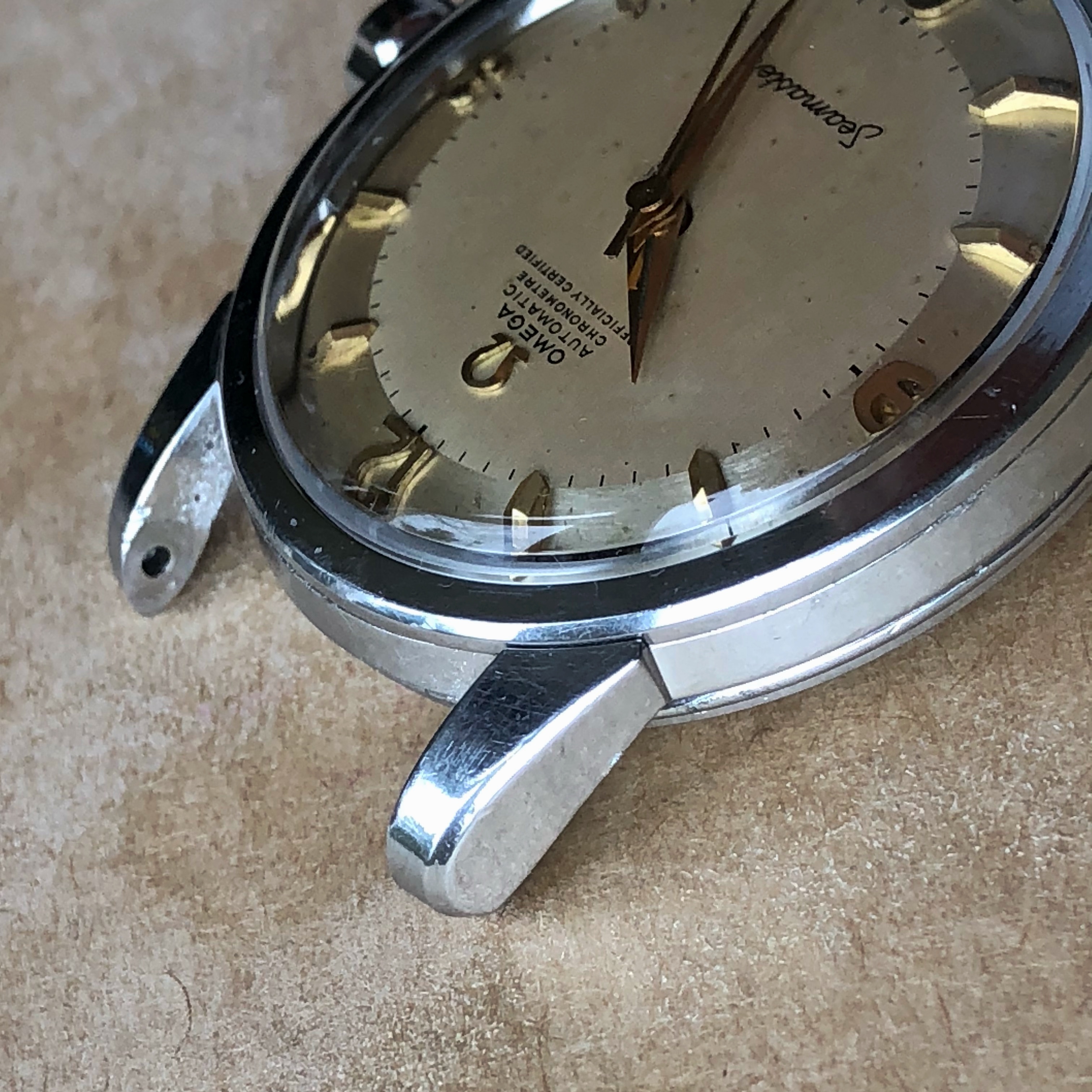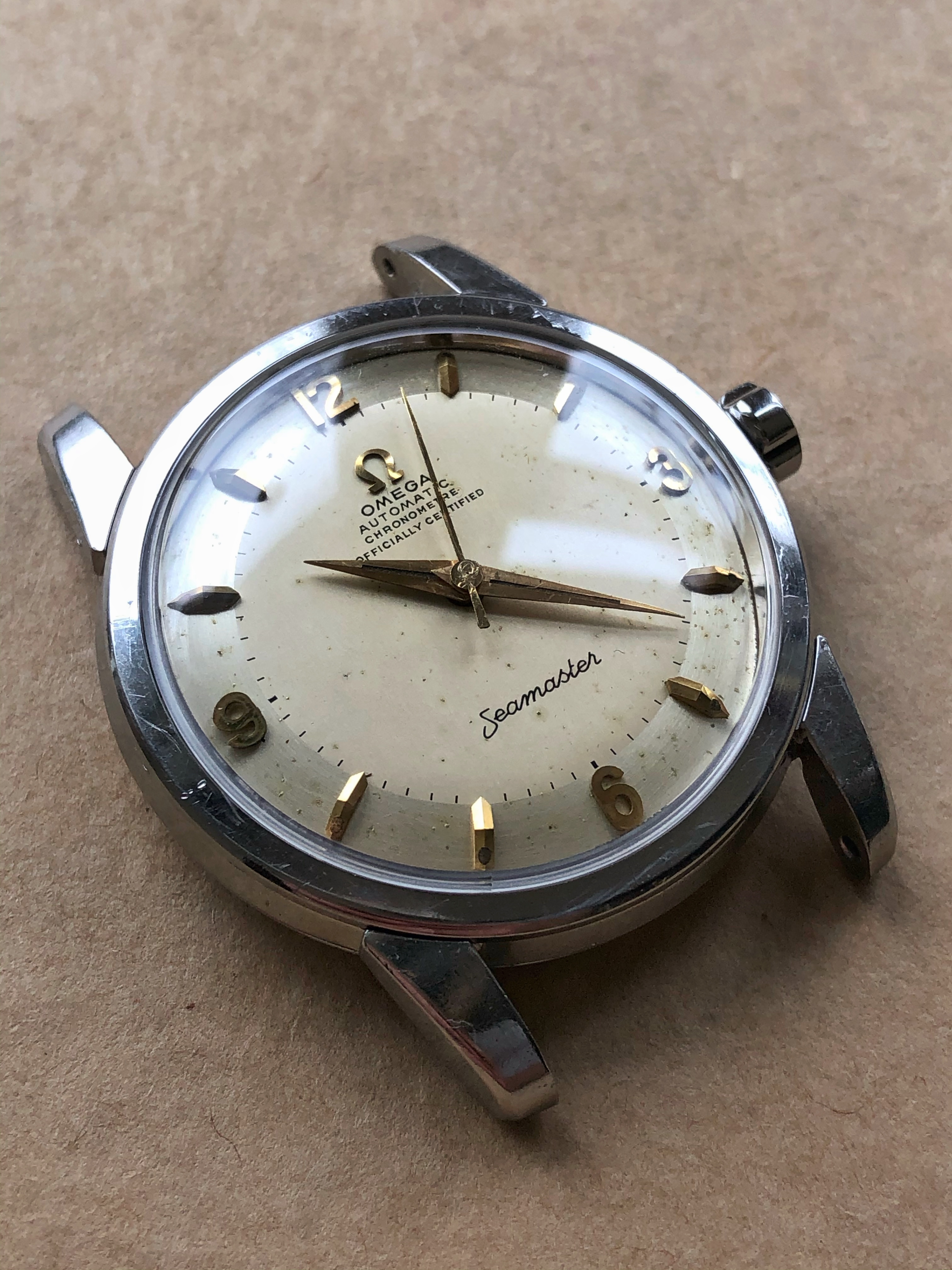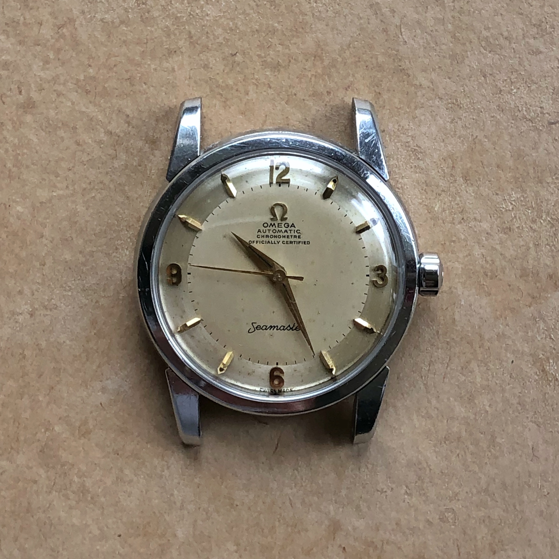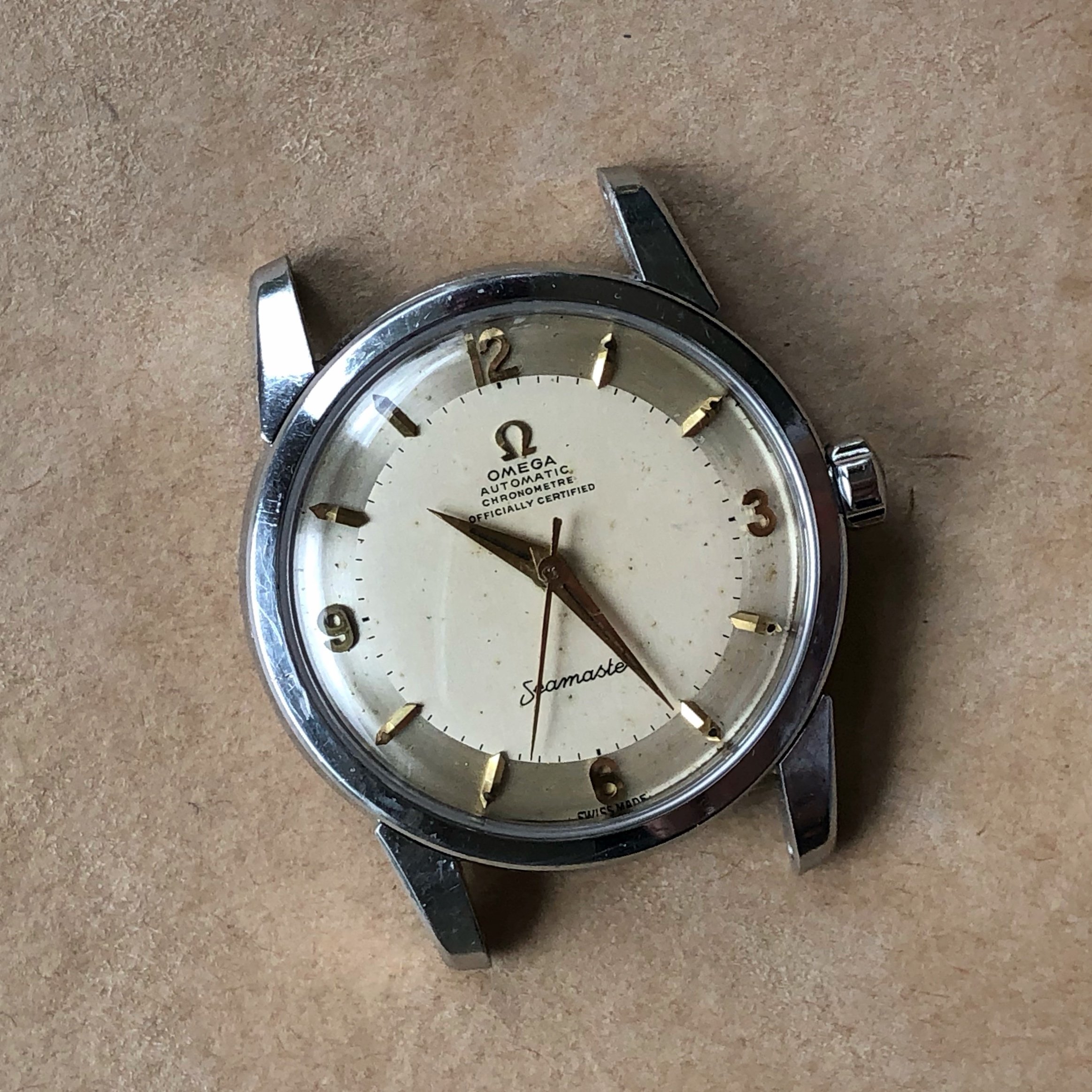 Hands/Crystal/Crown: Original gold hands. New OEM Omega crystal and crown.
