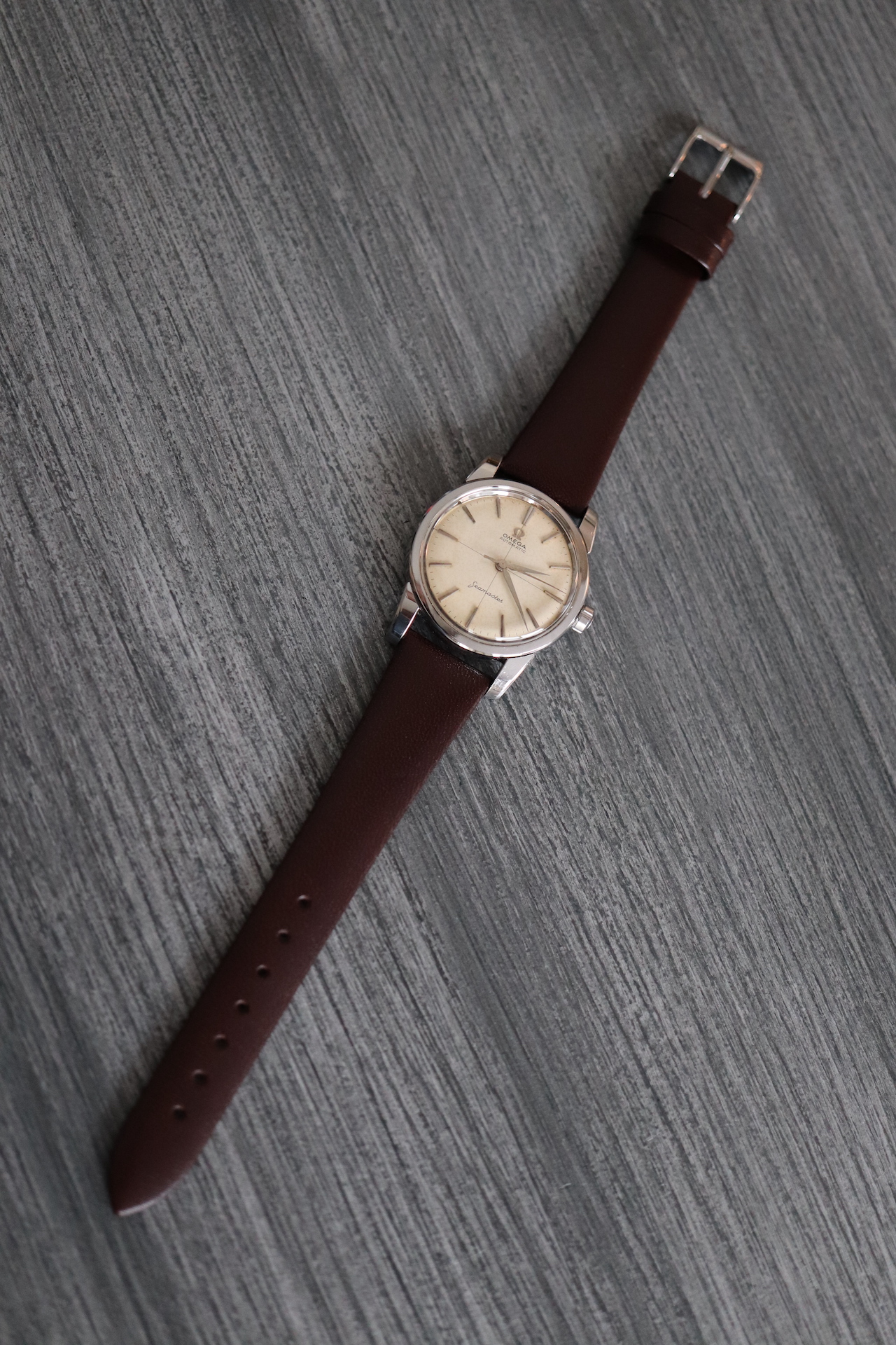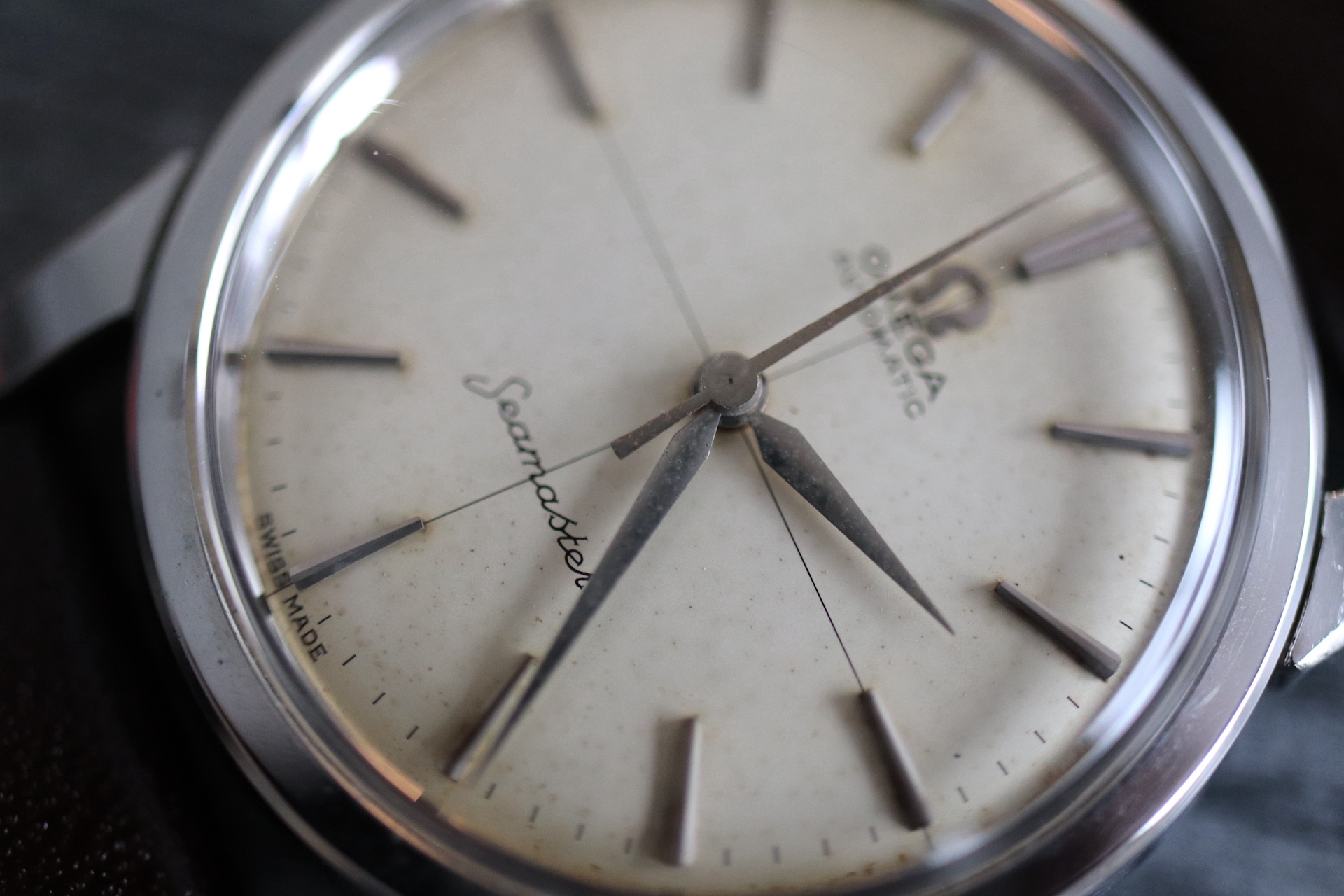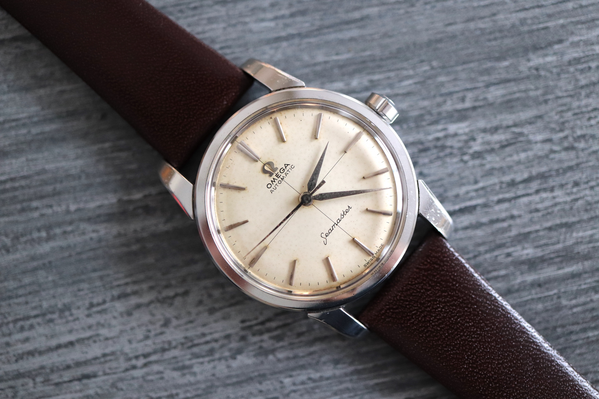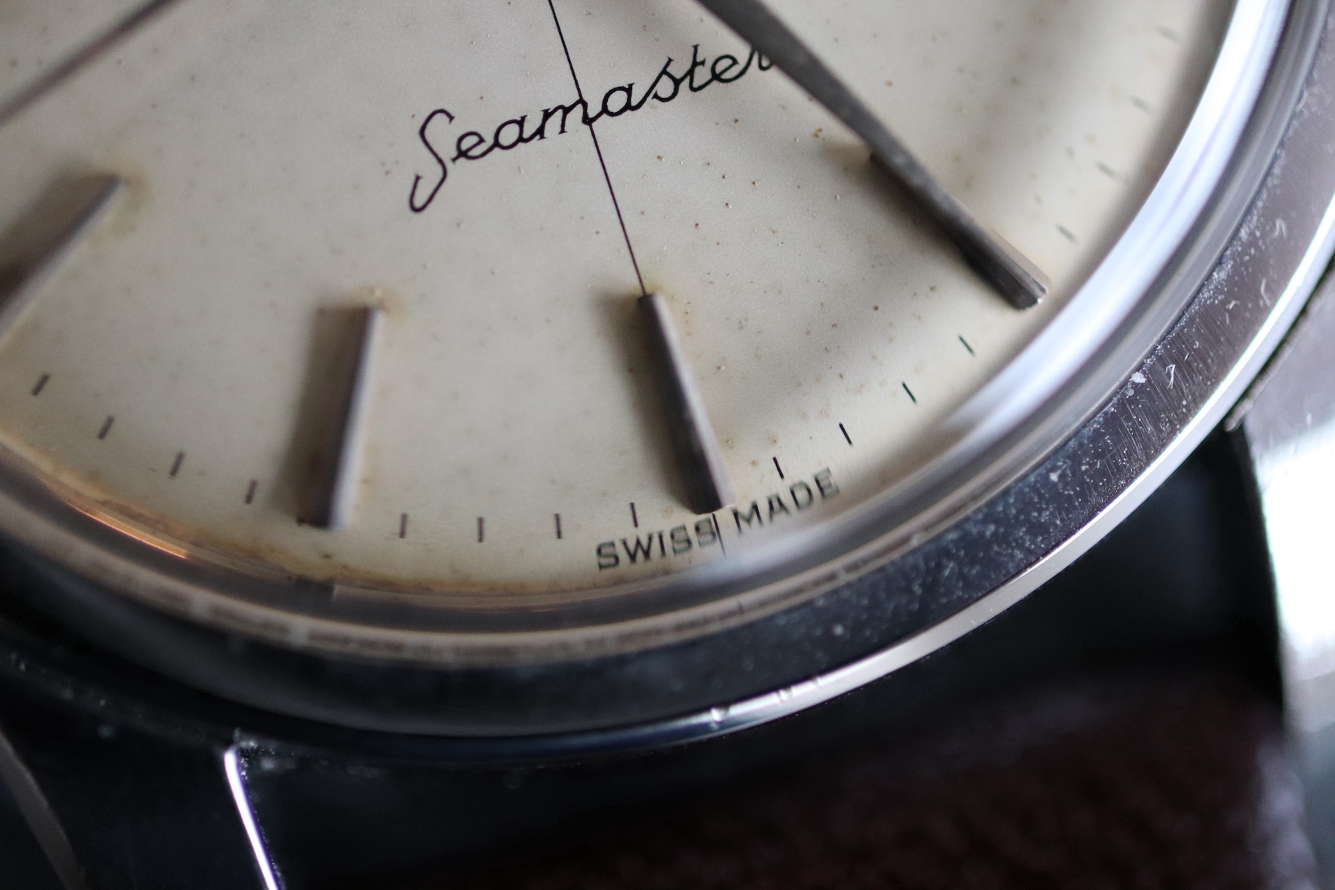 ·For sale, I have an Omega Seamaster Ref # 2856 15 SC. It has the Caliber 501 which is an automatic movement. Serial number would suggest the watch is from 1958 to 1959. Case measures 34 mm. Watch was serviced in June 2019 and comes with documentation including pictures of the work that was done. Mainspring and crystal been replaced and a crack on the bezel been laser welded. Watch will come with a new brown leather strap. The movement photo provided is Pre service.