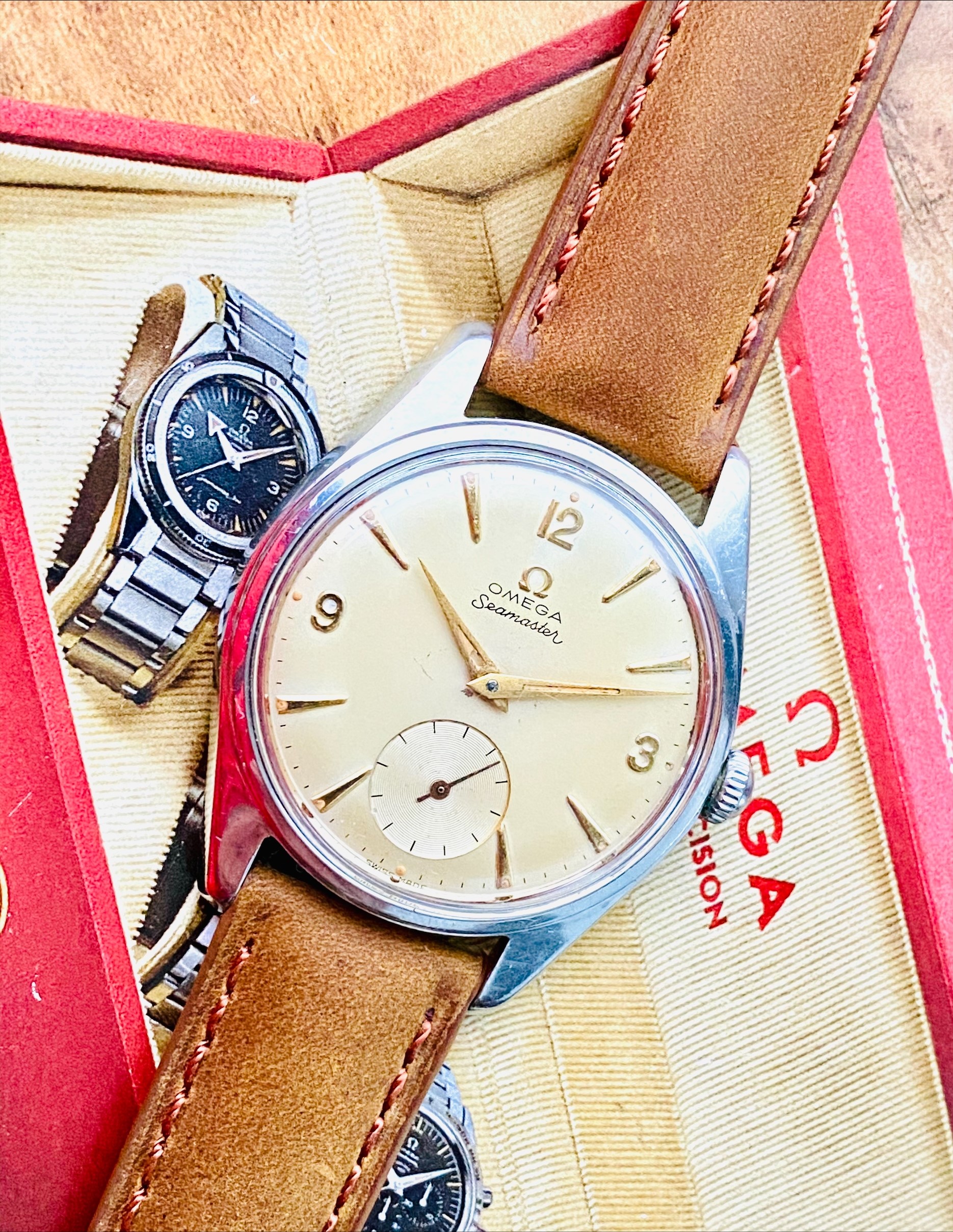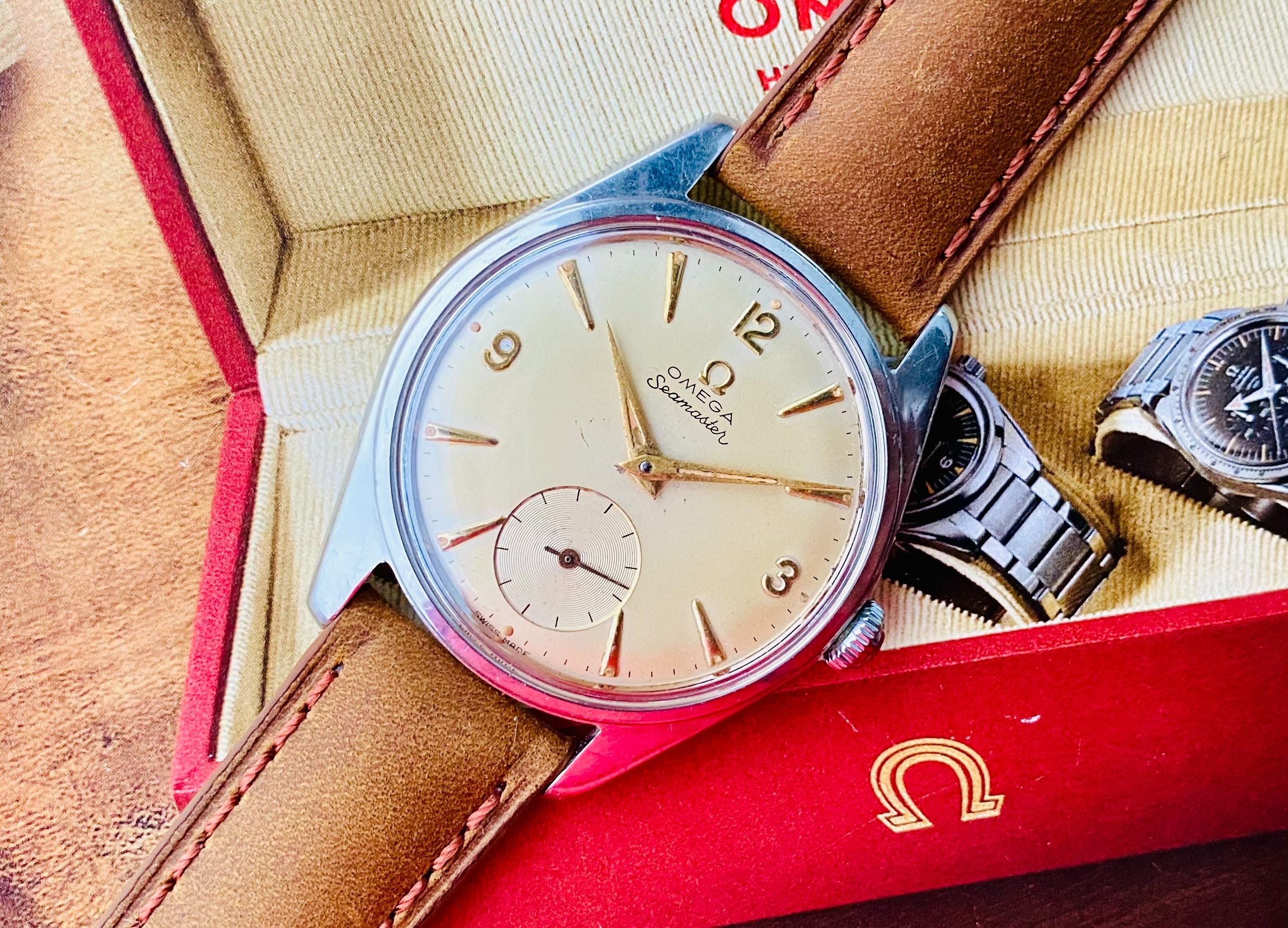 Usually watches that have reference 2990-1 are branded as Ranchero’s and were for export markets such as North America. However, this example has a Seamaster dial and was exclusively manufactured for the Swedish market. It was thought by Omega that the name ‘Ranchero’ would not go down well with the Swedish customers so the dial was exchanged with a Seamaster dial and the hands were also altered. The watch has been given the nickname ‘Seachero’, a mix of Seamaster and Ranchero, to relate to its link to the original Ranchero name.