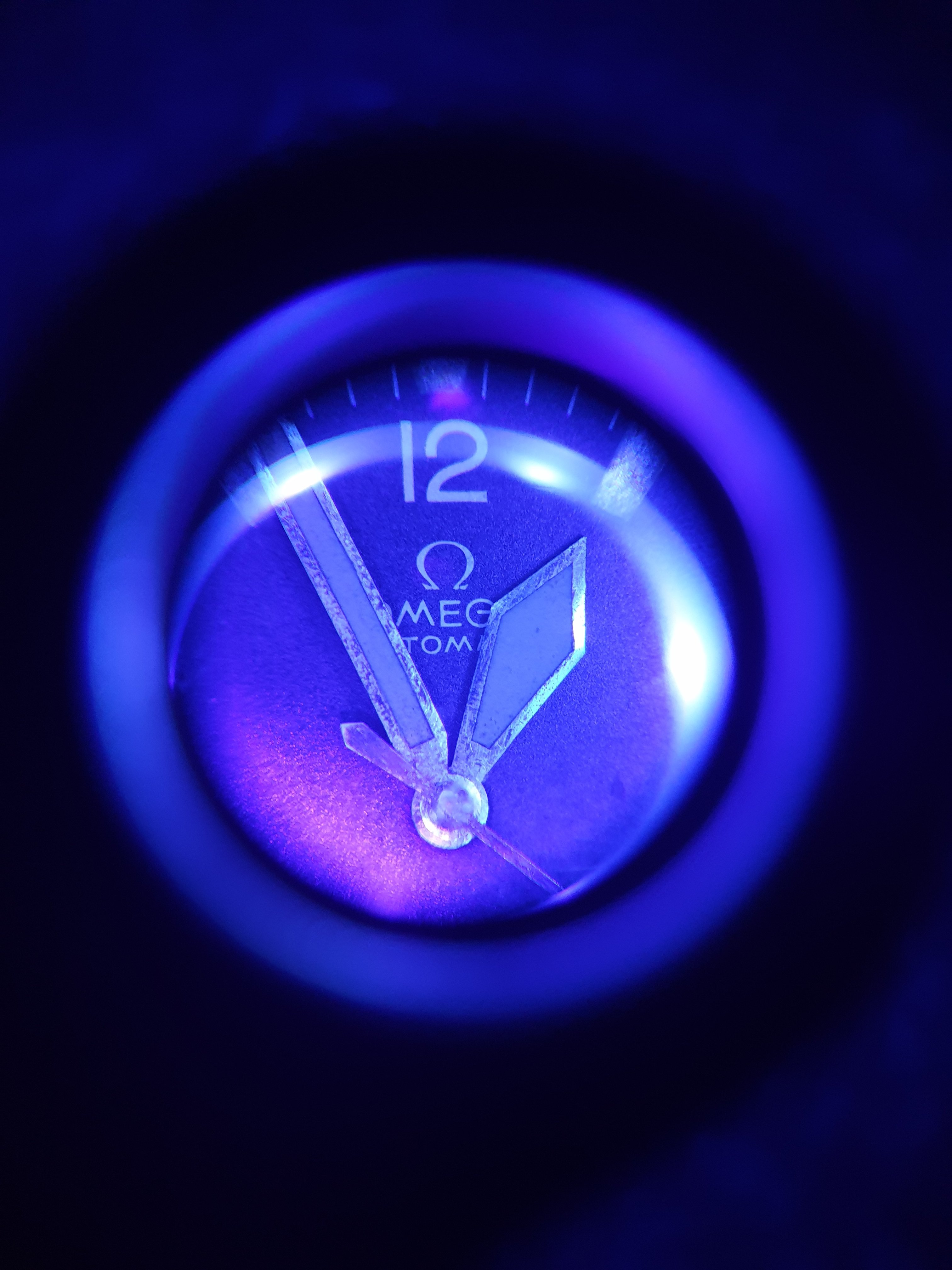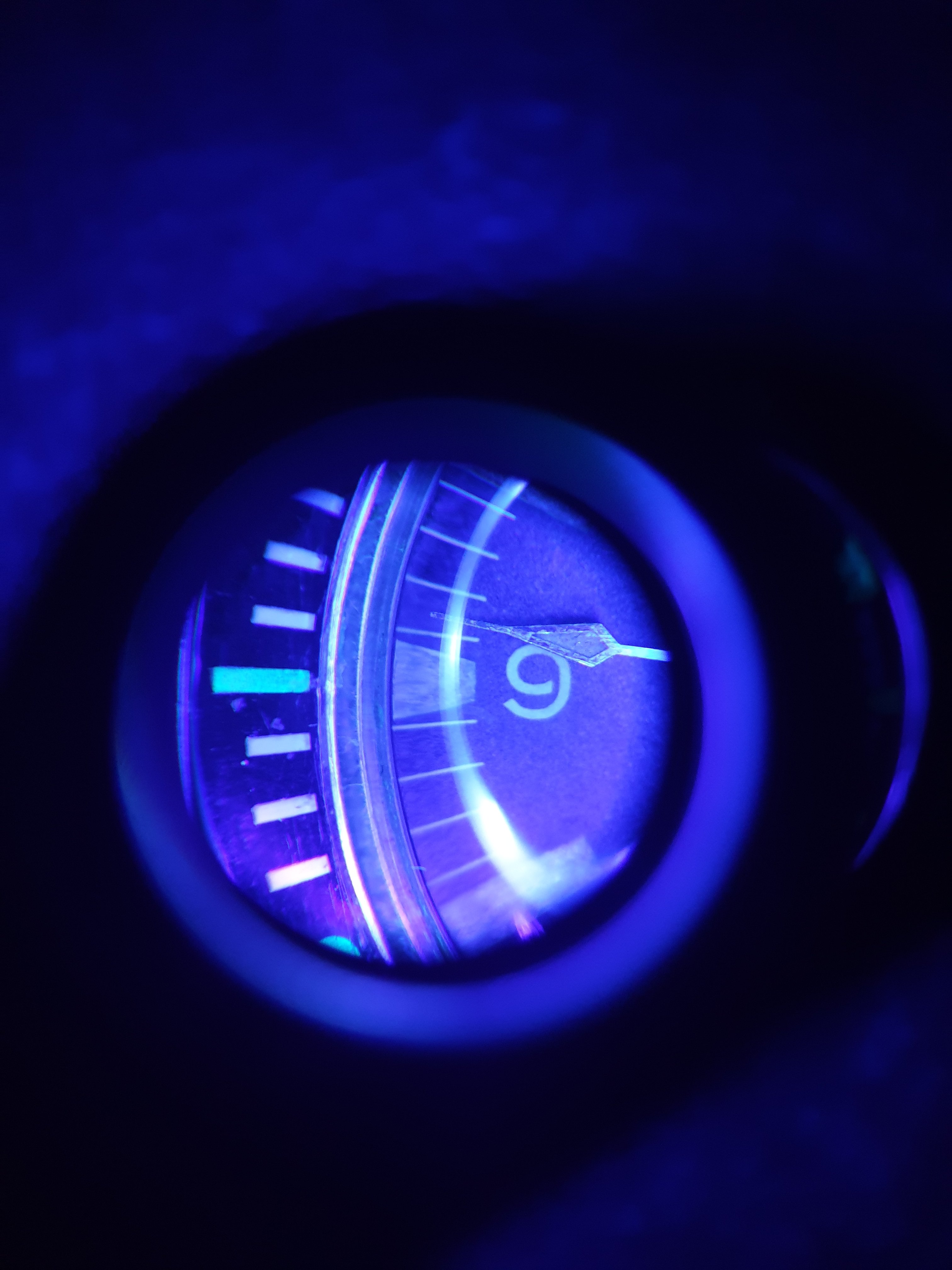 - dial is a small triangle one with white writing, original lume still tritium (no redial/relume)