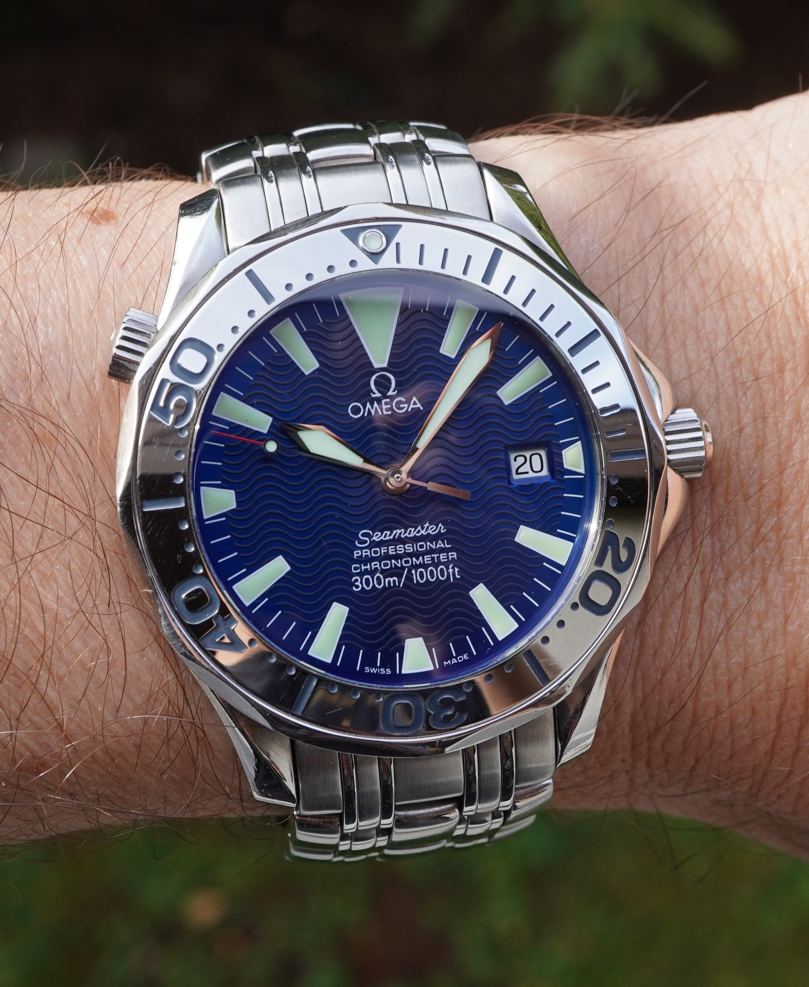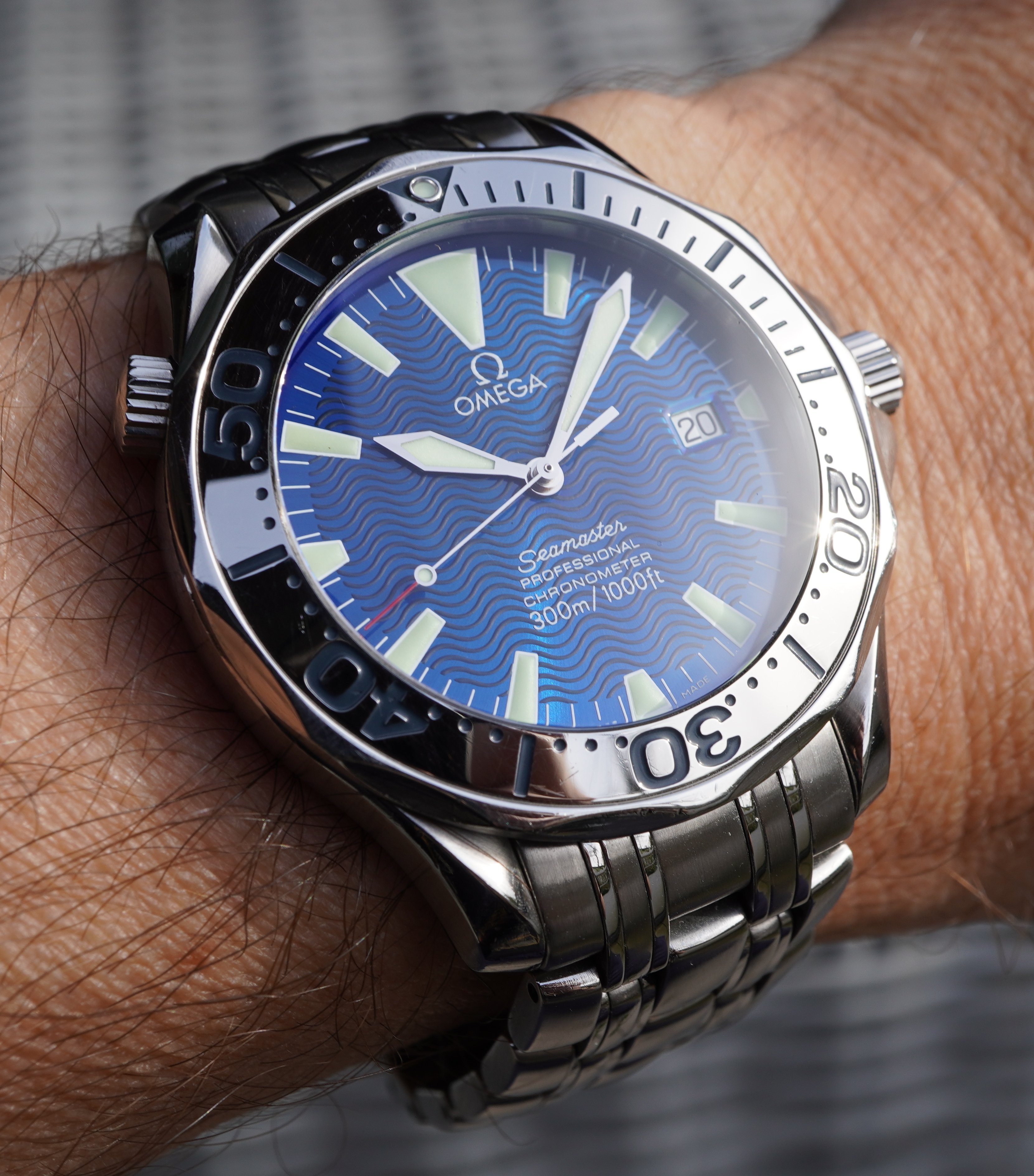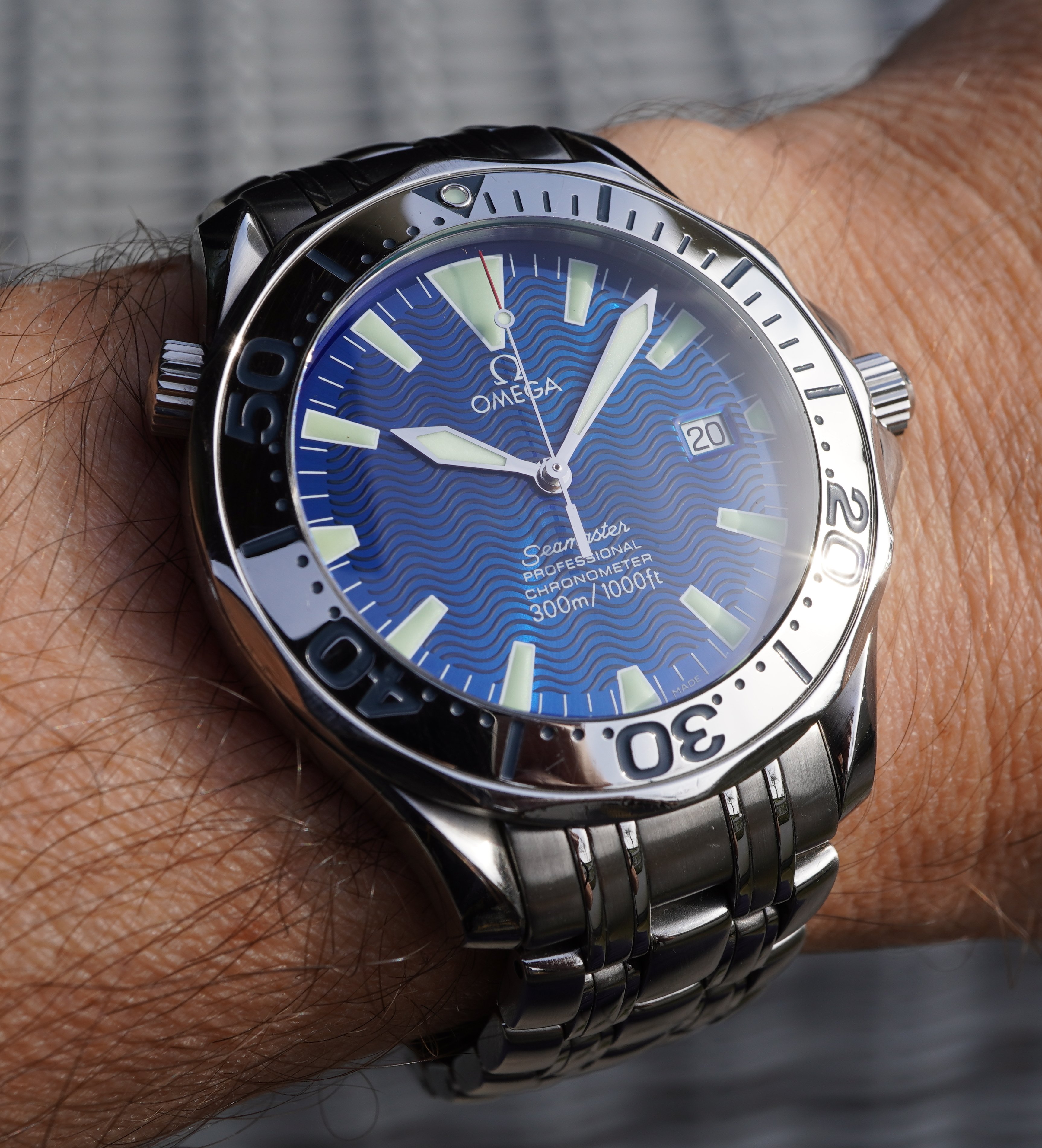 for sale is my Omega SMP 300M Chronometer "Electric Blue", as I have a just added another blue dialed Omega to my collection, so this one has to leave.