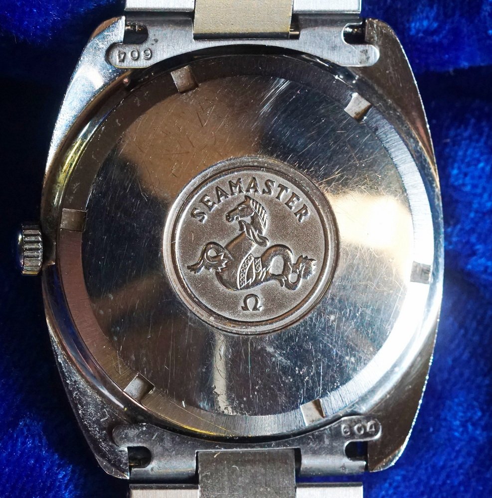 Caseback features: Center medallion with raised Hippocampus, with Seamaster above and the Omega symbol below.