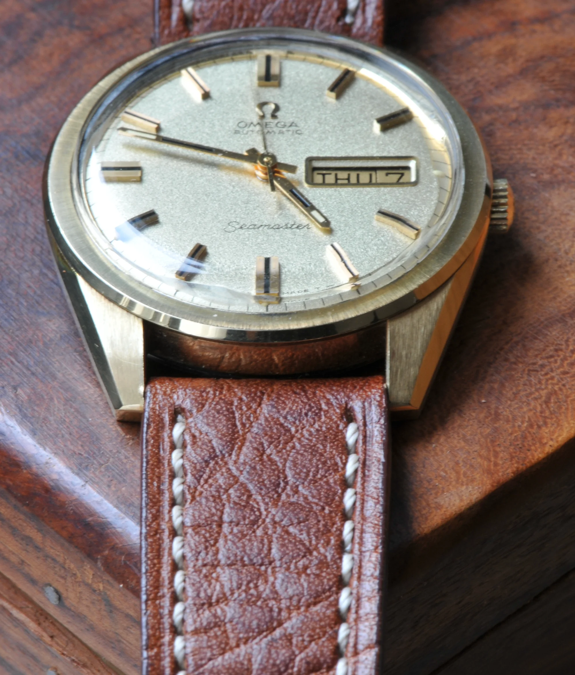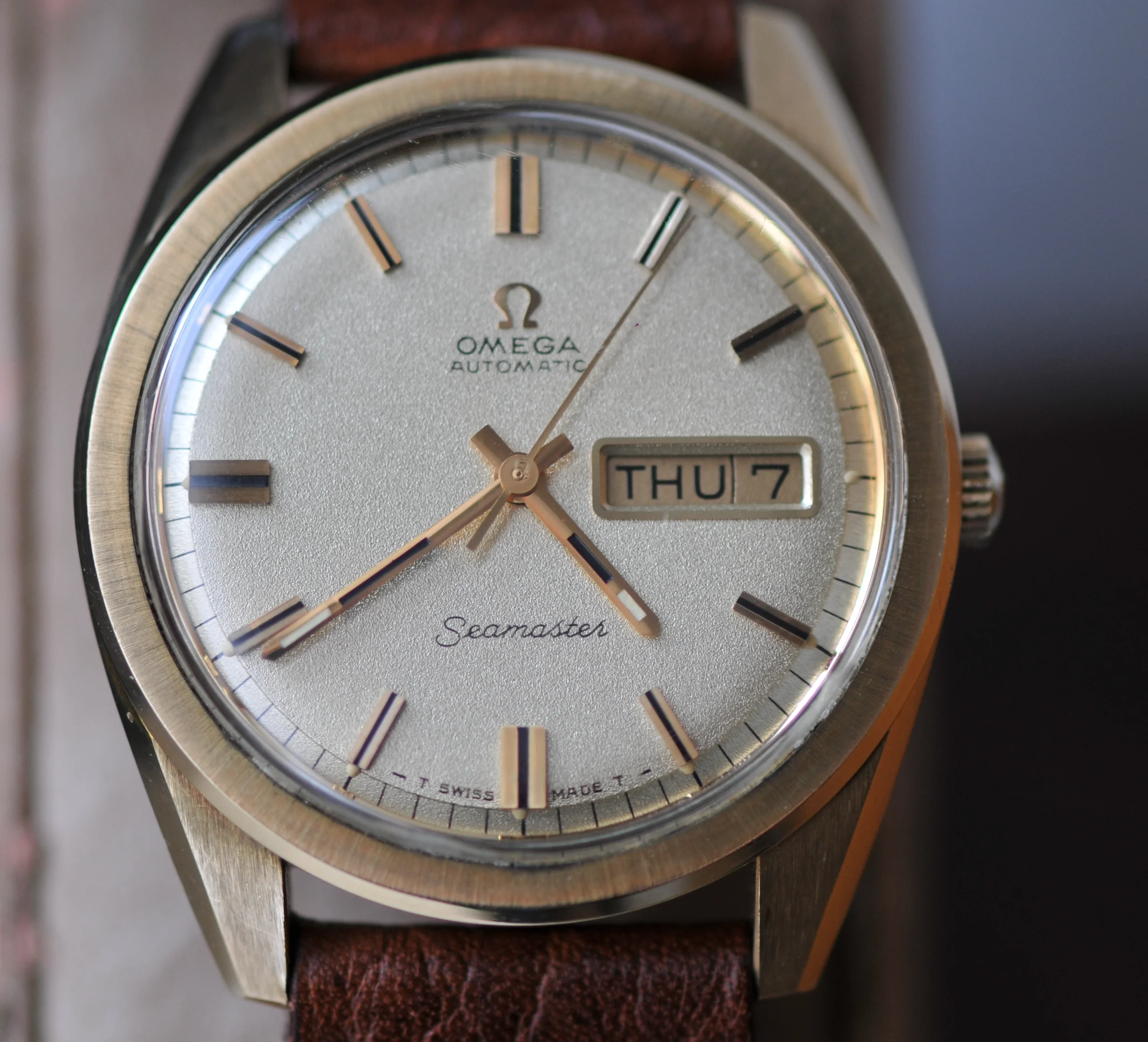 Movement: Omega Automatic Caliber 750 with day-date functions, not serviced while on my possession but all functions work properly and the watch keeps excellent time.
