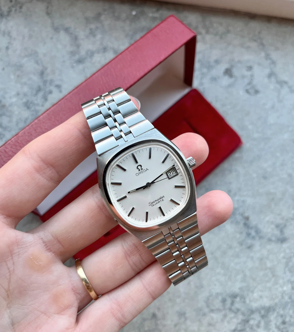 I stumbled upon a beautiful Omega Seamaster with a TV dial, supposedly from the 80s.