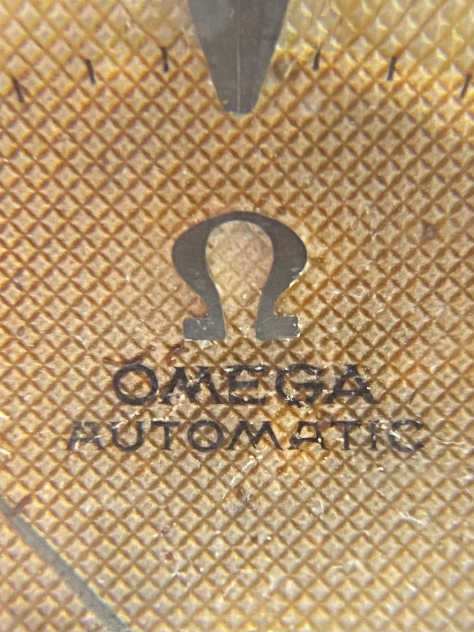 Dial: two-tone waffle structure, heavily patinated. SS furniture, applied Omega logo.