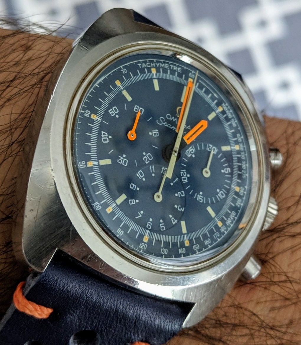 ·Selling my 1970s Omega Chronograph as it is not getting enough wrist time. Blue dial with orange. This watch has a great look.