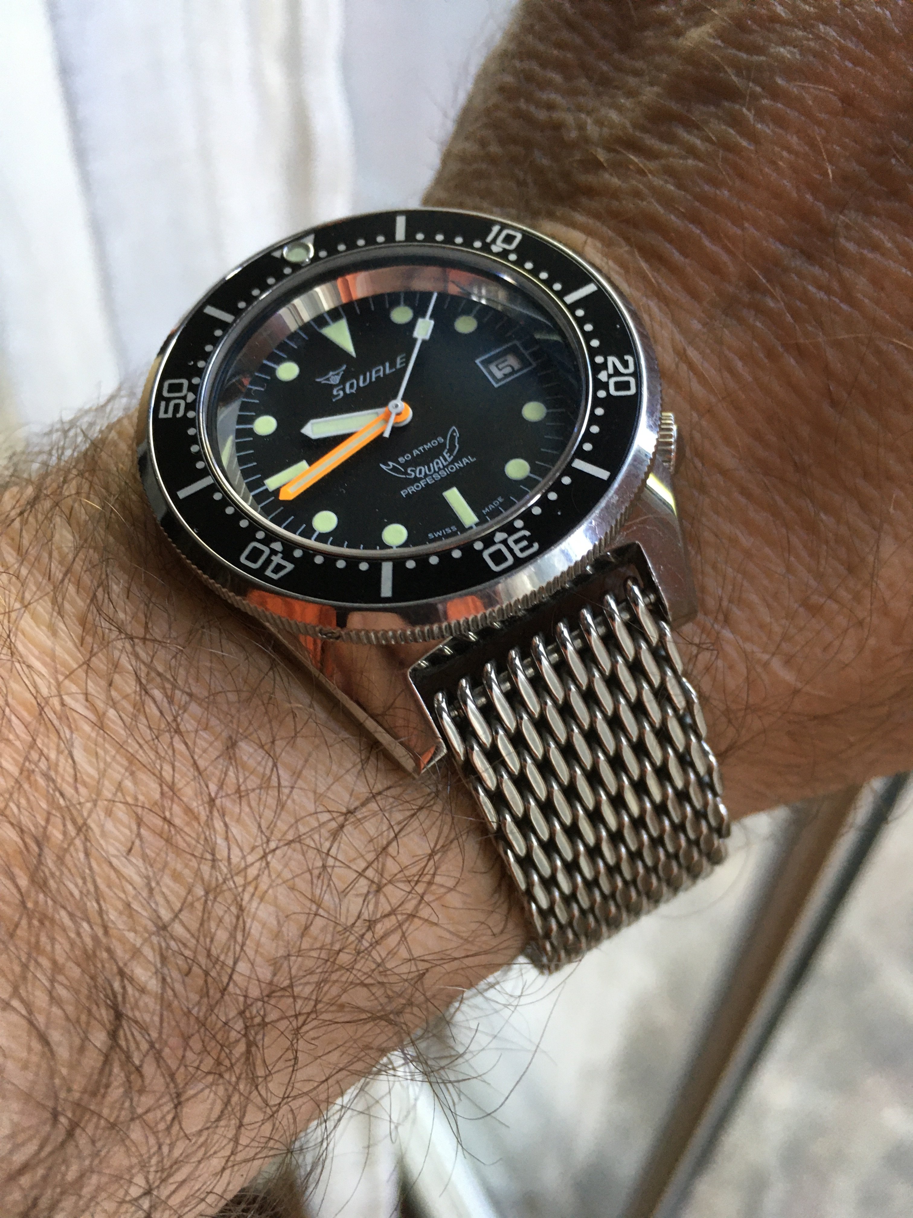 Might be sacrilege to some but on a whim I took my OEM shark mesh off my SMP and put it on this Squale 50 Atmos and put the SMP on a NATO, and I think they both look better-