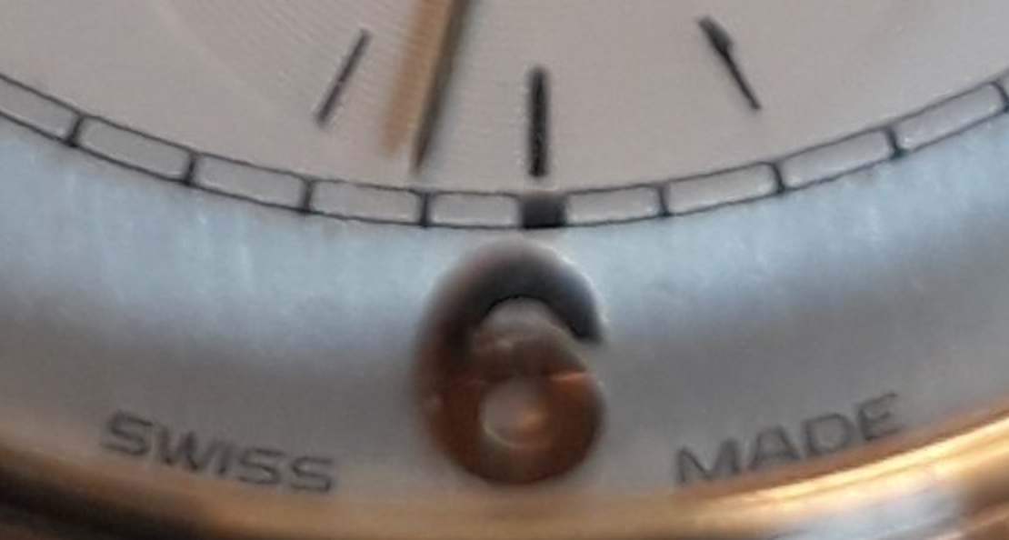 Look at how the track doesn't quite line up with the indices and how the number six sits to the left of the black marker. Also, the sub second hand seems too long, going out of the seconds dial.