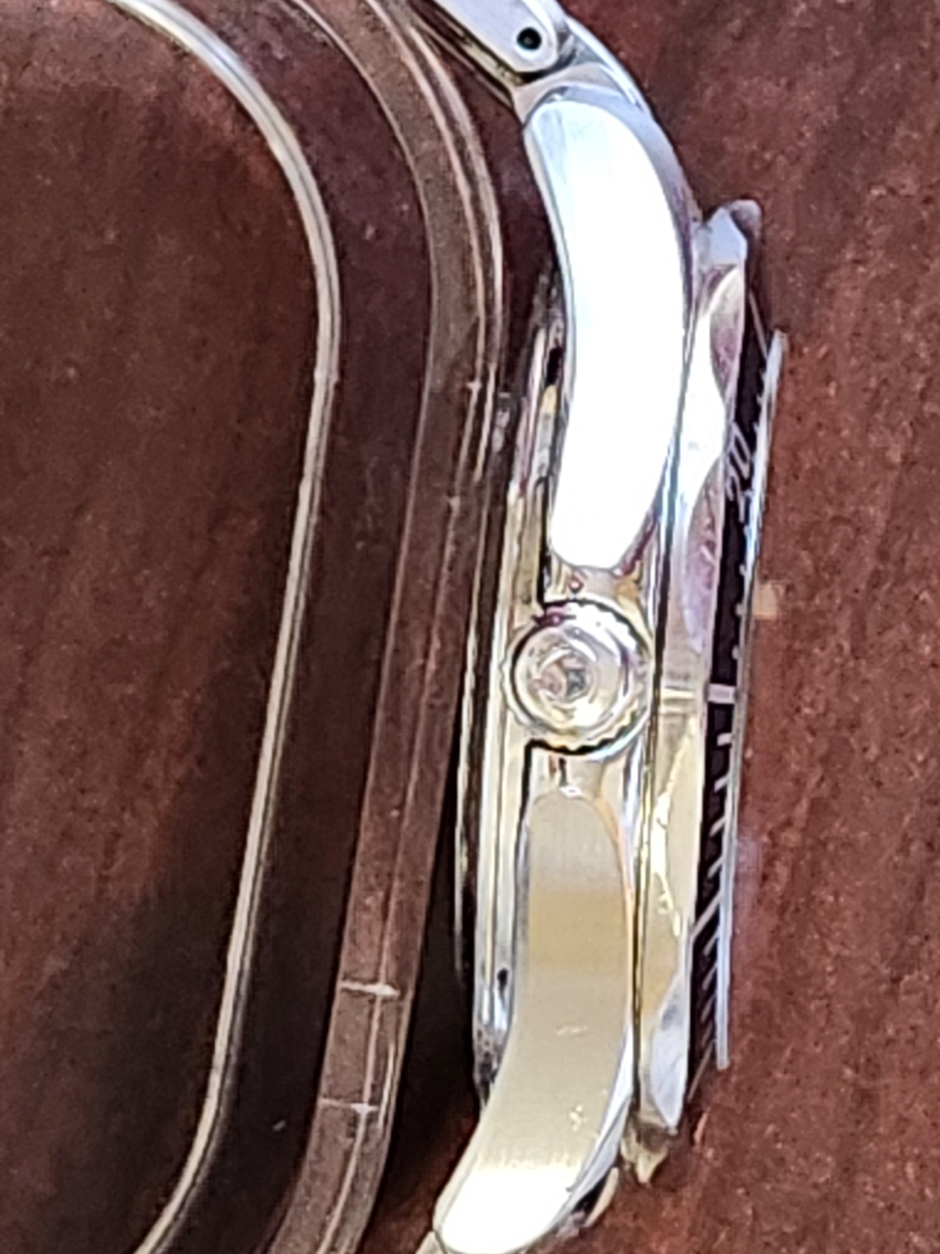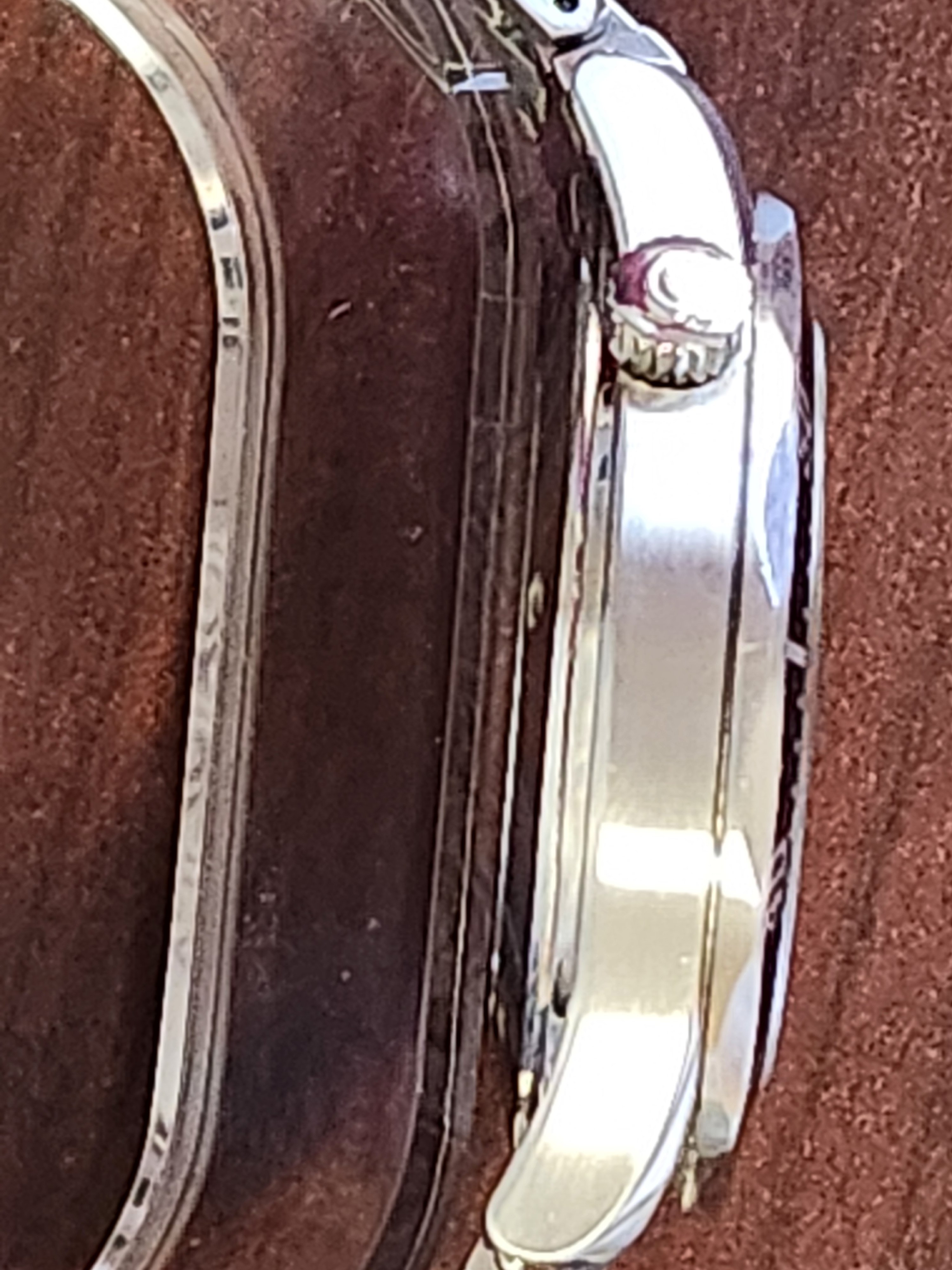 Watch is in very good condition for its age and keeps excellent time. It was serviced in April 2023. Comes with box (red box falling apart), manual service card and original bezel. Bracelet comfortably accommodates an 8.6 inch wrist.