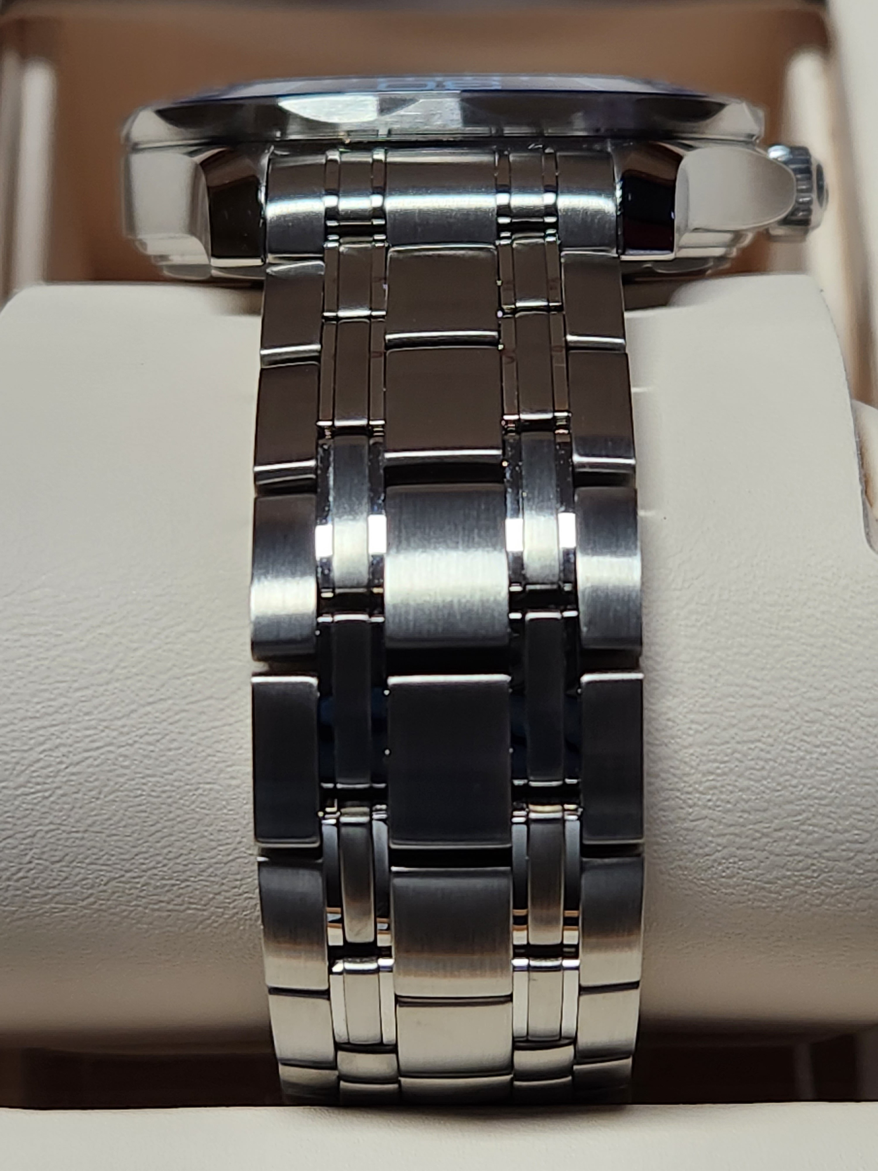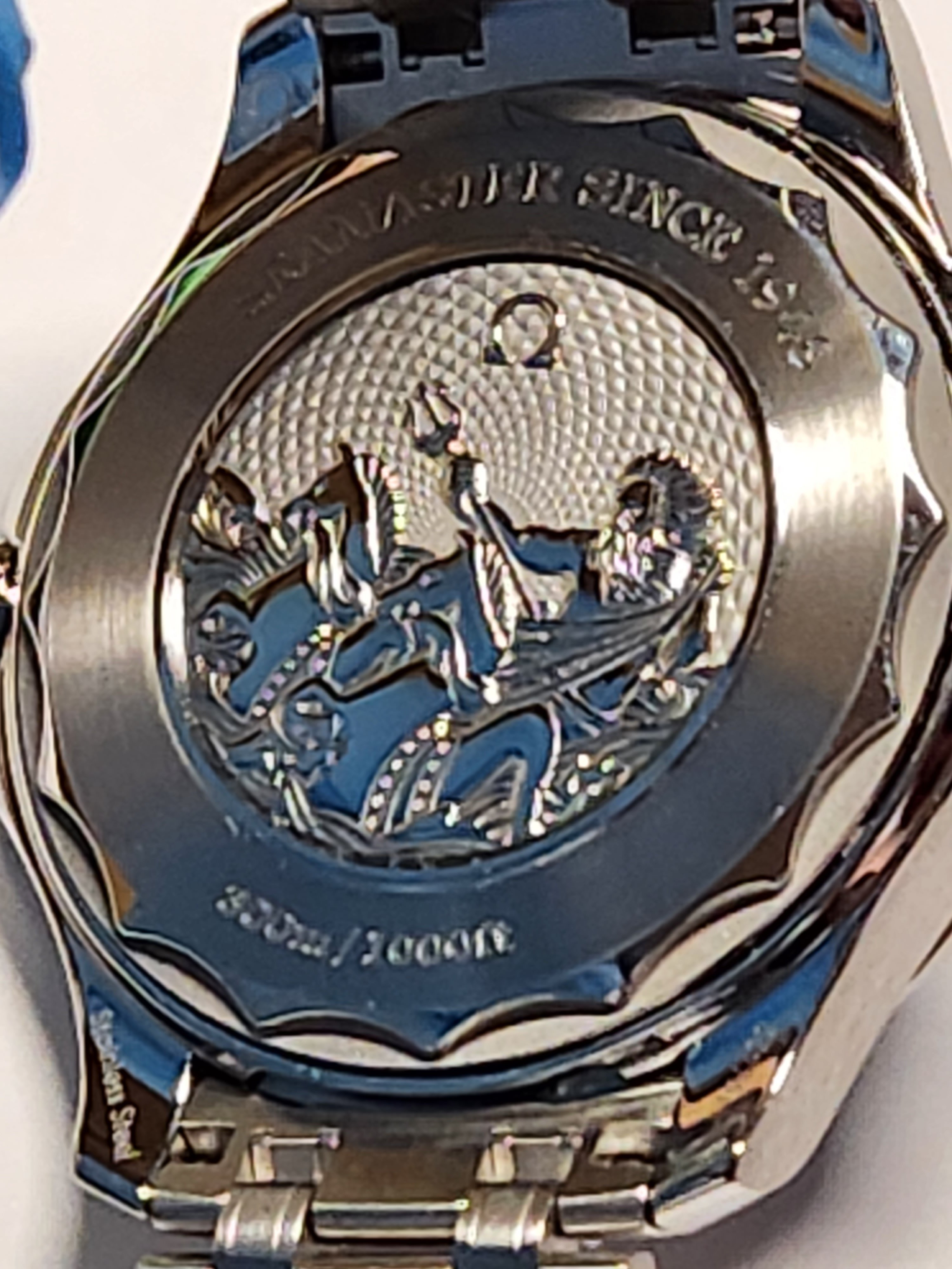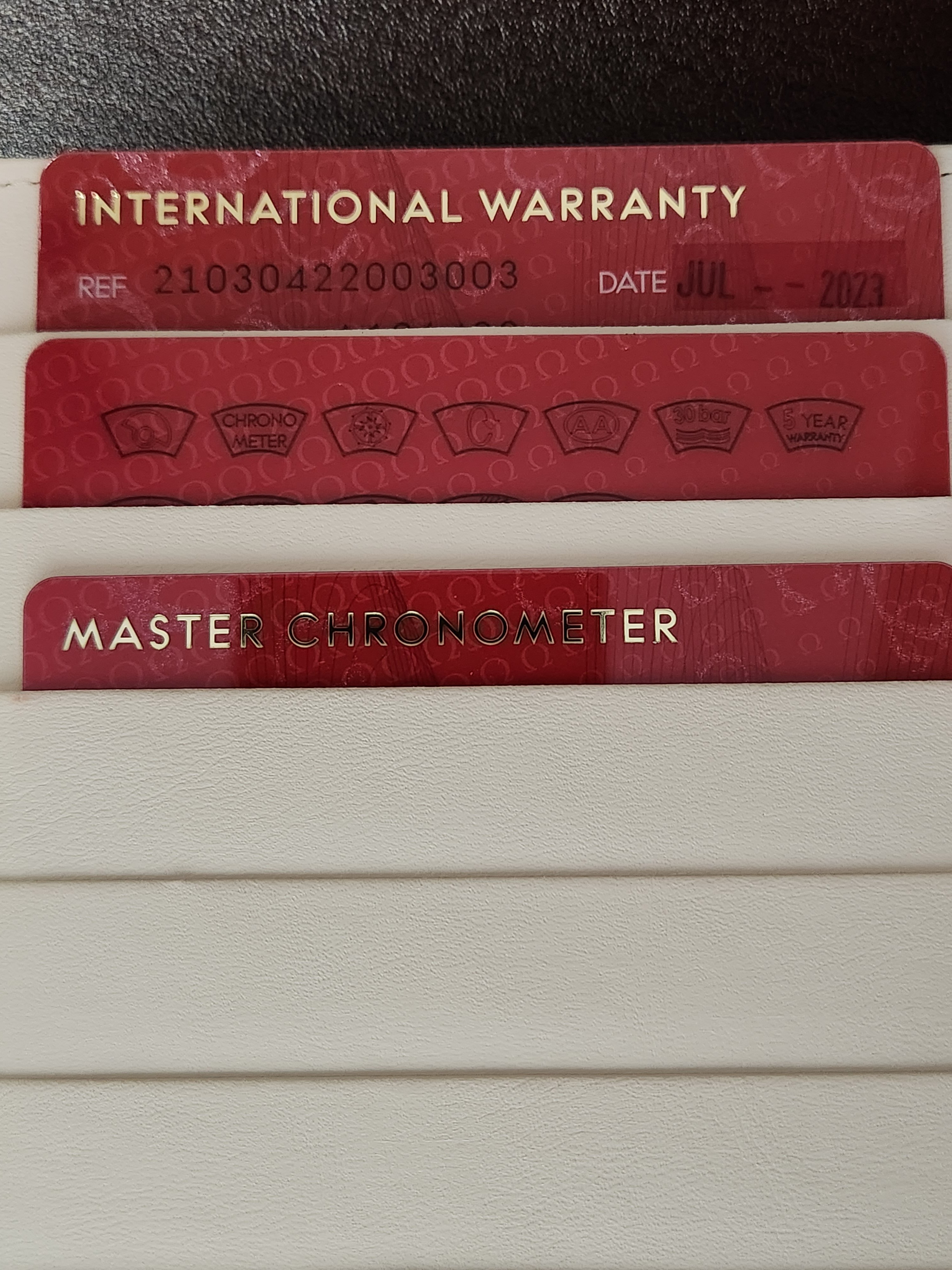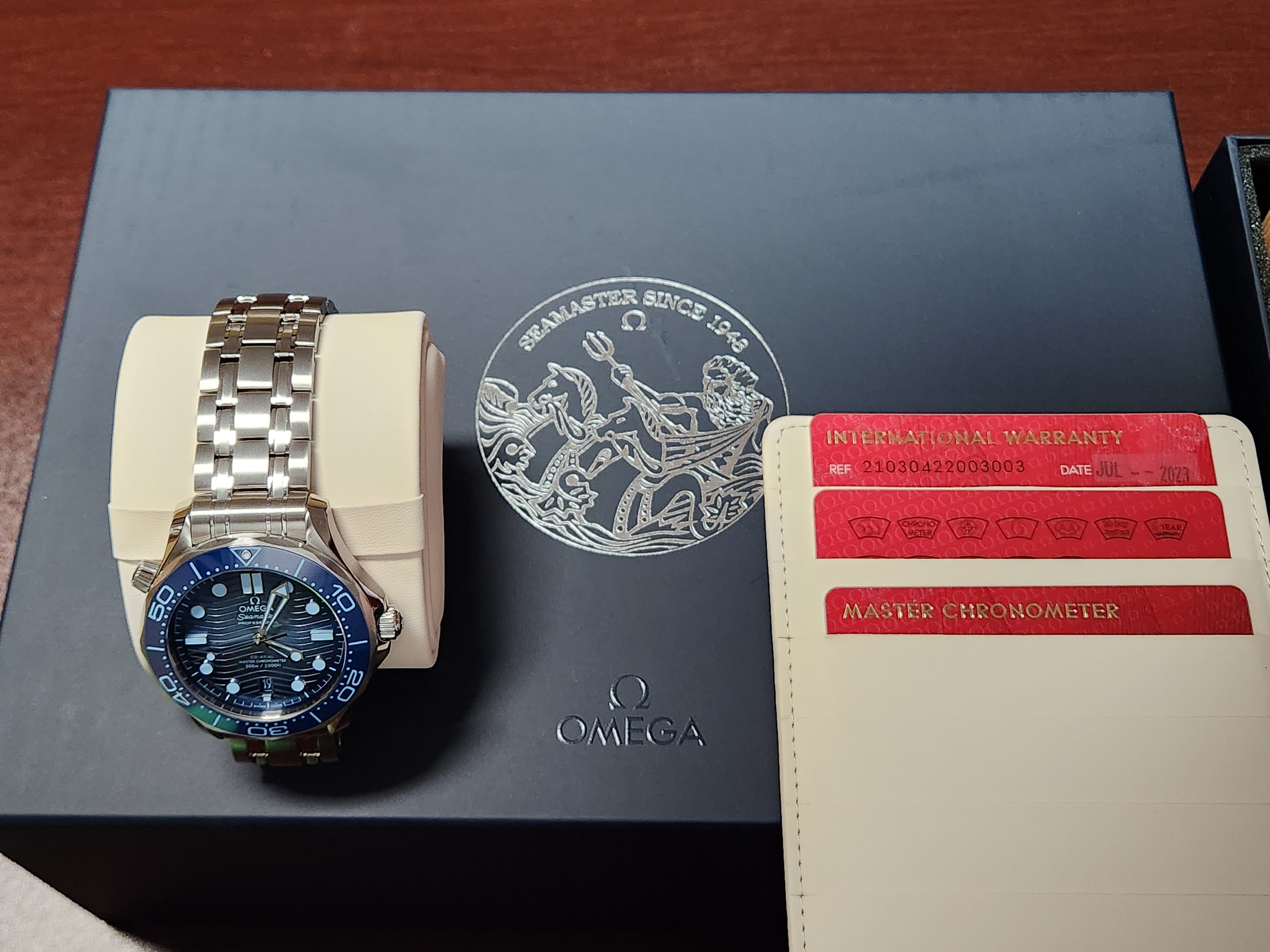 It is in mint condition - I have only worn it a handful of times and have never worn it on the bracelet (other than for just trying it on the day I received it). I did get a couple of small scratches on the bottom of the lugs from strap swapping but that's about it. Purchased directly from my Omega boutique in San Diego - I was the first to order the day they were put on display. Per my Omega SA, this was the first 75th Anniversary delivered in the U.S. Warranty card is dated July 2023.